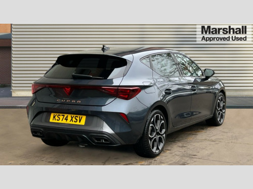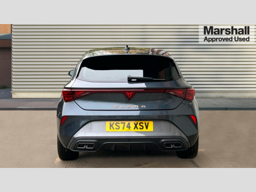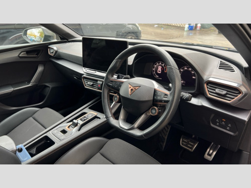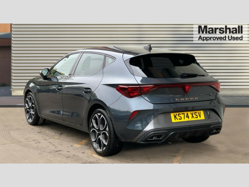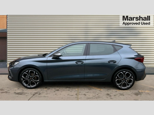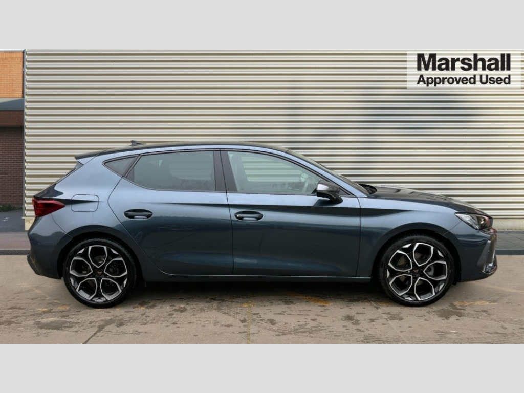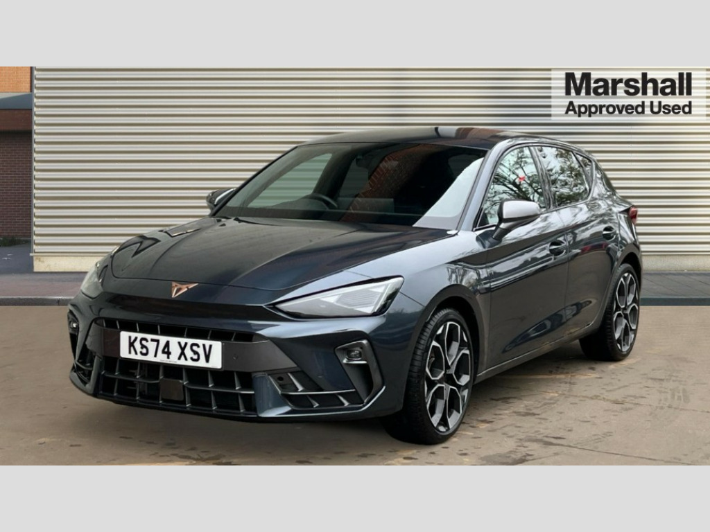 Cupra Leon 1.5 eTSI 150 V1 5dr DSG Adaptive cruise control with follow-to-stop and speed limiter, CUPRA drive profile selection with (Comfort/Sport/Individual), throttle response and gearshift mode, Digital cockpit, Dynamic road sign display, E-call, Four x USB Type C ports (2 in front and 2 in rear), Front and rear parking sensors, Front assist with forward collision warning braking reaction to vehicles, pedestrians and cyclists, Full link smartphone integration with Mirror Link, wireless Apple CarPlay and wired Google Android Auto, Lane assist, Lockable tailgate, PAS, RPM, trip computer, outside temp gauge, instrument light brightness, low fuel warning light, lights on reminder, gearshift indicator, Service interval indicator, Start/stop system with regenerative braking, Wireless phone charger, 7 speakers, Auxiliary input socket, Auto dimming rear view mirror, Body colour door handles, Body coloured bumpers, Cupra sports bumpers, Dark tinted rear windows, Electric front/rear windows, Electrically adjustable, heated and folding door mirrors, High beam assist, LED front fog lamps with cornering function, LED headlights with dynamic turn signals, tail lights, rear fog lights with rear coast to coast lighting, LED rear fog lamp, Rain sensing wipers, Rear side wing doors, Rear wash/wipe, Separate daytime running light with automatic headlight control and coming home feature, Third brake light, Welcome light with logo projector in door mirrors, 12v power supply in centre console, 3 seat bench in 2nd row, 5 headrests, 60/40 split rear bench seat with armrest, Ambient lighting with glovebox, footwell and single monocolour, Black headlining, Cloth/PVC upholstery, Cupra sports pedals, CUPRA Supersports, heated steering wheel with satellite buttons, Driver and passenger seat with manual height and lumbar adjustment, Folding boot cover, Front and rear reading lights X 4, Front centre armrest, Height/reach adjust steering wheel, Illuminated interior front door sills, ISOFIX points in outer rear seats with top tether anchorage points, Single front passenger seat, Storage pockets on rear of front seats, Sunvisors with illuminated mirror, Three zone climate control, Media system plus with 12.9" display + navigation pack - Leon Cupra, 3 point seatbelts on all rear seats, ABS, Brake control system - ESC and brake booster, Child proof door locks, Cupra black brake calipers, Driver and front passenger airbags with front passenger airbag de-activation, front side and curtain airbags, Electronic parking brake, Hill hold control, Rear disc brakes, Seat belt reminder for front and rear seats, Tiredness recognition system, Tyre pressure monitoring system, Anti theft alarm system with interior monitoring in cab, backup horn and towing protection, Central locking system Keyless Go, Locking wheel bolts, Chrome and copper interior detailing, 18" Windstorm machined sport black matt and silver alloy wheel with 92Y XL tyres, Tool kit