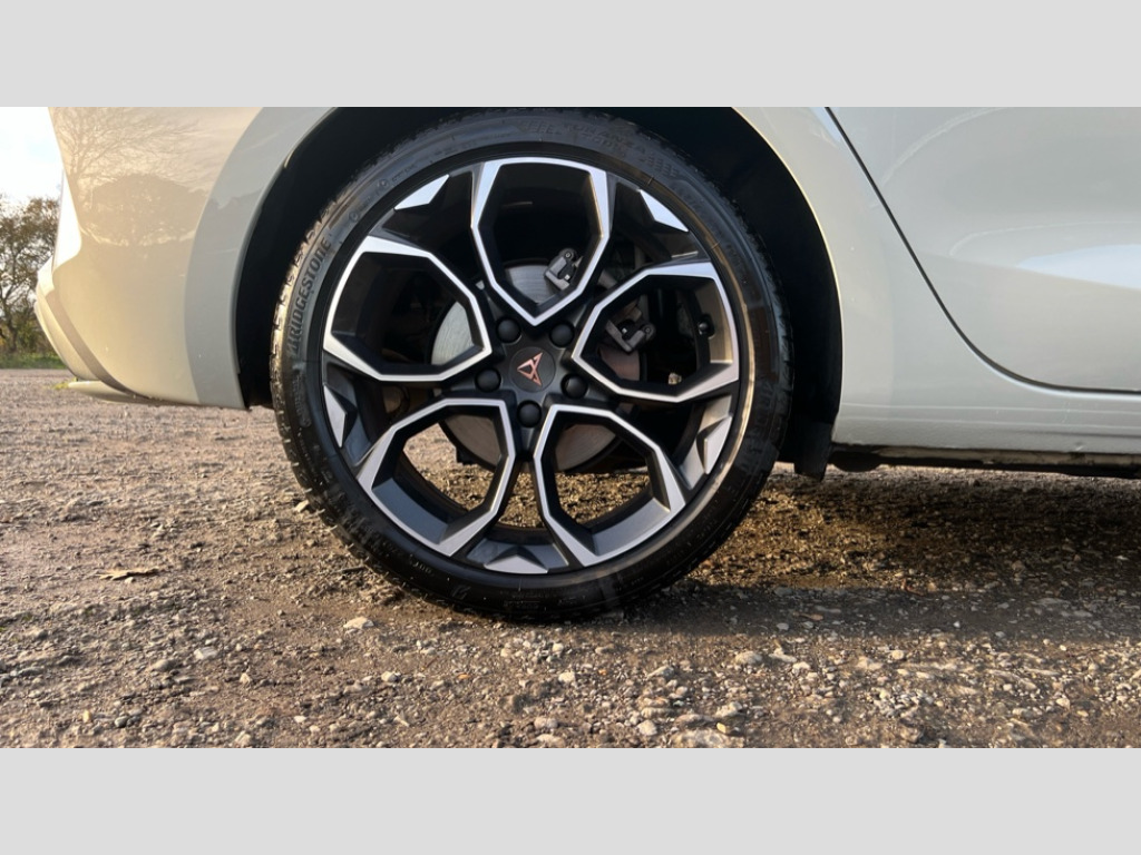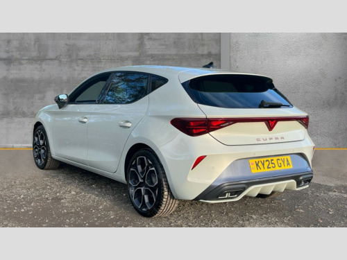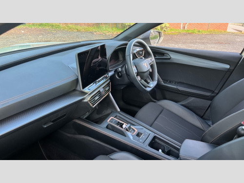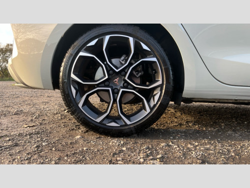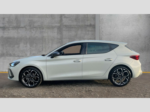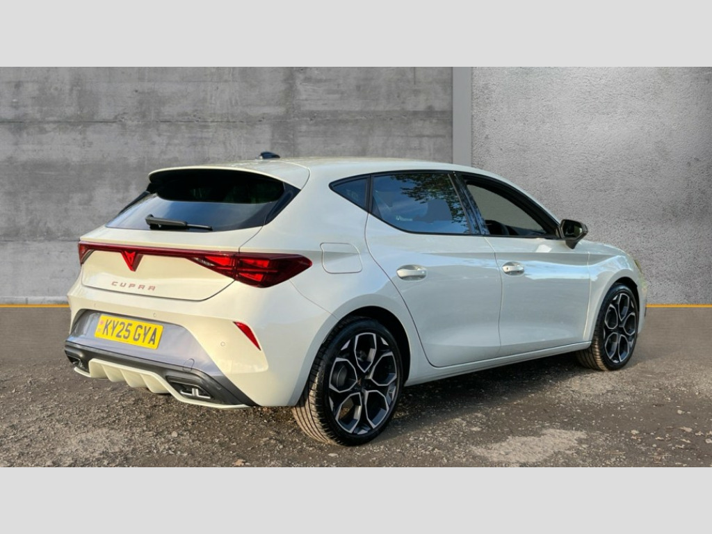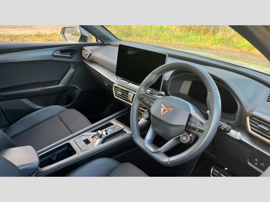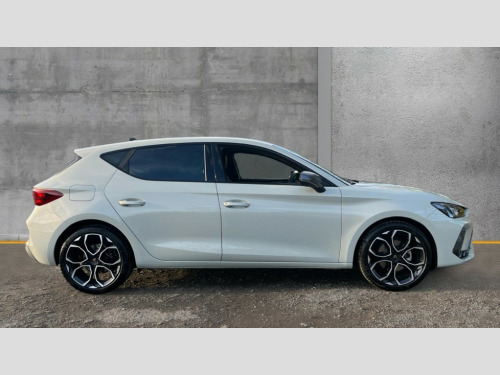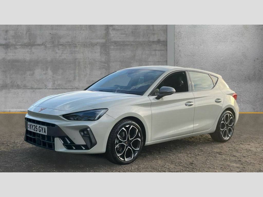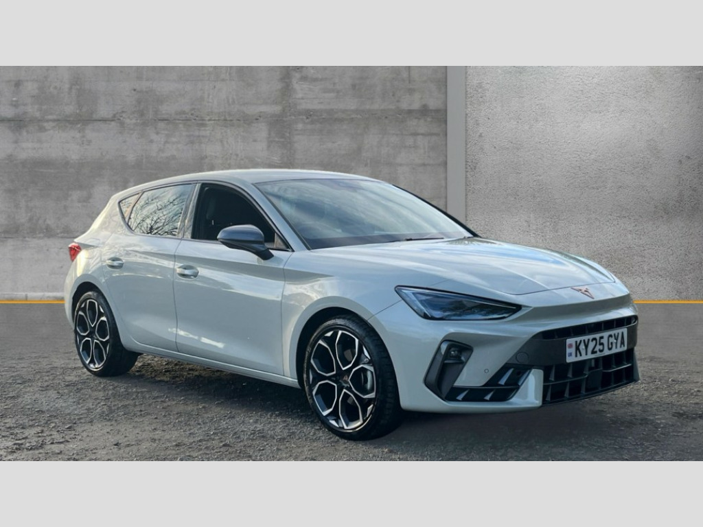 Cupra Leon 1.5 eTSI 150 V1 5dr DSG Adaptive cruise control with follow-to-stop and speed limiter, CUPRA drive profile selection with (Comfort/Sport/Individual), throttle response and gearshift mode, Digital cockpit, Dynamic road sign display, E-call, Four x USB Type C ports (2 in front and 2 in rear), Front and rear parking sensors, Front assist with forward collision warning braking reaction to vehicles, pedestrians and cyclists, Full link smartphone integration with Mirror Link, wireless Apple CarPlay and wired Google Android Auto, Lane assist, Lockable tailgate, PAS, RPM, trip computer, outside temp gauge, instrument light brightness, low fuel warning light, lights on reminder, gearshift indicator, Service interval indicator, Start/stop system with regenerative braking, Wireless phone charger, 7 speakers, Auxiliary input socket, Auto dimming rear view mirror, Body colour door handles, Body coloured bumpers, Cupra sports bumpers, Dark tinted rear windows, Electric front/rear windows, Electrically adjustable, heated and folding door mirrors, High beam assist, LED front fog lamps with cornering function, LED headlights with dynamic turn signals, tail lights, rear fog lights with rear coast to coast lighting, LED rear fog lamp, Rain sensing wipers, Rear side wing doors, Rear wash/wipe, Separate daytime running light with automatic headlight control and coming home feature, Third brake light, Welcome light with logo projector in door mirrors, 12v power supply in centre console, 3 seat bench in 2nd row, 5 headrests, 60/40 split rear bench seat with armrest, Ambient lighting with glovebox, footwell and single monocolour, Black headlining, Cloth/PVC upholstery, Cupra sports pedals, CUPRA Supersports, heated steering wheel with satellite buttons, Driver and passenger seat with manual height and lumbar adjustment, Folding boot cover, Front and rear reading lights X 4, Front centre armrest, Height/reach adjust steering wheel, Illuminated interior front door sills, ISOFIX points in outer rear seats with top tether anchorage points, Single front passenger seat, Storage pockets on rear of front seats, Sunvisors with illuminated mirror, Three zone climate control, Media system plus with 12.9" display + navigation pack - Leon Cupra, 3 point seatbelts on all rear seats, ABS, Brake control system - ESC and brake booster, Child proof door locks, Cupra black brake calipers, Driver and front passenger airbags with front passenger airbag de-activation, front side and curtain airbags, Electronic parking brake, Hill hold control, Rear disc brakes, Seat belt reminder for front and rear seats, Tiredness recognition system, Tyre pressure monitoring system, Anti theft alarm system with interior monitoring in cab, backup horn and towing protection, Central locking system Keyless Go, Locking wheel bolts, Chrome and copper interior detailing, 18" Windstorm machined sport black matt and silver alloy wheel with 92Y XL tyres, Tool kit