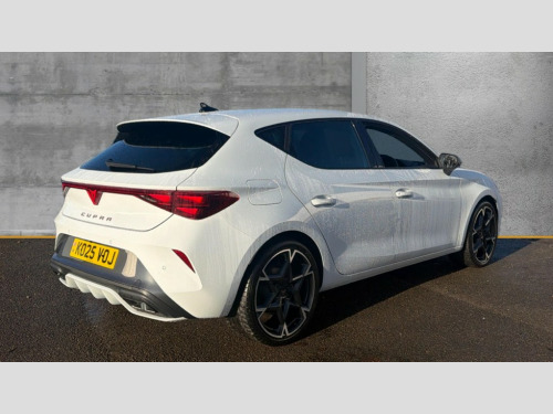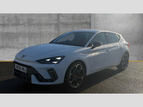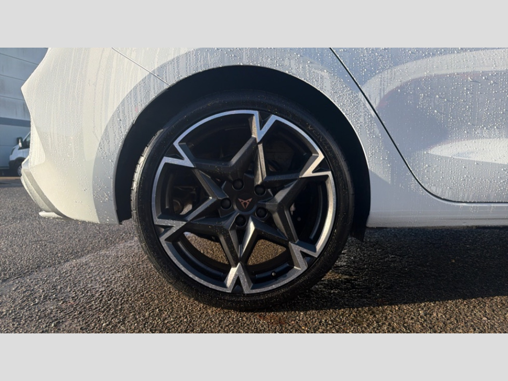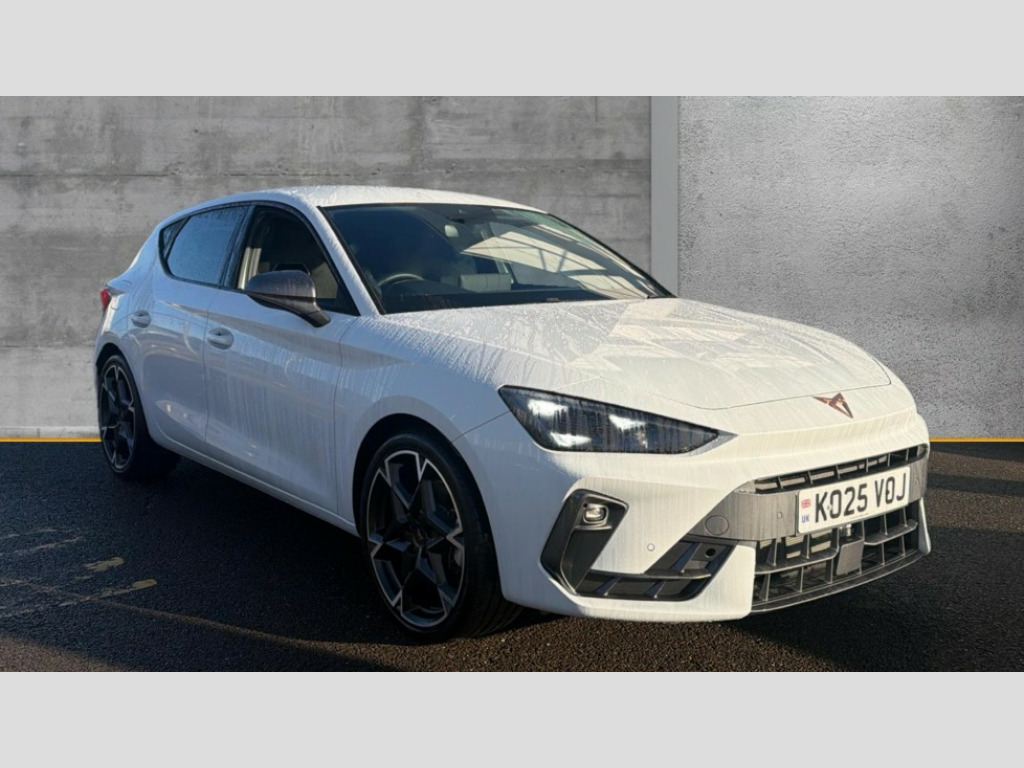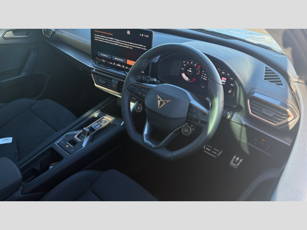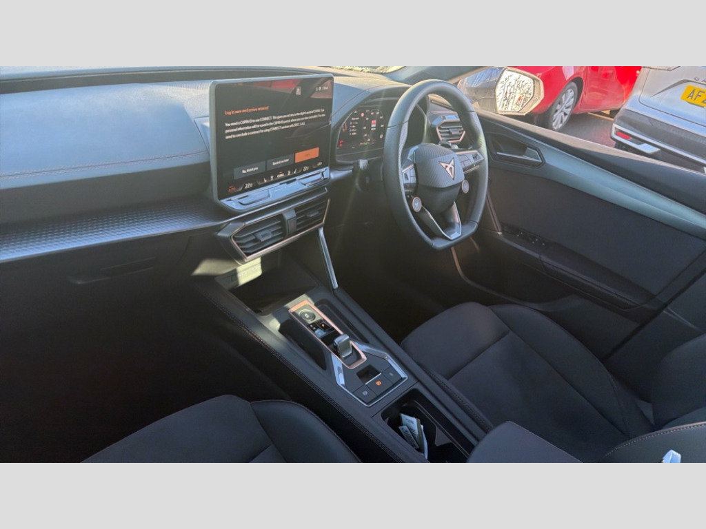 Cupra Leon 1.5 eTSI 150 V2 5dr DSG Adaptive cruise control with follow-to-stop and speed limiter, CUPRA drive profile selection with (Comfort/Sport/Individual), throttle response and gearshift mode, Digital cockpit, Dynamic road sign display, E-call, Four x USB Type C ports (2 in front and 2 in rear), Front and rear parking sensors, Front assist with forward collision warning braking reaction to vehicles, pedestrians and cyclists, Full link smartphone integration with Mirror Link, wireless Apple CarPlay and wired Google Android Auto, Lane assist, Lockable tailgate, Rear view camera, RPM, trip computer, outside temp gauge, instrument light brightness, low fuel warning light, lights on reminder, gearshift indicator, Service interval indicator, Start/stop system with regenerative braking, Wireless phone charger, Auxiliary input socket, Auto dimming rear view mirror, Body colour door handles, Body coloured bumpers, Cupra sports bumpers, Dark tinted rear windows, Electric front/rear windows, Electrically adjustable, heated and folding door mirrors, High beam assist, LED front fog lamps with cornering function, LED headlights with dynamic turn signals, tail lights, rear fog lights with rear coast to coast lighting, LED rear fog lamp, Rain sensing wipers, Rear side wing doors, Rear wash/wipe, Separate daytime running light with automatic headlight control and coming home feature, Third brake light, Welcome light with logo projector in door mirrors, 12v power supply in centre console, 3 seat bench in 2nd row, 5 headrests, 60/40 split rear bench seat with armrest, Ambient lighting (glovebox, footwell, ambient lighting multicoloured), Black headlining, Cupra sports pedals, CUPRA Supersports, heated steering wheel with satellite buttons, Dinamica cloth upholstery, Electrically adjustable driver seat and lumbar support with memory function + manually adjustable passenger seat, Folding boot cover, Front and rear reading lights X 4, Front centre armrest, Heated front seats, Height/reach adjust steering wheel, Illuminated interior front door sills, Interior wraparound lighting, ISOFIX points in outer rear seats with top tether anchorage points, Single front passenger seat, Storage pockets on rear of front seats, Sunvisors with illuminated mirror, Three zone climate control, Dynamic and comfort pack - Leon Cupra, Media system plus with 12.9" display + navigation pack - Leon Cupra, 3 point seatbelts on all rear seats, ABS, Brake control system - ESC and brake booster, Child proof door locks, Cupra black brake calipers, Driver and front passenger airbags with front passenger airbag de-activation, front side and curtain airbags, Electronic parking brake, Hill hold control, Rear disc brakes, Seat belt reminder for front and rear seats, Tiredness recognition system, Tyre pressure monitoring system, Anti theft alarm system with interior monitoring in cab, backup horn and towing protection, KESSY Advanced - Keyless start, keyless entry, Locking wheel bolts, Chrome and copper interior detailing, 19" Polar machined sport black and silver alloy wheel with 91Y tyres, Tool kit