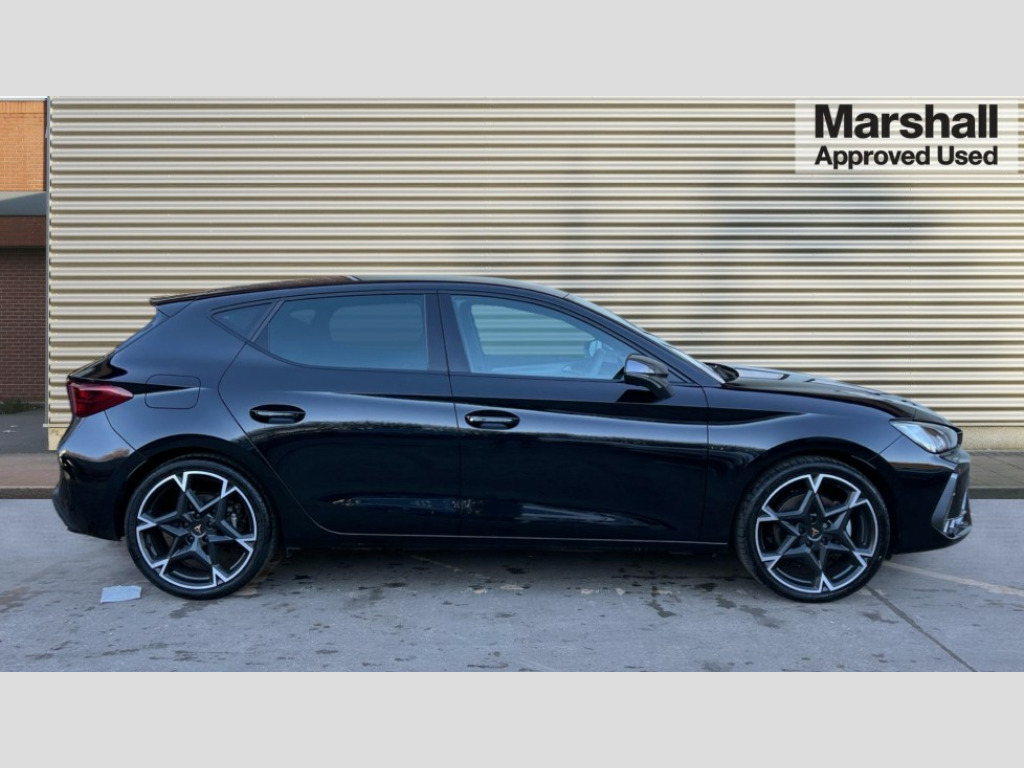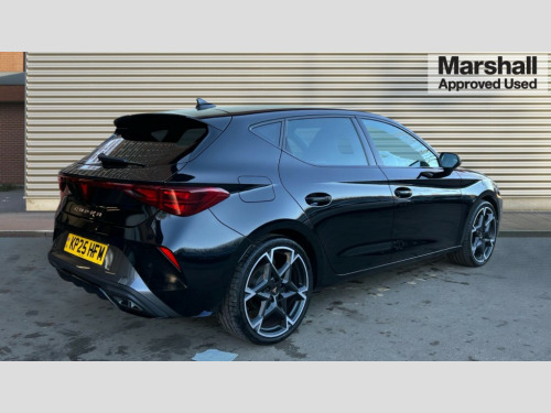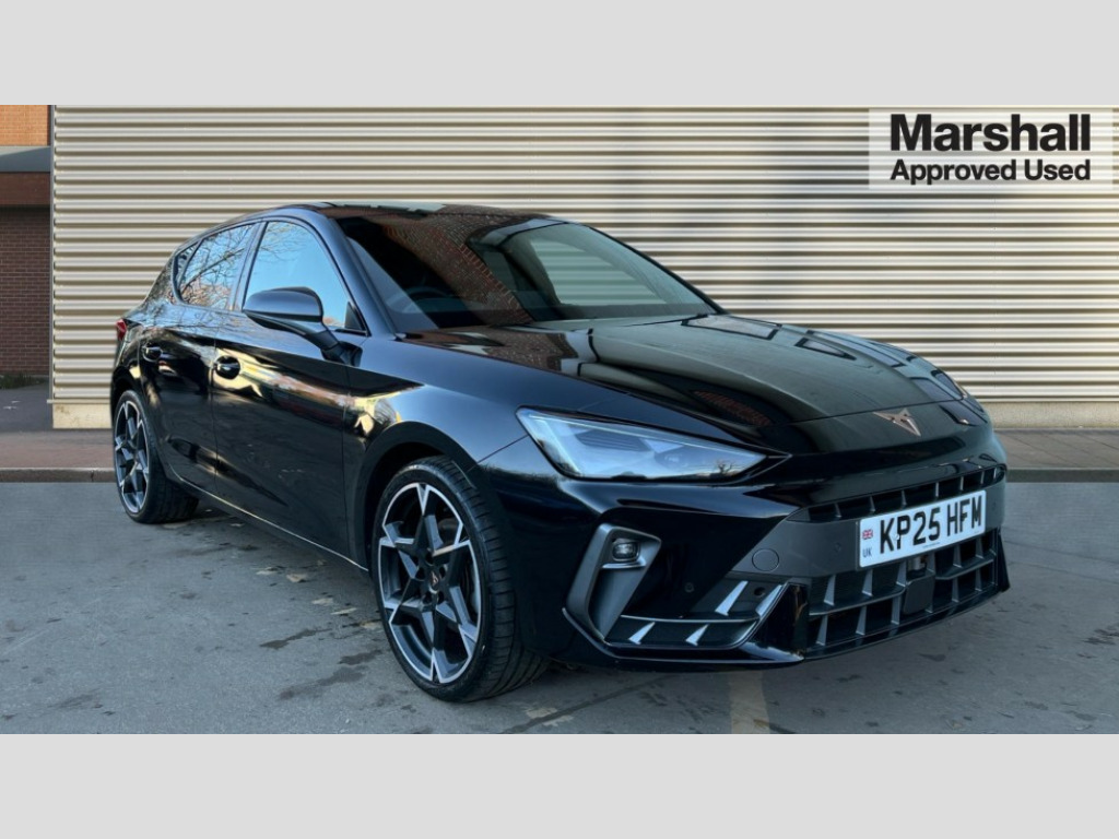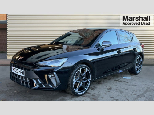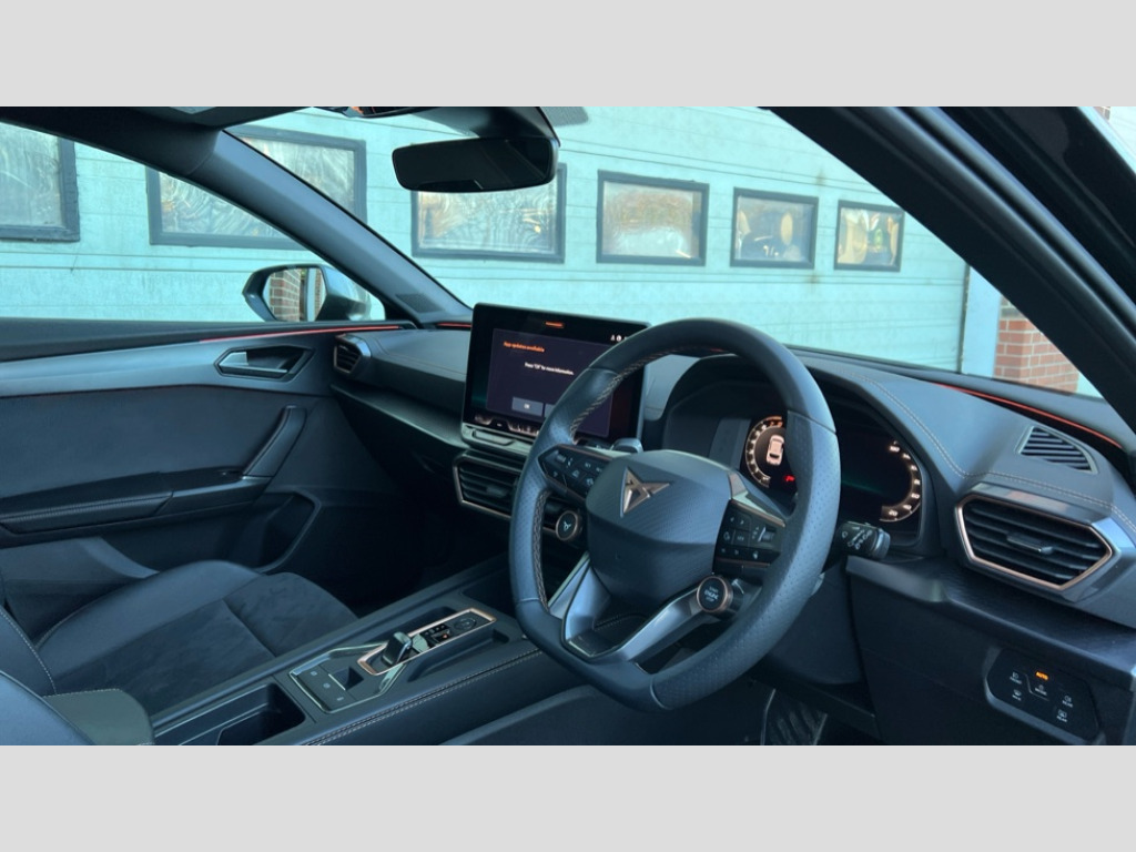 Cupra Leon 1.5 eTSI 150 V2 5dr DSG Adaptive cruise control with follow-to-stop and speed limiter, CUPRA drive profile selection with (Comfort/Sport/Individual), throttle response and gearshift mode, Digital cockpit, Dynamic road sign display, E-call, Four x USB Type C ports (2 in front and 2 in rear), Front and rear parking sensors, Front assist with forward collision warning braking reaction to vehicles, pedestrians and cyclists, Full link smartphone integration with Mirror Link, wireless Apple CarPlay and wired Google Android Auto, Lane assist, Lockable tailgate, Rear view camera, RPM, trip computer, outside temp gauge, instrument light brightness, low fuel warning light, lights on reminder, gearshift indicator, Service interval indicator, Start/stop system with regenerative braking, Wireless phone charger, Auxiliary input socket, Auto dimming rear view mirror, Body colour door handles, Body coloured bumpers, Cupra sports bumpers, Dark tinted rear windows, Electric front/rear windows, Electrically adjustable, heated and folding door mirrors, High beam assist, LED front fog lamps with cornering function, LED headlights with dynamic turn signals, tail lights, rear fog lights with rear coast to coast lighting, LED rear fog lamp, Rain sensing wipers, Rear side wing doors, Rear wash/wipe, Separate daytime running light with automatic headlight control and coming home feature, Third brake light, Welcome light with logo projector in door mirrors, 12v power supply in centre console, 3 seat bench in 2nd row, 5 headrests, 60/40 split rear bench seat with armrest, Ambient lighting (glovebox, footwell, ambient lighting multicoloured), Black headlining, Cupra sports pedals, CUPRA Supersports, heated steering wheel with satellite buttons, Dinamica cloth upholstery, Electrically adjustable driver seat and lumbar support with memory function + manually adjustable passenger seat, Folding boot cover, Front and rear reading lights X 4, Front centre armrest, Heated front seats, Height/reach adjust steering wheel, Illuminated interior front door sills, Interior wraparound lighting, ISOFIX points in outer rear seats with top tether anchorage points, Single front passenger seat, Storage pockets on rear of front seats, Sunvisors with illuminated mirror, Three zone climate control, Dynamic and comfort pack - Leon Cupra, Media system plus with 12.9" display + navigation pack - Leon Cupra, 3 point seatbelts on all rear seats, ABS, Brake control system - ESC and brake booster, Child proof door locks, Cupra black brake calipers, Driver and front passenger airbags with front passenger airbag de-activation, front side and curtain airbags, Electronic parking brake, Hill hold control, Rear disc brakes, Seat belt reminder for front and rear seats, Tiredness recognition system, Tyre pressure monitoring system, Anti theft alarm system with interior monitoring in cab, backup horn and towing protection, KESSY Advanced - Keyless start, keyless entry, Locking wheel bolts, Chrome and copper interior detailing, 19" Polar machined sport black and silver alloy wheel with 91Y tyres, Tool kit