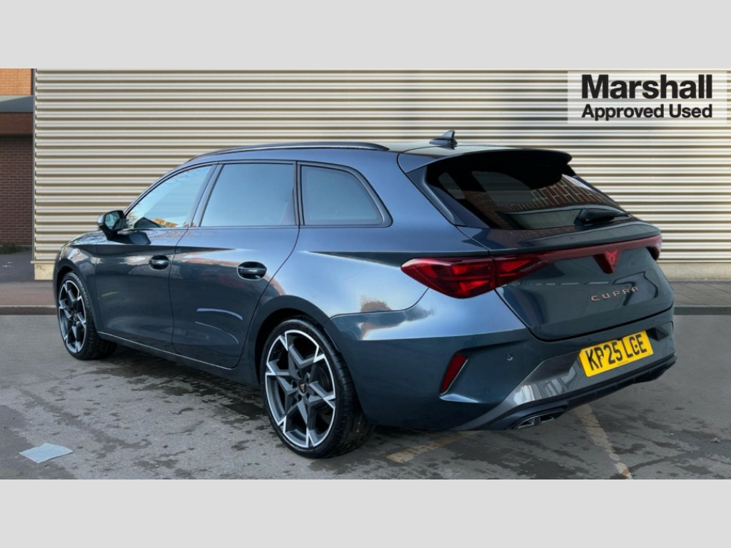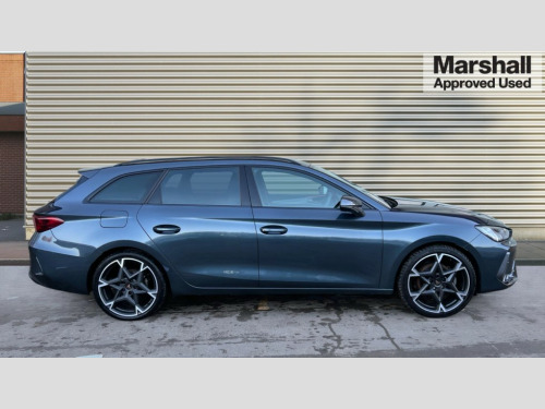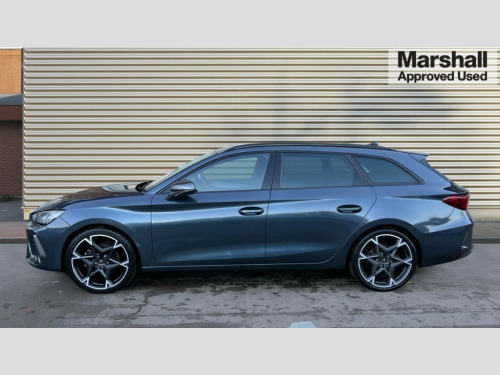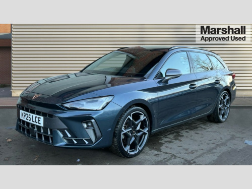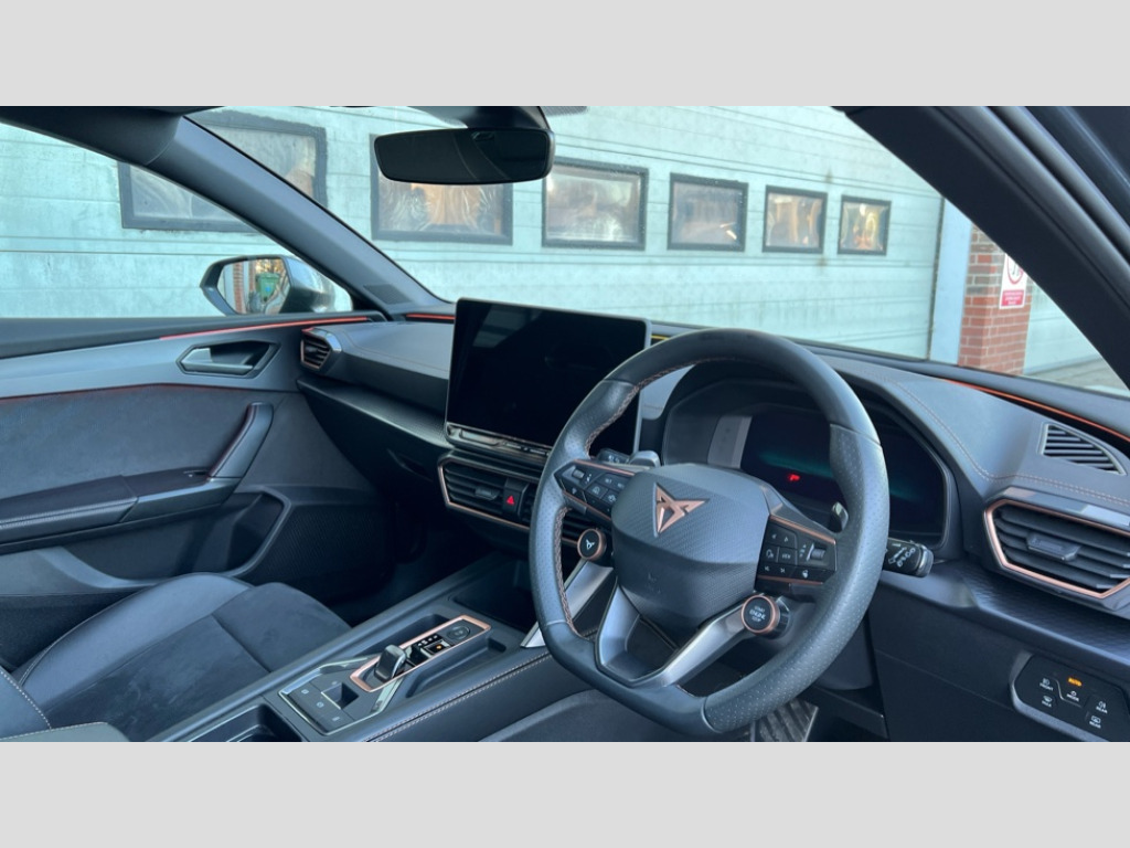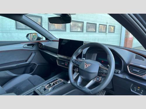 Cupra Leon 1.5 eTSI 150 V2 5dr DSG Adaptive cruise control with follow-to-stop and speed limiter, CUPRA drive profile selection with (Comfort/Sport/Individual), throttle response and gearshift mode, Digital cockpit, Dynamic road sign display, E-call, Four x USB Type C ports (2 in front and 2 in rear), Front and rear parking sensors, Front assist with forward collision warning braking reaction to vehicles, pedestrians and cyclists, Full link smartphone integration with Mirror Link, wireless Apple CarPlay and wired Google Android Auto, Lane assist, Lockable tailgate, Rear view camera, RPM, trip computer, outside temp gauge, instrument light brightness, low fuel warning light, lights on reminder, gearshift indicator, Service interval indicator, Start/stop system with regenerative braking, Virtual pedal with electric tailgate, Wireless phone charger, Auxiliary input socket, Auto dimming rear view mirror, Body colour door handles, Body coloured bumpers, Cupra sports bumpers, Dark tinted rear windows, Electric front/rear windows, Electrically adjustable, heated and folding door mirrors, Gloss black roof rails, High beam assist, LED front fog lamps with cornering function, LED headlights with dynamic turn signals, tail lights, rear fog lights with rear coast to coast lighting, LED rear fog lamp, Rain sensing wipers, Rear side wing doors, Rear wash/wipe, Separate daytime running light with automatic headlight control and coming home feature, Third brake light, Welcome light with logo projector in door mirrors, 12v power supply in centre console, 3 seat bench in 2nd row, 5 headrests, 60/40 split rear bench seat with armrest, Ambient lighting (glovebox, footwell, ambient lighting multicoloured), Black headlining, Cupra sports pedals, CUPRA Supersports, heated steering wheel with satellite buttons, Dinamica cloth upholstery, Electrically adjustable driver seat and lumbar support with memory function + manually adjustable passenger seat, Front and rear reading lights X 4, Front centre armrest, Heated front seats, Height/reach adjust steering wheel, Illuminated interior front door sills, Interior wraparound lighting, ISOFIX points in outer rear seats with top tether anchorage points, Single front passenger seat, Sliding boot cover, Storage pockets on rear of front seats, Sunvisors with illuminated mirror, Three zone climate control, Dynamic and comfort pack - Leon Cupra, Media system plus with 12.9" display + navigation pack - Leon Cupra, 3 point seatbelts on all rear seats, ABS, Brake control system - ESC and brake booster, Child proof door locks, Cupra black brake calipers, Driver and front passenger airbags with front passenger airbag de-activation, front side and curtain airbags, Electronic parking brake, Hill hold control, Rear disc brakes, Seat belt reminder for front and rear seats, Tiredness recognition system, Tyre pressure monitoring system, Anti theft alarm system with interior monitoring in cab, backup horn and towing protection, KESSY Advanced - Keyless start, keyless entry, Locking wheel bolts, Chrome and copper interior detailing, 19" Polar machined sport black and silver alloy wheel with 91Y tyres, Tool kit