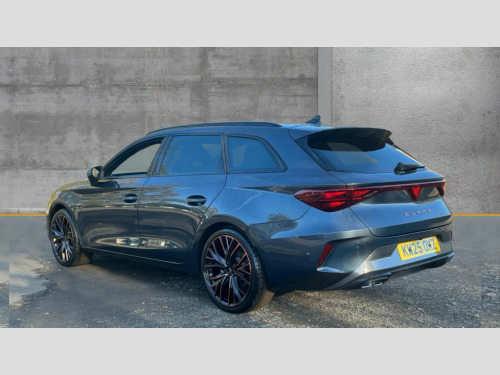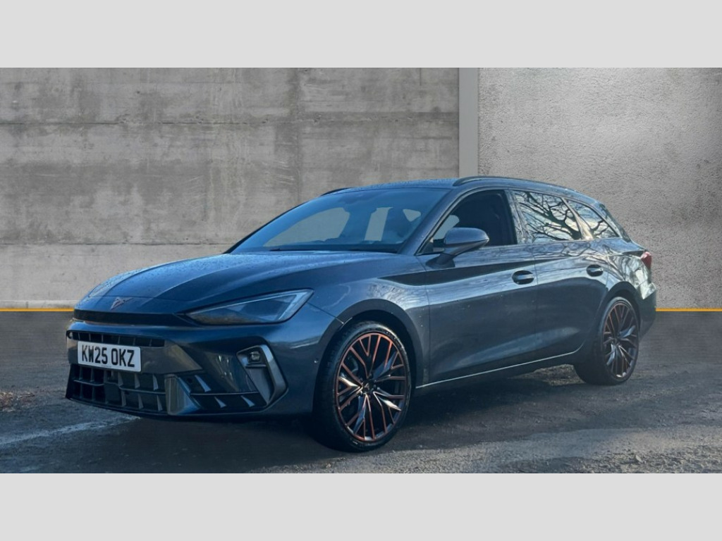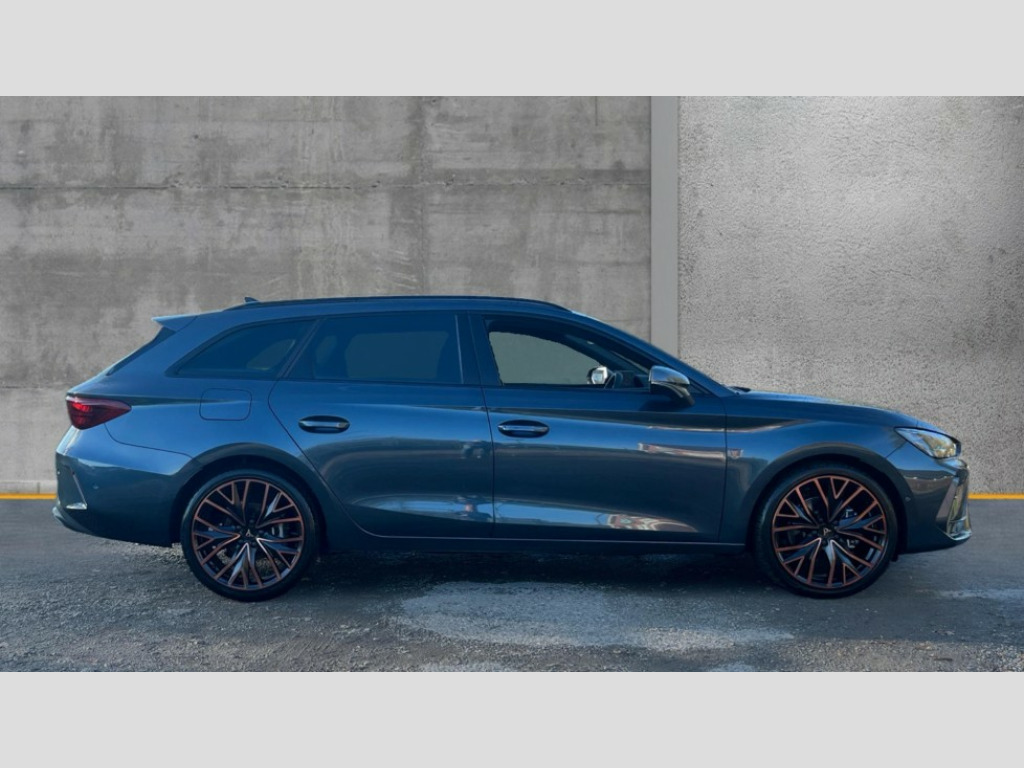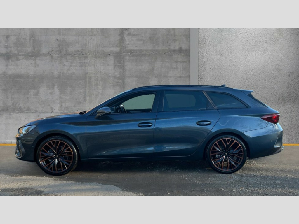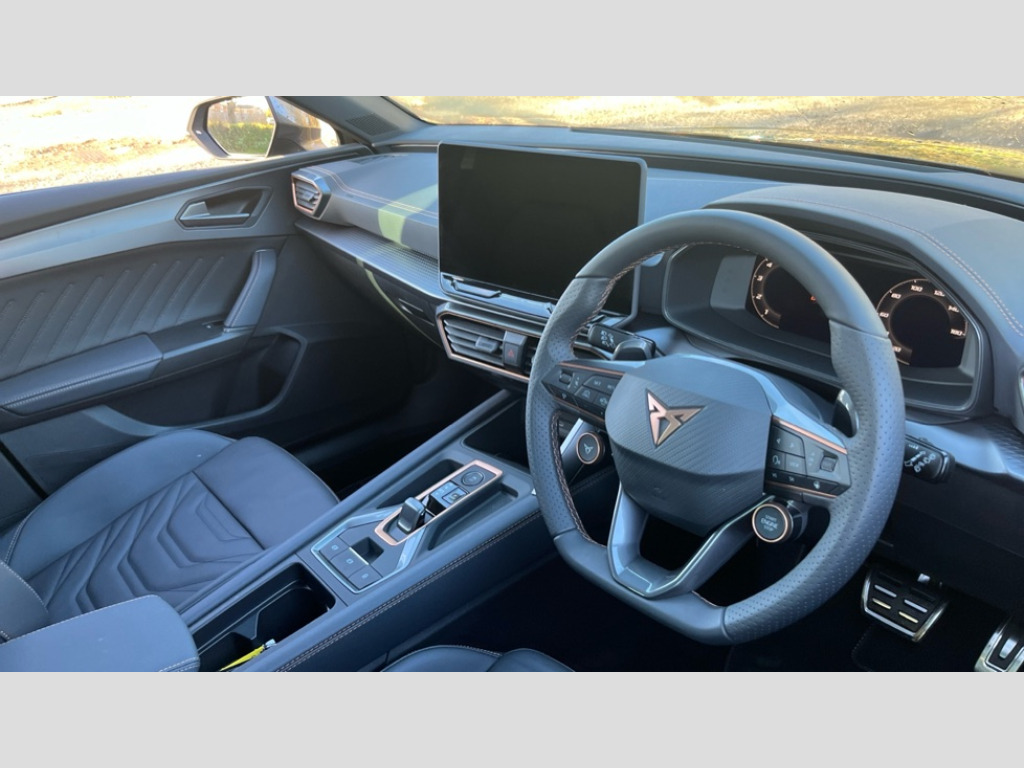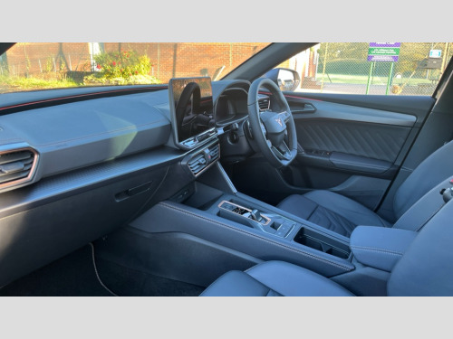 Cupra Leon 1.5 eTSI 150 V3 5dr DSG Adaptive cruise control with follow-to-stop and speed limiter, CUPRA drive profile selection with (Comfort/Performance/Individual), throttle response and gearshift mode, Digital cockpit, Driver alert system, Dynamic road sign display, E-call, Four x USB Type C ports (2 in front and 2 in rear), Front and rear parking sensors, Front assist with forward collision warning braking reaction to vehicles, pedestrians and cyclists, Front cross traffic assist, Full link smartphone integration with Mirror Link, wireless Apple CarPlay and wired Google Android Auto, Intelligent park assist, Lane change assist with emergency assist, Lockable tailgate, Rear view camera, RPM, trip computer, outside temp gauge, instrument light brightness, low fuel warning light, lights on reminder, gearshift indicator, Service interval indicator, Side and exit assist, Start/stop system with regenerative braking, Virtual pedal with electric tailgate, Wireless phone charger, Auxiliary input socket, Auto dimming rear view mirror, Body colour door handles, Body coloured bumpers, Cupra sports bumpers, Dark tinted rear windows, Electric front/rear windows, Electrically adjustable, heated and folding door mirrors, Gloss black roof rails, High beam assist, LED front fog lamps with cornering function, LED headlights with dynamic turn signals, tail lights, rear fog lights with rear coast to coast lighting, LED rear fog lamp, Rain sensing wipers, Rear diffuser with black simulated exhaust pipes, Rear side wing doors, Rear wash/wipe, Separate daytime running light with automatic headlight control and coming home feature, Third brake light, Welcome light with logo projector in door mirrors, 12v power supply in centre console, 3 seat bench in 2nd row, 5 headrests, 60/40 split rear bench seat with armrest, Ambient lighting (glovebox, footwell, ambient lighting multicoloured), Black headlining, Cupra sports pedals, CUPRA Supersports, heated steering wheel with satellite buttons, Electrically adjustable driver seat and lumbar support with memory function + manually adjustable passenger seat, Front and rear reading lights X 4, Front centre armrest, Heated front seats, Height/reach adjust steering wheel, Illuminated interior front door sills, Interior wraparound lighting, ISOFIX points in outer rear seats with top tether anchorage points, Leather upholstery, Single front passenger seat, Sliding boot cover, Storage pockets on rear of front seats, Sunvisors with illuminated mirror, Three zone climate control, Dynamic and comfort pack - Leon Cupra, Media system plus with 12.9" display + navigation pack - Leon Cupra, 3 point seatbelts on all rear seats, ABS, Brake control system - ESC and brake booster, Child proof door locks, Cupra black brake calipers, Disc brakes in front, Driver and front passenger airbags with front passenger airbag de-activation, front side and curtain airbags, Electronic parking brake, Hill hold control, Pre-crash front and rear seat belt tensioner, window closure and hazard lights, Rear disc brakes, Seat belt reminder for front and rear seats, Tiredness recognition system, Tyre pressure monitoring system, Anti theft alarm system with interior monitoring in cab, backup horn and towing protection, KESSY Advanced - Keyless start, keyless entry, Locking wheel bolts, Chrome and copper interior detailing, Tool kit