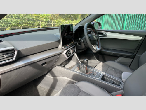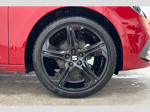 Seat Leon 1.5 TSI 150 FR Black Edition 5dr [DAP] Digital cockpit with multifunction display, Driver attention alert with drowsiness warning, E-call, Front assist with forward collision warning braking reaction to vehicles, pedestrians and cyclists, Full link smartphone integration with Mirror Link, wireless Apple CarPlay and wired Google Android Auto, Intelligent speed assist, Lane assist, Lockable tailgate, Park assist (inc front/rear parking sensors), Power assisted speed sensitive electro-mechanical steering, Rear view camera, RPM, trip computer, outside temp gauge, instrument light brightness, low fuel warning light, lights on reminder, gearshift indicator, SEAT drive profile with 4 modes (Eco/Normal/Sport/Individual), throttle response, Service interval indicator, Start/stop system with regenerative braking, Sports suspension, XDS electronic differential lock and dynamic traction support, 2 front and 2 rear USB-C ports, Auxiliary input socket, Auto dimming rear view mirror, Black door mirror housings, Black roof rails, Black roof spoiler, Black side skirts, Body colour door handles, Body coloured bumpers, Dark tinted rear windows, Door mirror LED indicator lights, Dynamic headlight range control, Electric adjustable/heated/folding door mirrors with memory, Electric front/rear windows, FR sports bumper, Illuminated front door sill, LED front fog lamps, LED rear fog lamp with rear coast to coast light, Matrix LED headlights and beams with variable light distribution, LED rear light and dynamic turn signals, Panoramic sunroof, Rear side wing doors, Rear wash/wipe, Separate daytime running light with automatic headlight control and coming home feature, Third brake light, Welcome light silhouette from exterior mirrors, Windshield wiper intermittent control with light/rain sensor, 12v power point in centre console, 3 seat bench in 2nd row, 60/40 split rear bench seat with armrest, Ambient lighting with glovebox, footwell and single monocolour, Black headlining, Dust/pollen filter, Electric driver lumbar support + passenger manual lumbar support, Front and rear height adjustable headrests, Front and rear reading lights X 4, Front centre armrest, Front seatback storage pockets, Heated front seats, Heated leather steering wheel with leather gearstick, Height/reach adjust steering wheel, Interior wraparound lighting (FR), ISOFIX points in outer rear seats with top tether anchorage points, Luggage tie-down hooks, Microsuede cloth upholstery, Power driver seat with memory and manual height adjustable passenger seat, Single front passenger seat, Sliding boot cover, Sunvisors with covered illuminated mirror, Three zone climate control, Media system plus with navigation - Leon, 3 point seatbelts on all rear seats, ABS, Brake control system - ESC and brake booster, Child proof door locks, Driver and front passenger airbags with front passenger airbag de-activation, front side and curtain airbags, Electronic parking brake, Extended safety system - seat belt tensioner, window closure and hazard lights, Hill hold control, Rear disc brakes, Seat belt reminder for front and rear seats, Tyre pressure monitoring system, Anti theft alarm system with interior monitoring in cab, backup horn and towing protection, KESSY Advanced - Keyless start, keyless entry, Locking wheel bolts, Wireless phone charging, Chrome interior detailing, 18" Black alloy wheels, Tool kit without jack