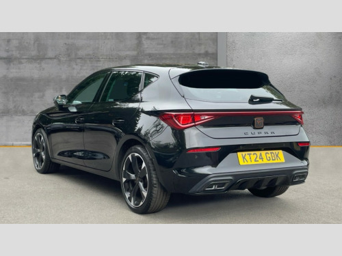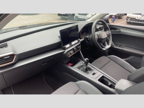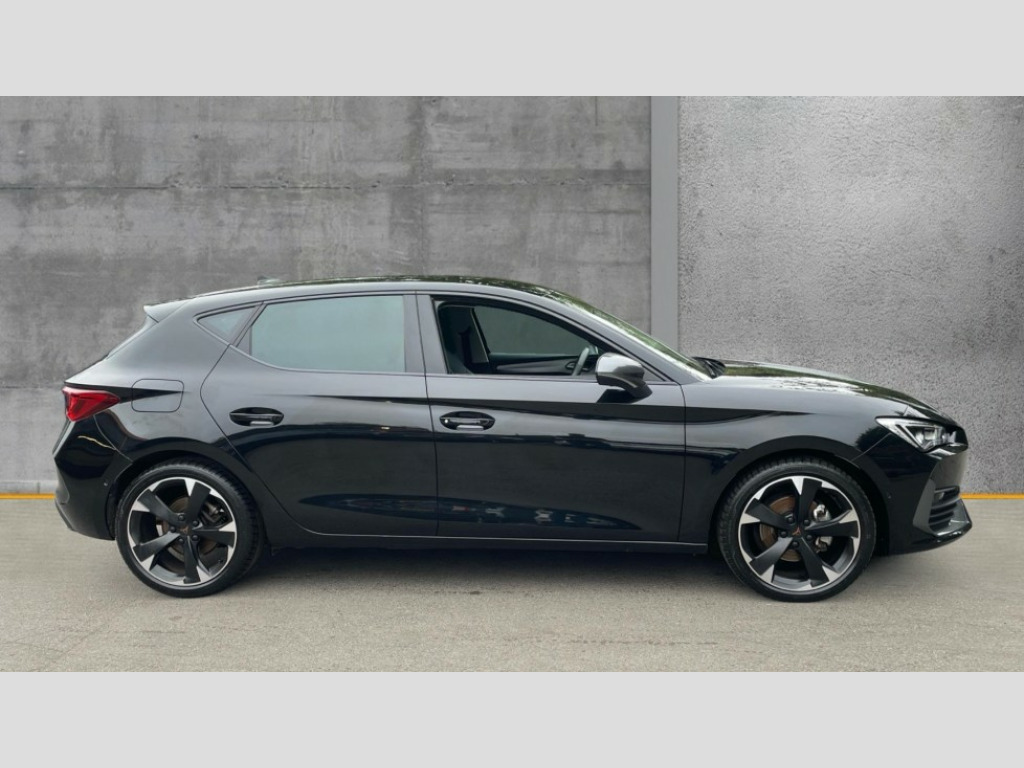 Cupra Leon 1.5 TSI V1 5dr CUPRA drive profile selection with (Comfort/Sport/Individual), throttle response and gearshift mode, Digital cockpit, E-call, Electro mechanical speed sensitive power steering, Four x USB Type C ports (2 in front and 2 in rear), Front assist with forward collision warning braking reaction to vehicles, pedestrians and cyclists, Full link smartphone integration with Mirror Link, wireless Apple CarPlay and wired Google Android Auto, Lane assist, Lockable tailgate, Park assist (inc front/rear parking sensors), Rear view camera, RPM, trip computer, outside temp gauge, instrument light brightness, low fuel warning light, lights on reminder, gearshift indicator, Service interval indicator, Start/stop system with regenerative braking, Wireless phone charger, Sports suspension, Auxiliary input socket, Auto dimming rear view mirror, Body colour door handles, Body coloured bumpers, Cupra sports bumpers, Dark tinted rear windows, Electric front/rear windows, Electrically adjustable, heated and folding door mirrors, LED front fog lamps with cornering function, LED headlights with dynamic turn signals, tail lights, rear fog lights with rear coast to coast lighting, Rain sensing wipers, Rear diffuser with twin exhaust pipe on each side, Rear side wing doors, Rear wash/wipe, Separate daytime running light with automatic headlight control and coming home feature, Third brake light, 12v power supply in centre console, 3 seat bench in 2nd row, 5 headrests, 60/40 split rear bench seat with armrest, Ambient lighting with glovebox, footwell and single monocolour, Cupra Leather flat bottomed, perforated steering wheel, Driver/passenger manual seat height adjustment, Folding boot cover, Front and rear reading lights X 4, Front centre armrest, Front seats manual lumbar adjustment, Grey headlining, Height/reach adjust steering wheel, Illuminated interior front door sills, ISOFIX points in outer rear seats with top tether anchorage points, Jack and tool kit, PVC/Cloth upholstery with copper stitching, Single front passenger seat, Sports seats, Sunvisors with illuminated mirror, Three zone climate control, Media system plus with navigation pack - Leon Cupra, Safety and driving pack (M) - Cupra leon, 3 point seatbelts on all rear seats, ABS, Brake control system - ESC and brake booster, Child proof door locks, Cupra black brake calipers, Driver and front passenger airbags with front passenger airbag de-activation, front side and curtain airbags, Electronic parking brake, Extended safety system - seat belt tensioner, window closure and hazard lights, Hill hold control, Rear disc brakes, Seat belt reminder for front and rear seats, Tiredness recognition system, Tyre pressure monitoring system, Anti theft alarm system with interior monitoring in cab, backup horn and towing protection, KESSY Advanced - Keyless start, keyless entry, Locking wheel bolts, Chrome and copper interior detailing, 18" Machined sport black and silver alloy wheels with 92Y tyres