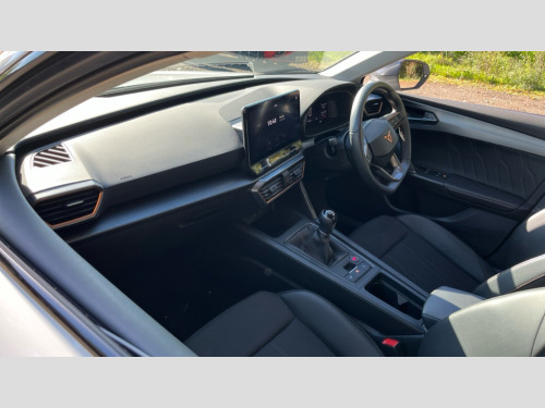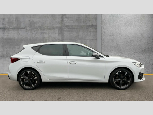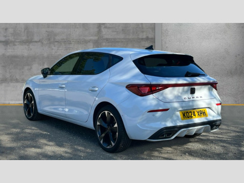 Cupra Leon 1.5 TSI V1 5dr CUPRA drive profile selection with (Comfort/Sport/Individual), throttle response and gearshift mode, Digital cockpit, E-call, Electro mechanical speed sensitive power steering, Four x USB Type C ports (2 in front and 2 in rear), Front assist with forward collision warning braking reaction to vehicles, pedestrians and cyclists, Full link smartphone integration with Mirror Link, wireless Apple CarPlay and wired Google Android Auto, Lane assist, Lockable tailgate, Park assist (inc front/rear parking sensors), Rear view camera, RPM, trip computer, outside temp gauge, instrument light brightness, low fuel warning light, lights on reminder, gearshift indicator, Service interval indicator, Start/stop system with regenerative braking, Wireless phone charger, Sports suspension, Auxiliary input socket, Auto dimming rear view mirror, Body colour door handles, Body coloured bumpers, Cupra sports bumpers, Dark tinted rear windows, Electric front/rear windows, Electrically adjustable, heated and folding door mirrors, LED front fog lamps with cornering function, LED headlights with dynamic turn signals, tail lights, rear fog lights with rear coast to coast lighting, Rain sensing wipers, Rear diffuser with twin exhaust pipe on each side, Rear side wing doors, Rear wash/wipe, Separate daytime running light with automatic headlight control and coming home feature, Third brake light, 12v power supply in centre console, 3 seat bench in 2nd row, 5 headrests, 60/40 split rear bench seat with armrest, Ambient lighting with glovebox, footwell and single monocolour, Cupra Leather flat bottomed, perforated steering wheel, Driver/passenger manual seat height adjustment, Folding boot cover, Front and rear reading lights X 4, Front centre armrest, Front seats manual lumbar adjustment, Grey headlining, Height/reach adjust steering wheel, Illuminated interior front door sills, ISOFIX points in outer rear seats with top tether anchorage points, Jack and tool kit, PVC/Cloth upholstery with copper stitching, Single front passenger seat, Sports seats, Sunvisors with illuminated mirror, Three zone climate control, Media system plus with navigation pack - Leon Cupra, Safety and driving pack (M) - Cupra leon, 3 point seatbelts on all rear seats, ABS, Brake control system - ESC and brake booster, Child proof door locks, Cupra black brake calipers, Driver and front passenger airbags with front passenger airbag de-activation, front side and curtain airbags, Electronic parking brake, Extended safety system - seat belt tensioner, window closure and hazard lights, Hill hold control, Rear disc brakes, Seat belt reminder for front and rear seats, Tiredness recognition system, Tyre pressure monitoring system, Anti theft alarm system with interior monitoring in cab, backup horn and towing protection, KESSY Advanced - Keyless start, keyless entry, Locking wheel bolts, Chrome and copper interior detailing, 18" Machined sport black and silver alloy wheels with 92Y tyres