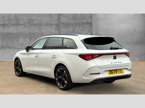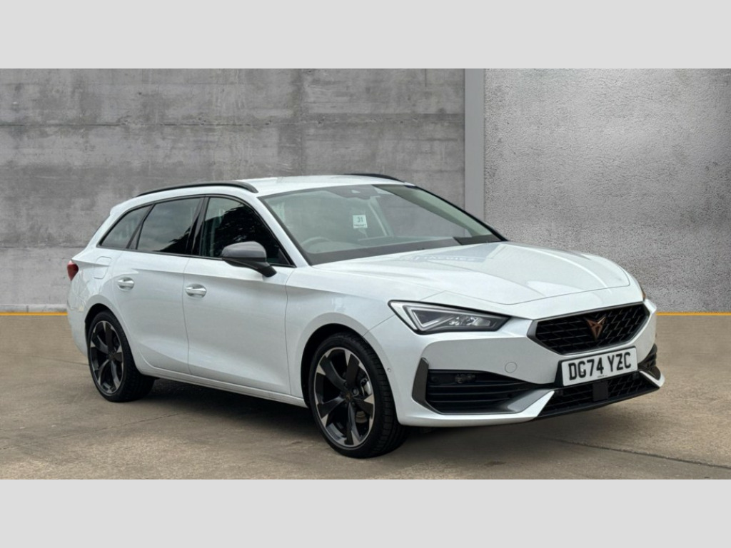 Cupra Leon 1.5 TSI V1 5dr CUPRA drive profile selection with (Comfort/Sport/Individual), throttle response and gearshift mode, Digital cockpit, E-call, Electro mechanical speed sensitive power steering, Four x USB Type C ports (2 in front and 2 in rear), Front assist with forward collision warning braking reaction to vehicles, pedestrians and cyclists, Full link smartphone integration with Mirror Link, wireless Apple CarPlay and wired Google Android Auto, Lane assist, Lockable tailgate, Park assist (inc front/rear parking sensors), Rear view camera, RPM, trip computer, outside temp gauge, instrument light brightness, low fuel warning light, lights on reminder, gearshift indicator, Service interval indicator, Start/stop system with regenerative braking, Wireless phone charger, Sports suspension, Auxiliary input socket, Auto dimming rear view mirror, Body colour door handles, Body coloured bumpers, Cupra sports bumpers, Dark tinted rear windows, Electric front/rear windows, Electrically adjustable, heated and folding door mirrors, Gloss black roof rails, LED front fog lamps with cornering function, LED headlights with dynamic turn signals, tail lights, rear fog lights with rear coast to coast lighting, Rain sensing wipers, Rear diffuser with twin exhaust pipe on each side, Rear side wing doors, Rear wash/wipe, Separate daytime running light with automatic headlight control and coming home feature, Third brake light, 12v power supply in centre console, 12v socket in loadspace, 3 seat bench in 2nd row, 5 headrests, 60/40 split rear bench seat with armrest, Ambient lighting with glovebox, footwell and single monocolour, Cupra Leather flat bottomed, perforated steering wheel, Driver/passenger manual seat height adjustment, Front and rear reading lights X 4, Front centre armrest, Front seats manual lumbar adjustment, Grey headlining, Height/reach adjust steering wheel, Illuminated interior front door sills, ISOFIX points in outer rear seats with top tether anchorage points, Jack and tool kit, PVC/Cloth upholstery with copper stitching, Single front passenger seat, Sliding boot cover, Sports seats, Sunvisors with illuminated mirror, Three zone climate control, Media system plus with navigation pack - Leon Cupra, Safety and driving pack (M) - Cupra leon, 3 point seatbelts on all rear seats, ABS, Brake control system - ESC and brake booster, Child proof door locks, Cupra black brake calipers, Driver and front passenger airbags with front passenger airbag de-activation, front side and curtain airbags, Electronic parking brake, Extended safety system - seat belt tensioner, window closure and hazard lights, Hill hold control, Rear disc brakes, Seat belt reminder for front and rear seats, Tiredness recognition system, Tyre pressure monitoring system, Anti theft alarm system with interior monitoring in cab, backup horn and towing protection, KESSY Advanced - Keyless start, keyless entry, Locking wheel bolts, Chrome and copper interior detailing, 18" Machined sport black and silver alloy wheels with 92Y tyres