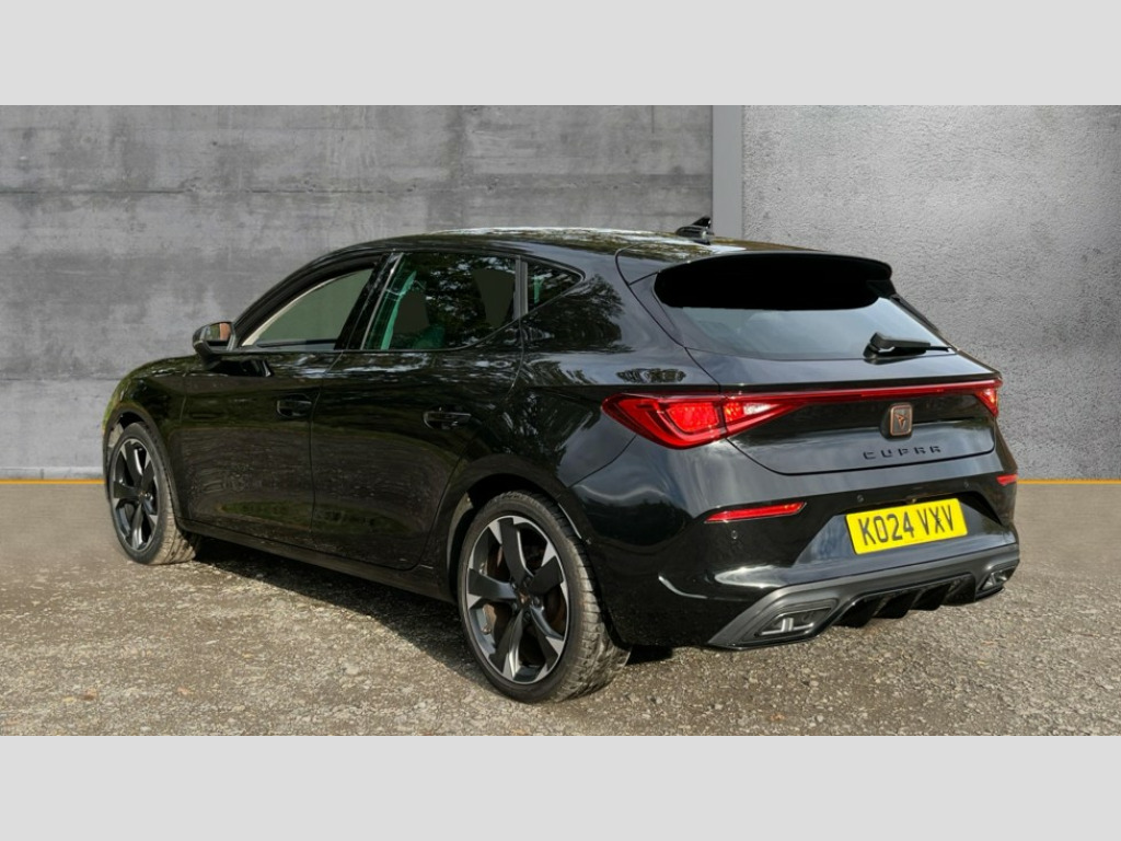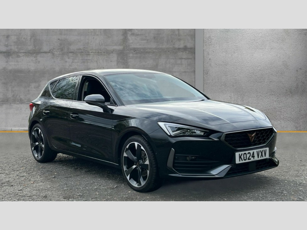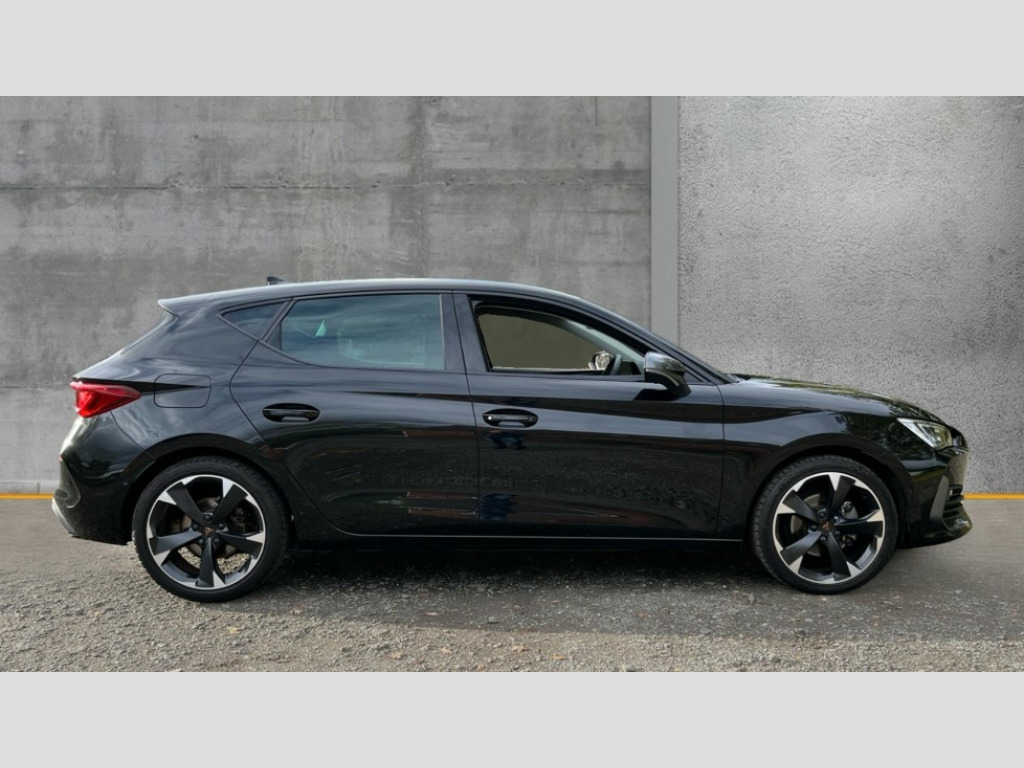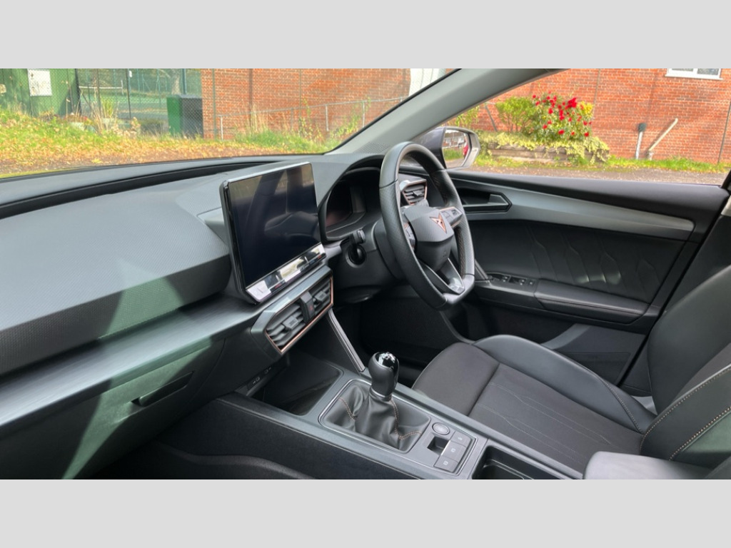 Cupra Leon 1.5 TSI V1 5dr CUPRA drive profile selection with (Comfort/Sport/Individual), throttle response and gearshift mode, Digital cockpit, E-call, Electro mechanical speed sensitive power steering, Four x USB Type C ports (2 in front and 2 in rear), Front assist with forward collision warning braking reaction to vehicles, pedestrians and cyclists, Full link smartphone integration with Mirror Link, wireless Apple CarPlay and wired Google Android Auto, Lane assist, Lockable tailgate, Park assist (inc front/rear parking sensors), Rear view camera, RPM, trip computer, outside temp gauge, instrument light brightness, low fuel warning light, lights on reminder, gearshift indicator, Service interval indicator, Start/stop system with regenerative braking, Wireless phone charger, Sports suspension, Auxiliary input socket, Auto dimming rear view mirror, Body colour door handles, Body coloured bumpers, Cupra sports bumpers, Dark tinted rear windows, Electric front/rear windows, Electrically adjustable, heated and folding door mirrors, LED front fog lamps with cornering function, LED headlights with dynamic turn signals, tail lights, rear fog lights with rear coast to coast lighting, Rain sensing wipers, Rear diffuser with twin exhaust pipe on each side, Rear side wing doors, Rear wash/wipe, Separate daytime running light with automatic headlight control and coming home feature, Third brake light, 12v power supply in centre console, 3 seat bench in 2nd row, 5 headrests, 60/40 split rear bench seat with armrest, Ambient lighting with glovebox, footwell and single monocolour, Cupra Leather flat bottomed, perforated steering wheel, Driver/passenger manual seat height adjustment, Folding boot cover, Front and rear reading lights X 4, Front centre armrest, Front seats manual lumbar adjustment, Grey headlining, Height/reach adjust steering wheel, Illuminated interior front door sills, ISOFIX points in outer rear seats with top tether anchorage points, Jack and tool kit, PVC/Cloth upholstery with copper stitching, Single front passenger seat, Sports seats, Sunvisors with illuminated mirror, Three zone climate control, Media system plus with navigation pack - Leon Cupra, Safety and driving pack (M) - Cupra leon, 3 point seatbelts on all rear seats, ABS, Brake control system - ESC and brake booster, Child proof door locks, Cupra black brake calipers, Driver and front passenger airbags with front passenger airbag de-activation, front side and curtain airbags, Electronic parking brake, Extended safety system - seat belt tensioner, window closure and hazard lights, Hill hold control, Rear disc brakes, Seat belt reminder for front and rear seats, Tiredness recognition system, Tyre pressure monitoring system, Anti theft alarm system with interior monitoring in cab, backup horn and towing protection, KESSY Advanced - Keyless start, keyless entry, Locking wheel bolts, Chrome and copper interior detailing, 18" Machined sport black and silver alloy wheels with 92Y tyres