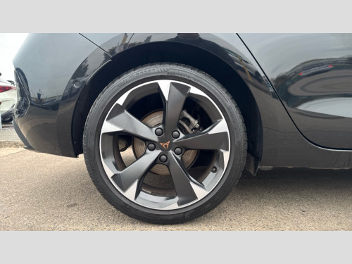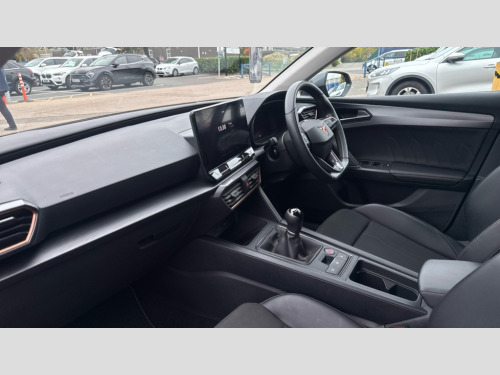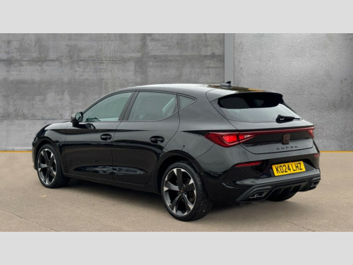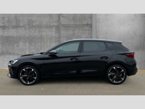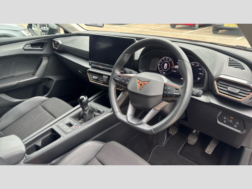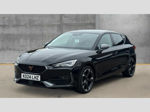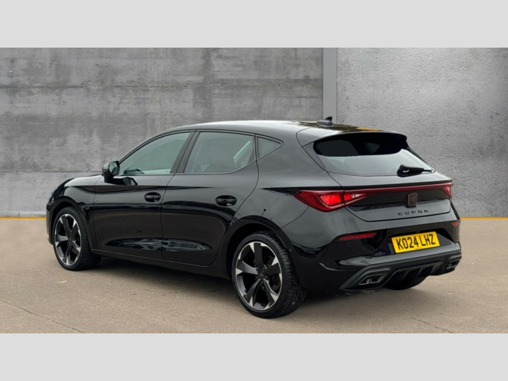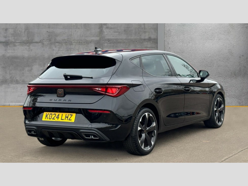 Cupra Leon 1.5 TSI V1 5dr CUPRA drive profile selection with (Comfort/Sport/Individual), throttle response and gearshift mode, Digital cockpit, E-call, Electro mechanical speed sensitive power steering, Four x USB Type C ports (2 in front and 2 in rear), Front assist with forward collision warning braking reaction to vehicles, pedestrians and cyclists, Full link smartphone integration with Mirror Link, wireless Apple CarPlay and wired Google Android Auto, Lane assist, Lockable tailgate, Park assist (inc front/rear parking sensors), Rear view camera, RPM, trip computer, outside temp gauge, instrument light brightness, low fuel warning light, lights on reminder, gearshift indicator, Service interval indicator, Start/stop system with regenerative braking, Wireless phone charger, Sports suspension, Auxiliary input socket, Auto dimming rear view mirror, Body colour door handles, Body coloured bumpers, Cupra sports bumpers, Dark tinted rear windows, Electric front/rear windows, Electrically adjustable, heated and folding door mirrors, LED front fog lamps with cornering function, LED headlights with dynamic turn signals, tail lights, rear fog lights with rear coast to coast lighting, Rain sensing wipers, Rear diffuser with twin exhaust pipe on each side, Rear side wing doors, Rear wash/wipe, Separate daytime running light with automatic headlight control and coming home feature, Third brake light, 12v power supply in centre console, 3 seat bench in 2nd row, 5 headrests, 60/40 split rear bench seat with armrest, Ambient lighting with glovebox, footwell and single monocolour, Cupra Leather flat bottomed, perforated steering wheel, Driver/passenger manual seat height adjustment, Folding boot cover, Front and rear reading lights X 4, Front centre armrest, Front seats manual lumbar adjustment, Grey headlining, Height/reach adjust steering wheel, Illuminated interior front door sills, ISOFIX points in outer rear seats with top tether anchorage points, Jack and tool kit, PVC/Cloth upholstery with copper stitching, Single front passenger seat, Sports seats, Sunvisors with illuminated mirror, Three zone climate control, Media system plus with navigation pack - Leon Cupra, Safety and driving pack (M) - Cupra leon, 3 point seatbelts on all rear seats, ABS, Brake control system - ESC and brake booster, Child proof door locks, Cupra black brake calipers, Driver and front passenger airbags with front passenger airbag de-activation, front side and curtain airbags, Electronic parking brake, Extended safety system - seat belt tensioner, window closure and hazard lights, Hill hold control, Rear disc brakes, Seat belt reminder for front and rear seats, Tiredness recognition system, Tyre pressure monitoring system, Anti theft alarm system with interior monitoring in cab, backup horn and towing protection, KESSY Advanced - Keyless start, keyless entry, Locking wheel bolts, Chrome and copper interior detailing, 18" Machined sport black and silver alloy wheels with 92Y tyres