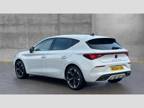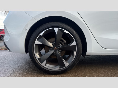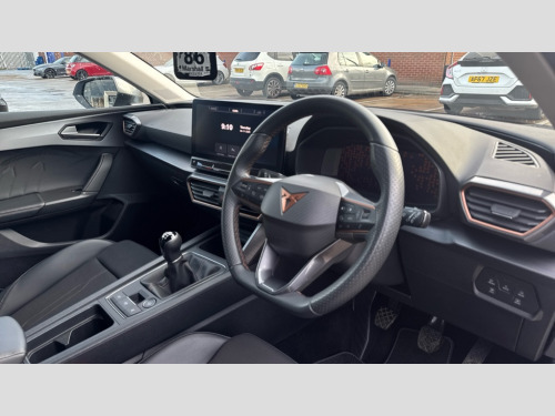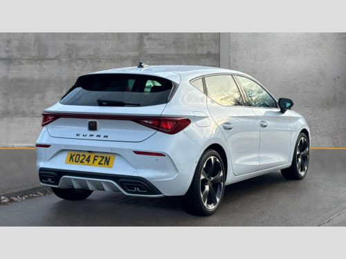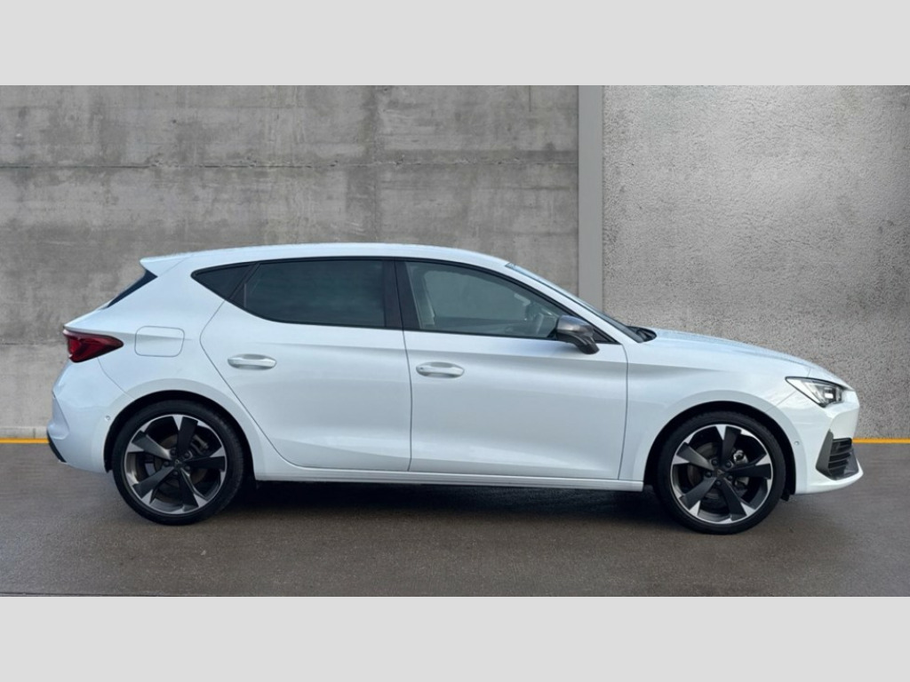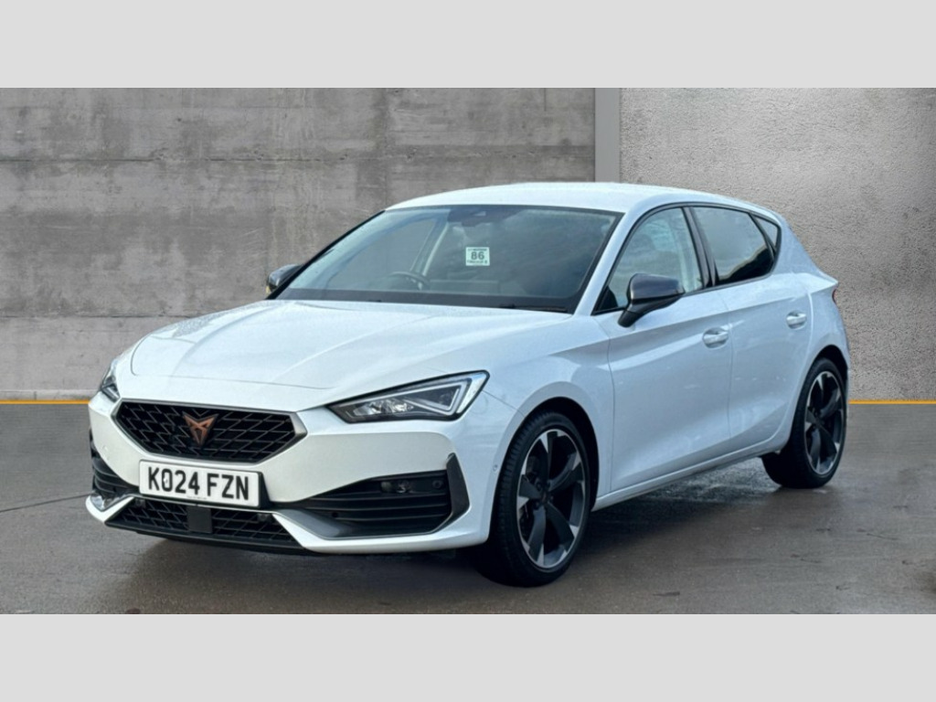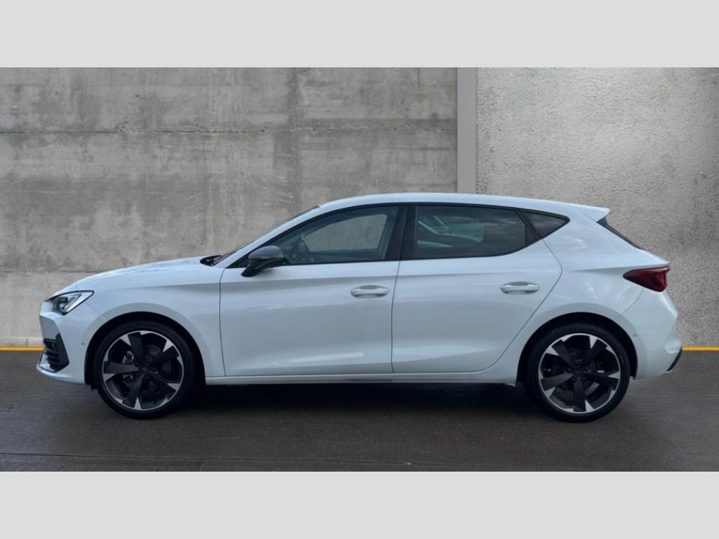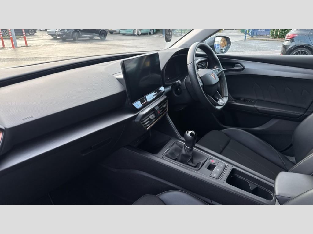Cupra Leon 1.5 TSI V1 5dr CUPRA drive profile selection with (Comfort/Sport/Individual), throttle response and gearshift mode, Digital cockpit, E-call, Electro mechanical speed sensitive power steering, Four x USB Type C ports (2 in front and 2 in rear), Front assist with forward collision warning braking reaction to vehicles, pedestrians and cyclists, Full link smartphone integration with Mirror Link, wireless Apple CarPlay and wired Google Android Auto, Lane assist, Lockable tailgate, Park assist (inc front/rear parking sensors), Rear view camera, RPM, trip computer, outside temp gauge, instrument light brightness, low fuel warning light, lights on reminder, gearshift indicator, Service interval indicator, Start/stop system with regenerative braking, Wireless phone charger, Sports suspension, Auxiliary input socket, Auto dimming rear view mirror, Body colour door handles, Body coloured bumpers, Cupra sports bumpers, Dark tinted rear windows, Electric front/rear windows, Electrically adjustable, heated and folding door mirrors, LED front fog lamps with cornering function, LED headlights with dynamic turn signals, tail lights, rear fog lights with rear coast to coast lighting, Rain sensing wipers, Rear diffuser with twin exhaust pipe on each side, Rear side wing doors, Rear wash/wipe, Separate daytime running light with automatic headlight control and coming home feature, Third brake light, 12v power supply in centre console, 3 seat bench in 2nd row, 5 headrests, 60/40 split rear bench seat with armrest, Ambient lighting with glovebox, footwell and single monocolour, Cupra Leather flat bottomed, perforated steering wheel, Driver/passenger manual seat height adjustment, Folding boot cover, Front and rear reading lights X 4, Front centre armrest, Front seats manual lumbar adjustment, Grey headlining, Height/reach adjust steering wheel, Illuminated interior front door sills, ISOFIX points in outer rear seats with top tether anchorage points, Jack and tool kit, PVC/Cloth upholstery with copper stitching, Single front passenger seat, Sports seats, Sunvisors with illuminated mirror, Three zone climate control, Media system plus with navigation pack - Leon Cupra, Safety and driving pack (M) - Cupra leon, 3 point seatbelts on all rear seats, ABS, Brake control system - ESC and brake booster, Child proof door locks, Cupra black brake calipers, Driver and front passenger airbags with front passenger airbag de-activation, front side and curtain airbags, Electronic parking brake, Extended safety system - seat belt tensioner, window closure and hazard lights, Hill hold control, Rear disc brakes, Seat belt reminder for front and rear seats, Tiredness recognition system, Tyre pressure monitoring system, Anti theft alarm system with interior monitoring in cab, backup horn and towing protection, KESSY Advanced - Keyless start, keyless entry, Locking wheel bolts, Chrome and copper interior detailing, 18" Machined sport black and silver alloy wheels with 92Y tyres