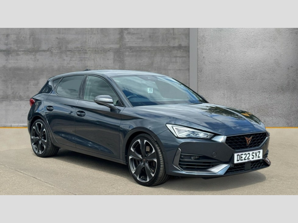 Cupra Leon 2.0 TSI 300 VZ2 5dr DSG CUPRA drive profile selection with 4 modes (Comfort/Cupra/Sport/Individual), throttle response and gearshift mode, Digital cockpit, E-call, Four x USB Type C ports, Front assist with forward collision warning braking reaction to vehicles, pedestrians and cyclists, Full link smartphone integration with Mirror Link, wireless Apple CarPlay and wired Google Android Auto, Lane assist, Lockable tailgate, Park assist (inc front/rear parking sensors), Rear view camera, RPM, trip computer, outside temp gauge, instrument light brightness, low fuel warning light, lights on reminder, gearshift indicator, Service interval indicator, Start/stop system with regenerative braking, Standard suspension, XDS electronic differential lock and dynamic traction support, 7 speakers, Auxiliary input socket, Auto dimming rear view mirror, Body colour door handles, Body coloured bumpers, Cupra sports bumpers, Dark tinted rear windows, Electric front/rear windows, Electrically adjustable, heated and folding door mirrors, LED front fog lamps with cornering function, LED headlights and tail lights with dynamic turn signals, welcome light silhouette from exterior mirrors and dynamic headlight range control, LED rear fog lamp, Rain sensing wipers, Rear coast to coast lighting, Rear diffuser with splitter and oval quad exhaust pipes, Rear side wing doors, Rear wash/wipe, Separate daytime running light with automatic headlight control and coming home feature, Third brake light, 12v power supply in centre console, 3 seat bench in 2nd row, 5 headrests, 60/40 split rear bench seat with armrest, Ambient lighting (glovebox, footwell, ambient lighting multicoloured), Black headlining, CUPRA Leather flat bottomed, heated, perforated steering and gearshift paddles, Cupra sports pedals, Driver/passenger manual seat height adjustment, Dust/pollen filter, Folding boot cover, Front and rear reading lights X 4, Front centre armrest, Front seats manual lumbar adjustment, Height/reach adjust steering wheel, Illuminated interior front door sills, Interior wraparound lighting, ISOFIX points in outer rear seats with top tether anchorage points, Jack and tool kit, Luggage tie-down hooks, PVC/Cloth upholstery with copper stitching + Cupra embossed logo on headrest, Single front passenger seat, Sports bucket seats, Storage pockets on rear of front seats, Sunvisors with illuminated mirror, Three zone climate control, Dynamic and comfort pack - Leon Cupra, Media system plus with navigation pack - Leon Cupra, 3 point seatbelts on all rear seats, ABS, Brake control system - ESC and brake booster, Child proof door locks, Cupra black brake calipers, Driver and front passenger airbags with front passenger airbag de-activation, front side and curtain airbags, Electronic parking brake, Extended safety system - seat belt tensioner, window closure and hazard lights, Hill hold control, Rear disc brakes, Seat belt reminder for front and rear seats, Tiredness recognition system, Tyre pressure monitoring system, Anti theft alarm system with interior monitoring in cab, backup horn and towing protection, KESSY Advanced - Keyless start, keyless entry, Locking wheel bolts, Chrome and copper interior detailing, 19" Machined black and silver alloy wheels with 91Y tyres, Space saver spare wheel