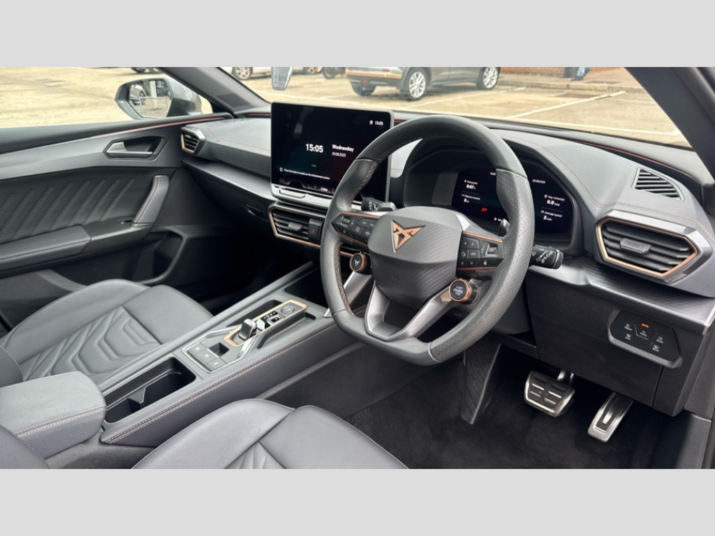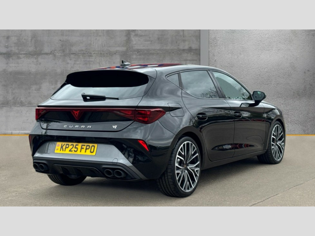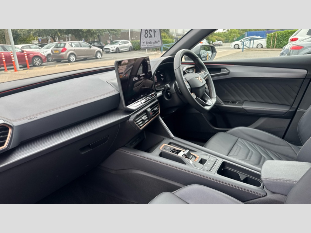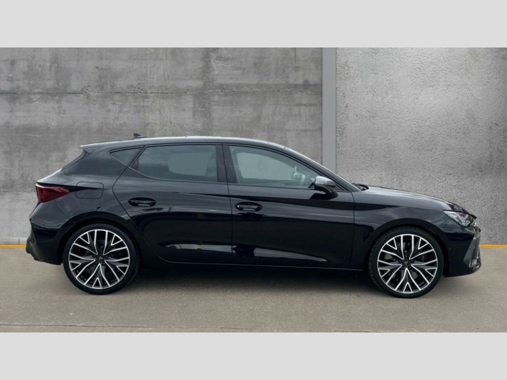 Cupra Leon 2.0 TSI 300 VZ2 5dr DSG Adaptive cruise control with follow-to-stop and speed limiter, CUPRA drive profile selection with (Comfort/Sport/Individual), throttle response and gearshift mode, Digital cockpit, Dynamic road sign display, E-call, Four x USB Type C ports (2 in front and 2 in rear), Front and rear parking sensors, Front assist with forward collision warning braking reaction to vehicles, pedestrians and cyclists, Full link smartphone integration with Mirror Link, wireless Apple CarPlay and wired Google Android Auto, Intelligent park assist, Lane change assist with emergency assist, Lockable tailgate, Rear view camera, RPM, trip computer, outside temp gauge, instrument light brightness, low fuel warning light, lights on reminder, gearshift indicator, Service interval indicator, Side and exit assist, Start/stop system with regenerative braking, Wireless phone charger, Auxiliary input socket, Auto dimming rear view mirror, Body colour door handles, Body coloured bumpers, Cupra sports bumpers, Dark tinted rear windows, Electric front/rear windows, Electrically adjustable, heated and folding door mirrors, High beam assist, LED front fog lamps with cornering function, LED rear fog lamp, Matrix LED Headlights with variable light distribution, Matrix Beam and Dynamic headlight range control, Rain sensing wipers, Rear side wing doors, Rear wash/wipe, Separate daytime running light with automatic headlight control and coming home feature, Third brake light, Welcome light with logo projector in door mirrors, 12v power supply in centre console, 3 seat bench in 2nd row, 5 headrests, 60/40 split rear bench seat with armrest, Ambient lighting (glovebox, footwell, ambient lighting multicoloured), Black headlining, Cupra sports pedals, CUPRA Supersports, heated steering wheel with satellite buttons, Electrically adjustable driver seat and lumbar support with memory function + manually adjustable passenger seat, Folding boot cover, Front and rear reading lights X 4, Front centre armrest, Heated front seats, Height/reach adjust steering wheel, Illuminated interior front door sills, Interior wraparound lighting, ISOFIX points in outer rear seats with top tether anchorage points, Leather upholstery, Single front passenger seat, Storage pockets on rear of front seats, Sunvisors with illuminated mirror, Three zone climate control, Dynamic and comfort pack - Leon Cupra, Media system plus with 12.9" display + navigation pack - Leon Cupra, 3 point seatbelts on all rear seats, ABS, Brake control system - ESC and brake booster, Child proof door locks, Cupra black brake calipers, Driver and front passenger airbags with front passenger airbag de-activation, front side and curtain airbags, Electronic parking brake, Hill hold control, Pre-crash front and rear seat belt tensioner, window closure and hazard lights, Rear disc brakes, Seat belt reminder for front and rear seats, Tiredness recognition system, Tyre pressure monitoring system, Anti theft alarm system with interior monitoring in cab, backup horn and towing protection, KESSY Advanced - Keyless start, keyless entry, Locking wheel bolts, Chrome and copper interior detailing, 19" Mistral machined R black and silver alloy wheel with 91Y tyres, Breakdown kit, Tool kit