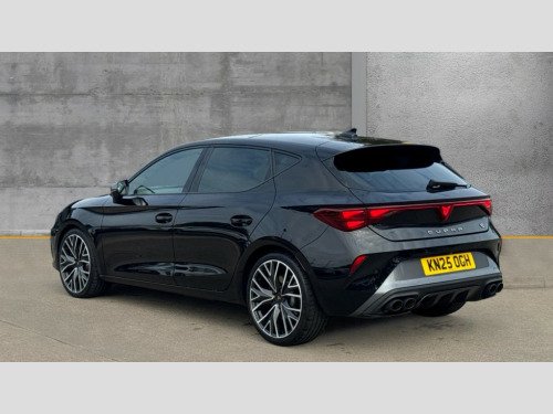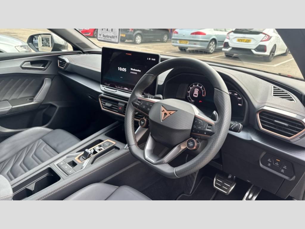 Cupra Leon 2.0 TSI 300 VZ2 5dr DSG Adaptive cruise control with follow-to-stop and speed limiter, CUPRA drive profile selection with (Comfort/Sport/Individual), throttle response and gearshift mode, Digital cockpit, Dynamic road sign display, E-call, Four x USB Type C ports (2 in front and 2 in rear), Front and rear parking sensors, Front assist with forward collision warning braking reaction to vehicles, pedestrians and cyclists, Full link smartphone integration with Mirror Link, wireless Apple CarPlay and wired Google Android Auto, Intelligent park assist, Lane change assist with emergency assist, Lockable tailgate, Rear view camera, RPM, trip computer, outside temp gauge, instrument light brightness, low fuel warning light, lights on reminder, gearshift indicator, Service interval indicator, Side and exit assist, Start/stop system with regenerative braking, Wireless phone charger, Auxiliary input socket, Auto dimming rear view mirror, Body colour door handles, Body coloured bumpers, Cupra sports bumpers, Dark tinted rear windows, Electric front/rear windows, Electrically adjustable, heated and folding door mirrors, High beam assist, LED front fog lamps with cornering function, LED rear fog lamp, Matrix LED Headlights with variable light distribution, Matrix Beam and Dynamic headlight range control, Rain sensing wipers, Rear side wing doors, Rear wash/wipe, Separate daytime running light with automatic headlight control and coming home feature, Third brake light, Welcome light with logo projector in door mirrors, 12v power supply in centre console, 3 seat bench in 2nd row, 5 headrests, 60/40 split rear bench seat with armrest, Ambient lighting (glovebox, footwell, ambient lighting multicoloured), Black headlining, Cupra sports pedals, CUPRA Supersports, heated steering wheel with satellite buttons, Electrically adjustable driver seat and lumbar support with memory function + manually adjustable passenger seat, Folding boot cover, Front and rear reading lights X 4, Front centre armrest, Heated front seats, Height/reach adjust steering wheel, Illuminated interior front door sills, Interior wraparound lighting, ISOFIX points in outer rear seats with top tether anchorage points, Leather upholstery, Single front passenger seat, Storage pockets on rear of front seats, Sunvisors with illuminated mirror, Three zone climate control, Dynamic and comfort pack - Leon Cupra, Media system plus with 12.9" display + navigation pack - Leon Cupra, 3 point seatbelts on all rear seats, ABS, Brake control system - ESC and brake booster, Child proof door locks, Cupra black brake calipers, Driver and front passenger airbags with front passenger airbag de-activation, front side and curtain airbags, Electronic parking brake, Hill hold control, Pre-crash front and rear seat belt tensioner, window closure and hazard lights, Rear disc brakes, Seat belt reminder for front and rear seats, Tiredness recognition system, Tyre pressure monitoring system, Anti theft alarm system with interior monitoring in cab, backup horn and towing protection, KESSY Advanced - Keyless start, keyless entry, Locking wheel bolts, Chrome and copper interior detailing, 19" Mistral machined R black and silver alloy wheel with 91Y tyres, Breakdown kit, Tool kit