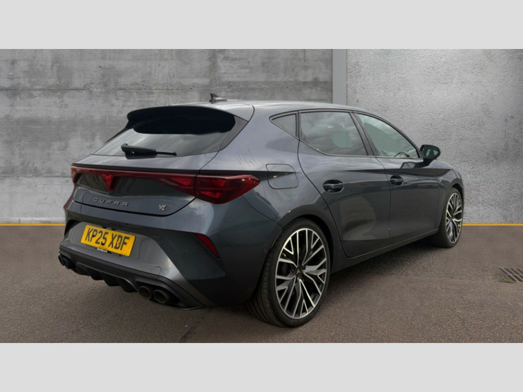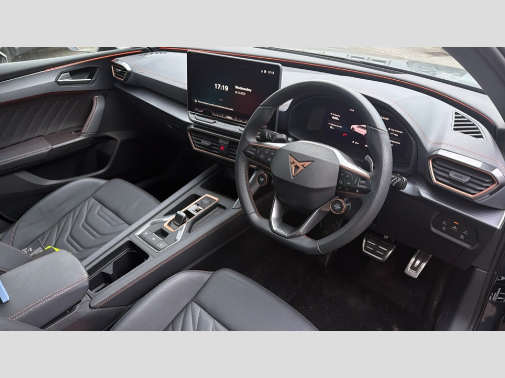 Cupra Leon 2.0 TSI 300 VZ2 5dr DSG Adaptive cruise control with follow-to-stop and speed limiter, CUPRA drive profile selection with (Comfort/Sport/Individual), throttle response and gearshift mode, Digital cockpit, Dynamic road sign display, E-call, Four x USB Type C ports (2 in front and 2 in rear), Front and rear parking sensors, Front assist with forward collision warning braking reaction to vehicles, pedestrians and cyclists, Full link smartphone integration with Mirror Link, wireless Apple CarPlay and wired Google Android Auto, Intelligent park assist, Lane change assist with emergency assist, Lockable tailgate, Rear view camera, RPM, trip computer, outside temp gauge, instrument light brightness, low fuel warning light, lights on reminder, gearshift indicator, Service interval indicator, Side and exit assist, Start/stop system with regenerative braking, Wireless phone charger, Auxiliary input socket, Auto dimming rear view mirror, Body colour door handles, Body coloured bumpers, Cupra sports bumpers, Dark tinted rear windows, Electric front/rear windows, Electrically adjustable, heated and folding door mirrors, High beam assist, LED front fog lamps with cornering function, LED rear fog lamp, Matrix LED Headlights with variable light distribution, Matrix Beam and Dynamic headlight range control, Rain sensing wipers, Rear side wing doors, Rear wash/wipe, Separate daytime running light with automatic headlight control and coming home feature, Third brake light, Welcome light with logo projector in door mirrors, 12v power supply in centre console, 3 seat bench in 2nd row, 5 headrests, 60/40 split rear bench seat with armrest, Ambient lighting (glovebox, footwell, ambient lighting multicoloured), Black headlining, Cupra sports pedals, CUPRA Supersports, heated steering wheel with satellite buttons, Electrically adjustable driver seat and lumbar support with memory function + manually adjustable passenger seat, Folding boot cover, Front and rear reading lights X 4, Front centre armrest, Heated front seats, Height/reach adjust steering wheel, Illuminated interior front door sills, Interior wraparound lighting, ISOFIX points in outer rear seats with top tether anchorage points, Leather upholstery, Single front passenger seat, Storage pockets on rear of front seats, Sunvisors with illuminated mirror, Three zone climate control, Dynamic and comfort pack - Leon Cupra, Media system plus with 12.9" display + navigation pack - Leon Cupra, 3 point seatbelts on all rear seats, ABS, Brake control system - ESC and brake booster, Child proof door locks, Cupra black brake calipers, Driver and front passenger airbags with front passenger airbag de-activation, front side and curtain airbags, Electronic parking brake, Hill hold control, Pre-crash front and rear seat belt tensioner, window closure and hazard lights, Rear disc brakes, Seat belt reminder for front and rear seats, Tiredness recognition system, Tyre pressure monitoring system, Anti theft alarm system with interior monitoring in cab, backup horn and towing protection, KESSY Advanced - Keyless start, keyless entry, Locking wheel bolts, Chrome and copper interior detailing, 19" Mistral machined R black and silver alloy wheel with 91Y tyres, Breakdown kit, Tool kit