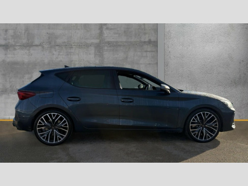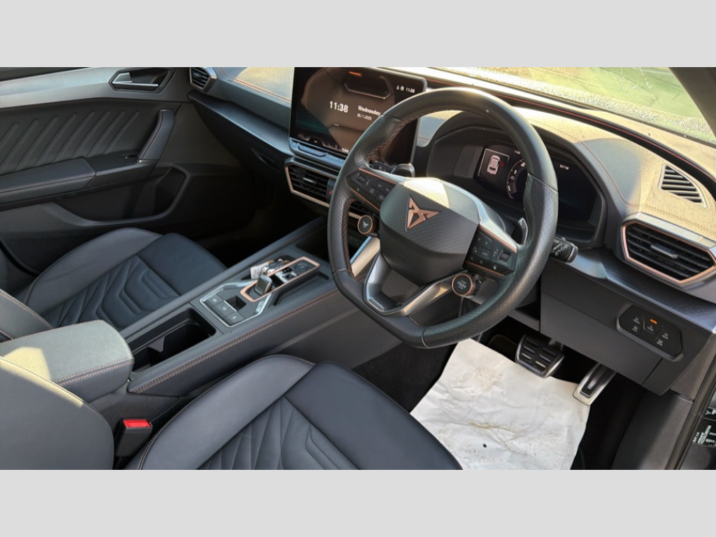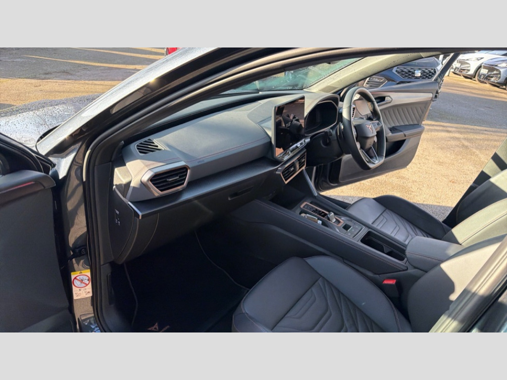 Cupra Leon 2.0 TSI 300 VZ2 5dr DSG Adaptive cruise control with follow-to-stop and speed limiter, CUPRA drive profile selection with (Comfort/Sport/Individual), throttle response and gearshift mode, Digital cockpit, Dynamic road sign display, E-call, Four x USB Type C ports (2 in front and 2 in rear), Front and rear parking sensors, Front assist with forward collision warning braking reaction to vehicles, pedestrians and cyclists, Full link smartphone integration with Mirror Link, wireless Apple CarPlay and wired Google Android Auto, Intelligent park assist, Lane change assist with emergency assist, Lockable tailgate, Rear view camera, RPM, trip computer, outside temp gauge, instrument light brightness, low fuel warning light, lights on reminder, gearshift indicator, Service interval indicator, Side and exit assist, Start/stop system with regenerative braking, Wireless phone charger, Auxiliary input socket, Auto dimming rear view mirror, Body colour door handles, Body coloured bumpers, Cupra sports bumpers, Dark tinted rear windows, Electric front/rear windows, Electrically adjustable, heated and folding door mirrors, High beam assist, LED front fog lamps with cornering function, LED rear fog lamp, Matrix LED Headlights with variable light distribution, Matrix Beam and Dynamic headlight range control, Rain sensing wipers, Rear side wing doors, Rear wash/wipe, Separate daytime running light with automatic headlight control and coming home feature, Third brake light, Welcome light with logo projector in door mirrors, 12v power supply in centre console, 3 seat bench in 2nd row, 5 headrests, 60/40 split rear bench seat with armrest, Ambient lighting (glovebox, footwell, ambient lighting multicoloured), Black headlining, Cupra sports pedals, CUPRA Supersports, heated steering wheel with satellite buttons, Electrically adjustable driver seat and lumbar support with memory function + manually adjustable passenger seat, Folding boot cover, Front and rear reading lights X 4, Front centre armrest, Heated front seats, Height/reach adjust steering wheel, Illuminated interior front door sills, Interior wraparound lighting, ISOFIX points in outer rear seats with top tether anchorage points, Leather upholstery, Single front passenger seat, Storage pockets on rear of front seats, Sunvisors with illuminated mirror, Three zone climate control, Dynamic and comfort pack - Leon Cupra, Media system plus with 12.9" display + navigation pack - Leon Cupra, 3 point seatbelts on all rear seats, ABS, Brake control system - ESC and brake booster, Child proof door locks, Cupra black brake calipers, Driver and front passenger airbags with front passenger airbag de-activation, front side and curtain airbags, Electronic parking brake, Hill hold control, Pre-crash front and rear seat belt tensioner, window closure and hazard lights, Rear disc brakes, Seat belt reminder for front and rear seats, Tiredness recognition system, Tyre pressure monitoring system, Anti theft alarm system with interior monitoring in cab, backup horn and towing protection, KESSY Advanced - Keyless start, keyless entry, Locking wheel bolts, Chrome and copper interior detailing, 19" Mistral machined R black and silver alloy wheel with 91Y tyres, Breakdown kit, Tool kit