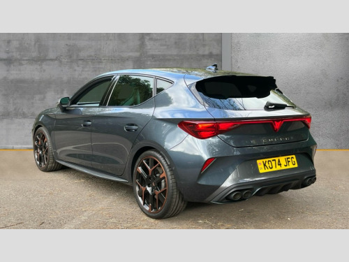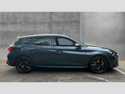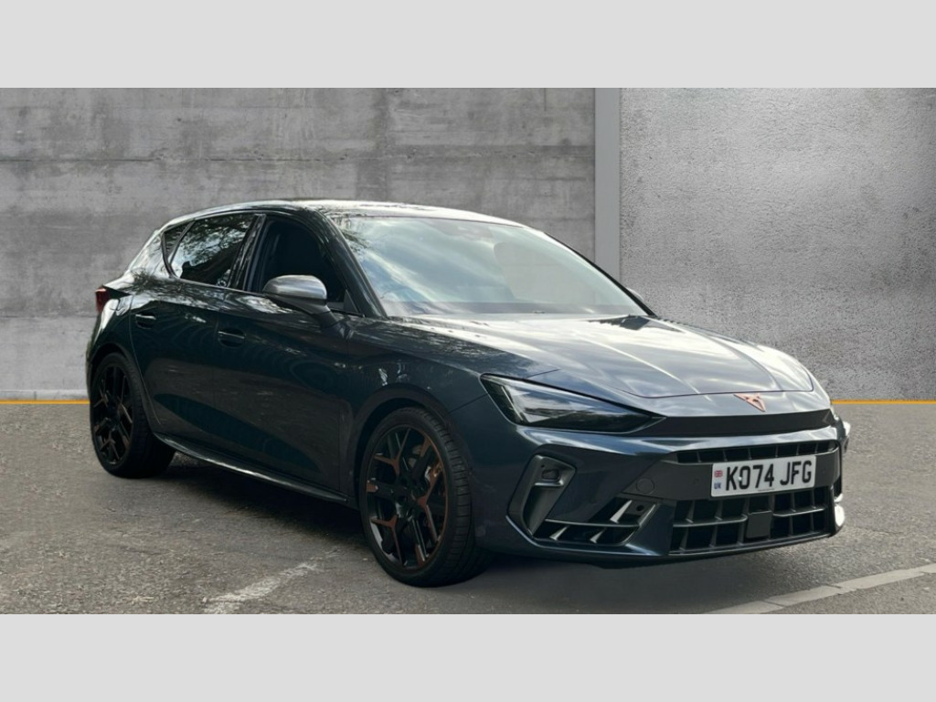 Cupra Leon 2.0 TSI 300 VZ3 5dr DSG Adaptive cruise control with follow-to-stop and speed limiter, CUPRA drive profile selection with (Comfort/Sport/Individual), throttle response and gearshift mode, Digital cockpit, Dynamic road sign display, E-call, Four x USB Type C ports (2 in front and 2 in rear), Front and rear parking sensors, Front assist with forward collision warning braking reaction to vehicles, pedestrians and cyclists, Full link smartphone integration with Mirror Link, wireless Apple CarPlay and wired Google Android Auto, Intelligent park assist, Lane change assist with emergency assist, Lockable tailgate, Rear view camera, RPM, trip computer, outside temp gauge, instrument light brightness, low fuel warning light, lights on reminder, gearshift indicator, Service interval indicator, Side and exit assist, Start/stop system with regenerative braking, Wireless phone charger, Auxiliary input socket, Immersive by Sennheiser TM - 10 speakers, 1 central speaker, 1 subwoofer, Auto dimming rear view mirror, Body colour door handles, Body coloured bumpers, Cupra sports bumpers, Dark tinted rear windows, Electric front/rear windows, Electrically adjustable, heated and folding door mirrors, High beam assist, LED front fog lamps with cornering function, LED rear fog lamp, Matrix LED Headlights with variable light distribution, Matrix Beam and Dynamic headlight range control, Rain sensing wipers, Rear side wing doors, Rear wash/wipe, Separate daytime running light with automatic headlight control and coming home feature, Third brake light, Welcome light with logo projector in door mirrors, 12v power supply in centre console, 3 seat bench in 2nd row, 5 headrests, 60/40 split rear bench seat with armrest, Ambient lighting (glovebox, footwell, ambient lighting multicoloured), Black headlining, Cupra sports pedals, CUPRA Supersports, heated steering wheel with satellite buttons, Electrically adjustable driver seat and lumbar support with memory function + manually adjustable passenger seat, Folding boot cover, Front and rear reading lights X 4, Front centre armrest, Heated front seats, Height/reach adjust steering wheel, Illuminated interior front door sills, Interior wraparound lighting, ISOFIX points in outer rear seats with top tether anchorage points, Single front passenger seat, Sunvisors with illuminated mirror, Textile cloth upholstery, Three zone climate control, Dynamic and comfort pack - Leon Cupra, Media system plus with 12.9" display + navigation pack - Leon Cupra, 3 point seatbelts on all rear seats, ABS, Akebono performance brake calipers, Brake control system - ESC and brake booster, Child proof door locks, Driver and front passenger airbags with front passenger airbag de-activation, front side and curtain airbags, Electronic parking brake, Hill hold control, Pre-crash front and rear seat belt tensioner, window closure and hazard lights, Rear disc brakes, Seat belt reminder for front and rear seats, Tiredness recognition system, Tyre pressure monitoring system, Anti theft alarm system with interior monitoring in cab, backup horn and towing protection, KESSY Advanced - Keyless start, keyless entry, Locking wheel bolts, Chrome and copper interior detailing, 19" Hailstorm forged machined R black and copper alloy wheel with 91Y tyres, Breakdown kit, Tool kit