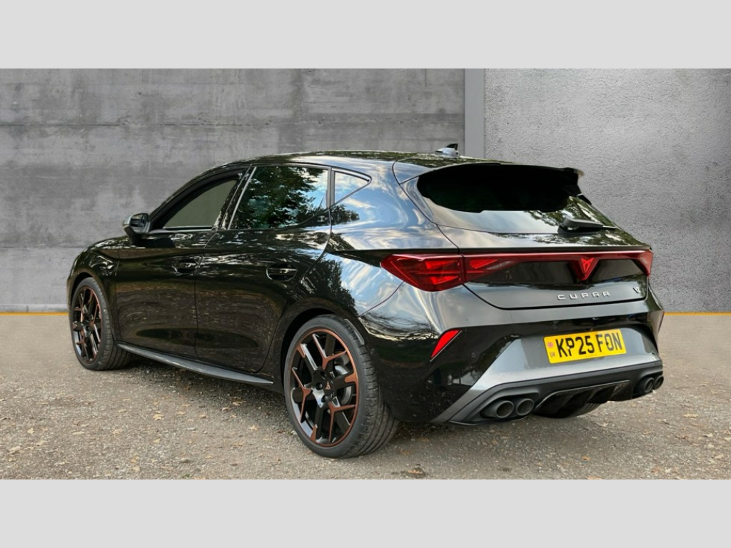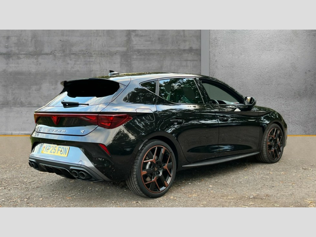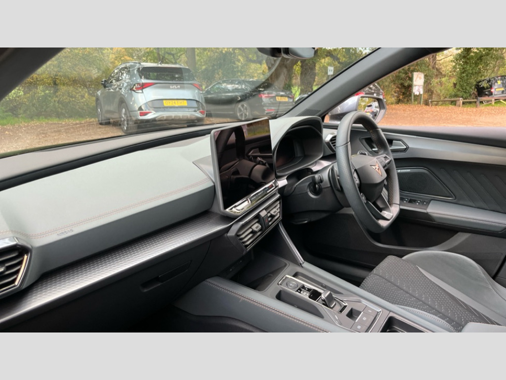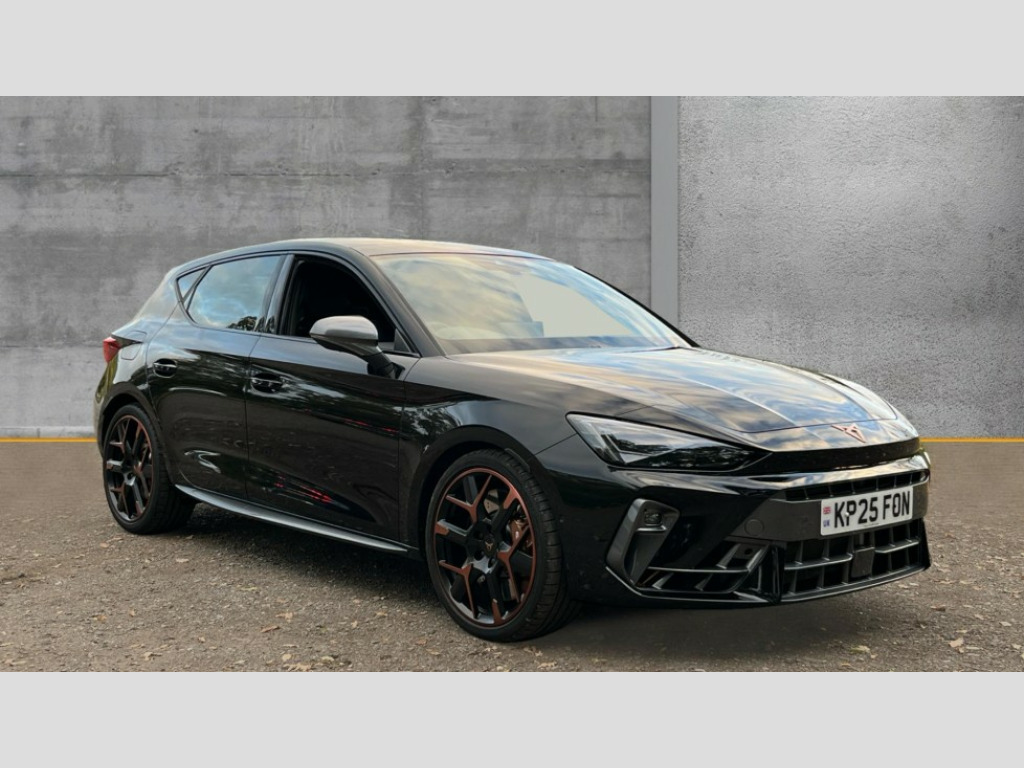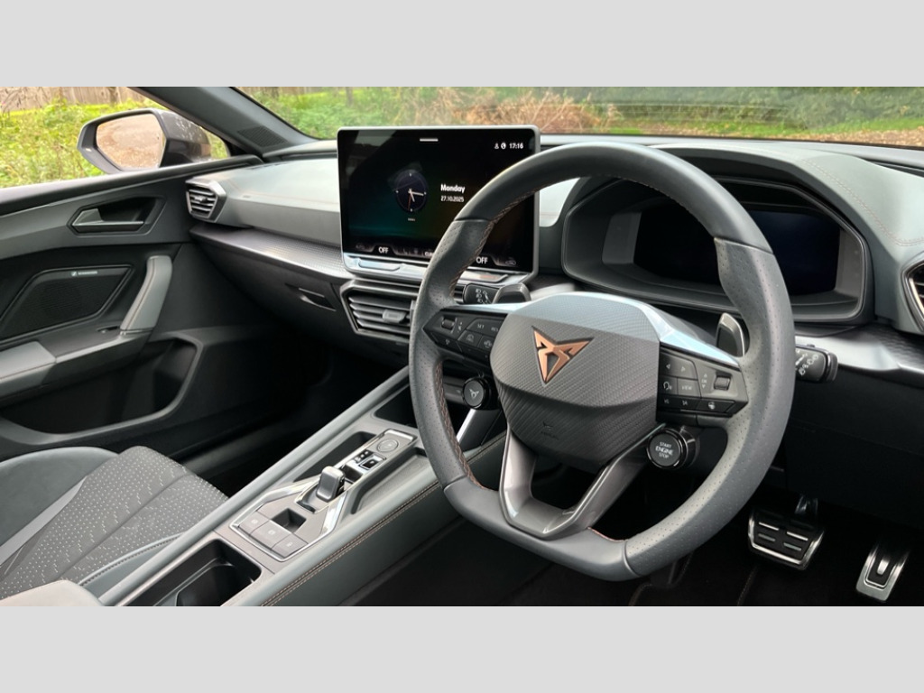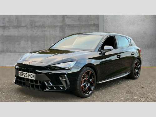 Cupra Leon 2.0 TSI 300 VZ3 5dr DSG Adaptive cruise control with follow-to-stop and speed limiter, CUPRA drive profile selection with (Comfort/Sport/Individual), throttle response and gearshift mode, Digital cockpit, Dynamic road sign display, E-call, Four x USB Type C ports (2 in front and 2 in rear), Front and rear parking sensors, Front assist with forward collision warning braking reaction to vehicles, pedestrians and cyclists, Full link smartphone integration with Mirror Link, wireless Apple CarPlay and wired Google Android Auto, Intelligent park assist, Lane change assist with emergency assist, Lockable tailgate, Rear view camera, RPM, trip computer, outside temp gauge, instrument light brightness, low fuel warning light, lights on reminder, gearshift indicator, Service interval indicator, Side and exit assist, Start/stop system with regenerative braking, Wireless phone charger, Auxiliary input socket, Immersive by Sennheiser TM - 10 speakers, 1 central speaker, 1 subwoofer, Auto dimming rear view mirror, Body colour door handles, Body coloured bumpers, Cupra sports bumpers, Dark tinted rear windows, Electric front/rear windows, Electrically adjustable, heated and folding door mirrors, High beam assist, LED front fog lamps with cornering function, LED rear fog lamp, Matrix LED Headlights with variable light distribution, Matrix Beam and Dynamic headlight range control, Rain sensing wipers, Rear side wing doors, Rear wash/wipe, Separate daytime running light with automatic headlight control and coming home feature, Third brake light, Welcome light with logo projector in door mirrors, 12v power supply in centre console, 3 seat bench in 2nd row, 5 headrests, 60/40 split rear bench seat with armrest, Ambient lighting (glovebox, footwell, ambient lighting multicoloured), Black headlining, Cupra sports pedals, CUPRA Supersports, heated steering wheel with satellite buttons, Electrically adjustable driver seat and lumbar support with memory function + manually adjustable passenger seat, Folding boot cover, Front and rear reading lights X 4, Front centre armrest, Heated front seats, Height/reach adjust steering wheel, Illuminated interior front door sills, Interior wraparound lighting, ISOFIX points in outer rear seats with top tether anchorage points, Single front passenger seat, Sunvisors with illuminated mirror, Textile cloth upholstery, Three zone climate control, Dynamic and comfort pack - Leon Cupra, Media system plus with 12.9" display + navigation pack - Leon Cupra, 3 point seatbelts on all rear seats, ABS, Akebono performance brake calipers, Brake control system - ESC and brake booster, Child proof door locks, Driver and front passenger airbags with front passenger airbag de-activation, front side and curtain airbags, Electronic parking brake, Hill hold control, Pre-crash front and rear seat belt tensioner, window closure and hazard lights, Rear disc brakes, Seat belt reminder for front and rear seats, Tiredness recognition system, Tyre pressure monitoring system, Anti theft alarm system with interior monitoring in cab, backup horn and towing protection, KESSY Advanced - Keyless start, keyless entry, Locking wheel bolts, Chrome and copper interior detailing, 19" Hailstorm forged machined R black and copper alloy wheel with 91Y tyres, Breakdown kit, Tool kit