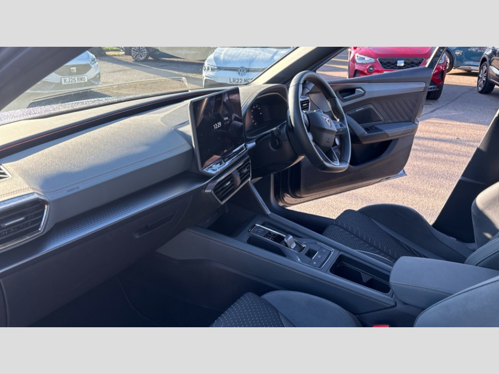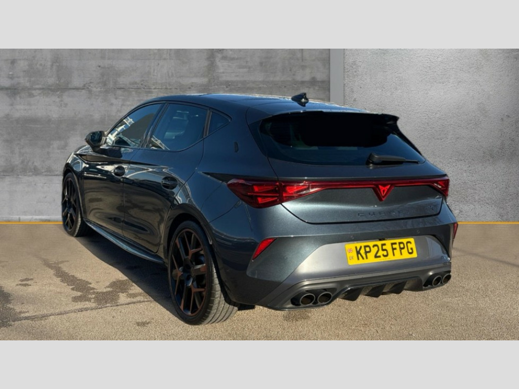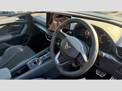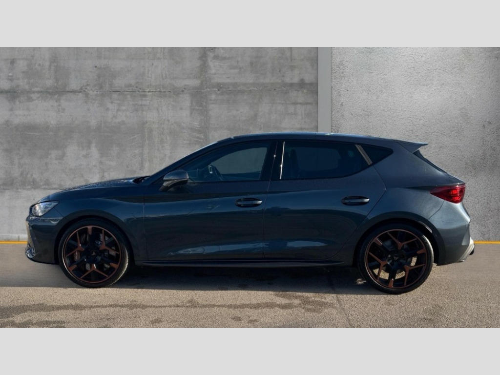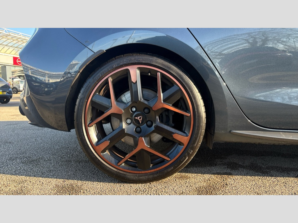 Cupra Leon 2.0 TSI 300 VZ3 5dr DSG Adaptive cruise control with follow-to-stop and speed limiter, CUPRA drive profile selection with (Comfort/Sport/Individual), throttle response and gearshift mode, Digital cockpit, Dynamic road sign display, E-call, Four x USB Type C ports (2 in front and 2 in rear), Front and rear parking sensors, Front assist with forward collision warning braking reaction to vehicles, pedestrians and cyclists, Full link smartphone integration with Mirror Link, wireless Apple CarPlay and wired Google Android Auto, Intelligent park assist, Lane change assist with emergency assist, Lockable tailgate, Rear view camera, RPM, trip computer, outside temp gauge, instrument light brightness, low fuel warning light, lights on reminder, gearshift indicator, Service interval indicator, Side and exit assist, Start/stop system with regenerative braking, Wireless phone charger, Auxiliary input socket, Immersive by Sennheiser TM - 10 speakers, 1 central speaker, 1 subwoofer, Auto dimming rear view mirror, Body colour door handles, Body coloured bumpers, Cupra sports bumpers, Dark tinted rear windows, Electric front/rear windows, Electrically adjustable, heated and folding door mirrors, High beam assist, LED front fog lamps with cornering function, LED rear fog lamp, Matrix LED Headlights with variable light distribution, Matrix Beam and Dynamic headlight range control, Rain sensing wipers, Rear side wing doors, Rear wash/wipe, Separate daytime running light with automatic headlight control and coming home feature, Third brake light, Welcome light with logo projector in door mirrors, 12v power supply in centre console, 3 seat bench in 2nd row, 5 headrests, 60/40 split rear bench seat with armrest, Ambient lighting (glovebox, footwell, ambient lighting multicoloured), Black headlining, Cupra sports pedals, CUPRA Supersports, heated steering wheel with satellite buttons, Electrically adjustable driver seat and lumbar support with memory function + manually adjustable passenger seat, Folding boot cover, Front and rear reading lights X 4, Front centre armrest, Heated front seats, Height/reach adjust steering wheel, Illuminated interior front door sills, Interior wraparound lighting, ISOFIX points in outer rear seats with top tether anchorage points, Single front passenger seat, Sunvisors with illuminated mirror, Textile cloth upholstery, Three zone climate control, Dynamic and comfort pack - Leon Cupra, Media system plus with 12.9" display + navigation pack - Leon Cupra, 3 point seatbelts on all rear seats, ABS, Akebono performance brake calipers, Brake control system - ESC and brake booster, Child proof door locks, Driver and front passenger airbags with front passenger airbag de-activation, front side and curtain airbags, Electronic parking brake, Hill hold control, Pre-crash front and rear seat belt tensioner, window closure and hazard lights, Rear disc brakes, Seat belt reminder for front and rear seats, Tiredness recognition system, Tyre pressure monitoring system, Anti theft alarm system with interior monitoring in cab, backup horn and towing protection, KESSY Advanced - Keyless start, keyless entry, Locking wheel bolts, Chrome and copper interior detailing, 19" Hailstorm forged machined R black and copper alloy wheel with 91Y tyres, Breakdown kit, Tool kit