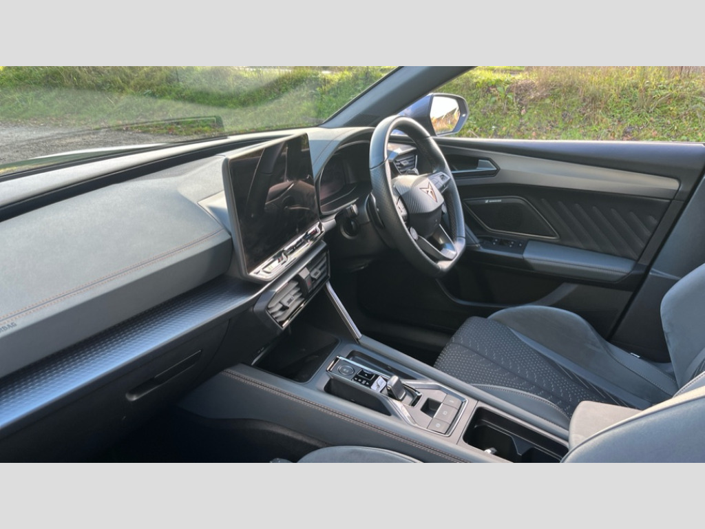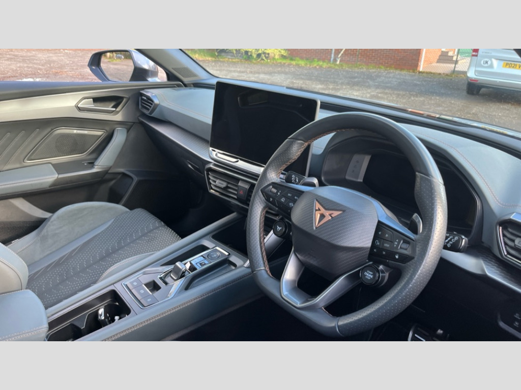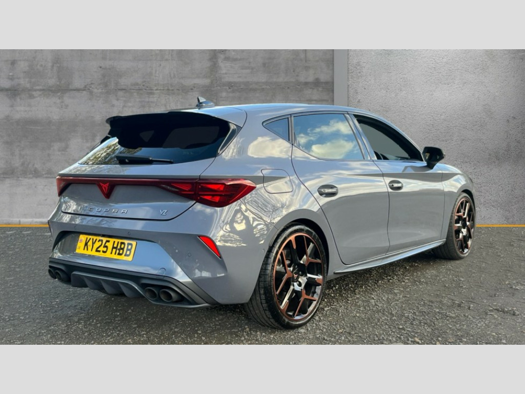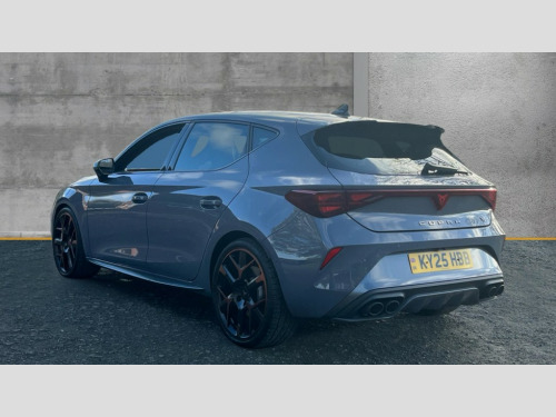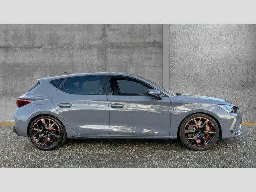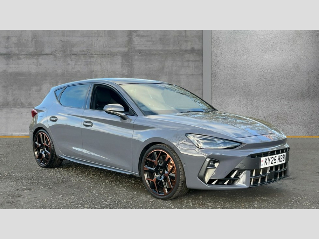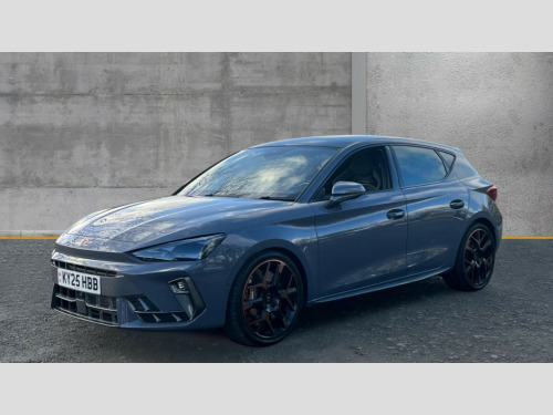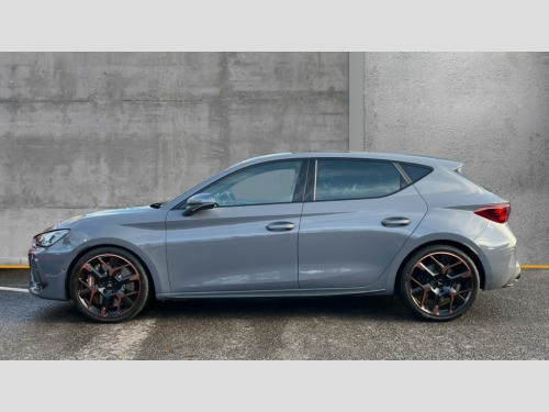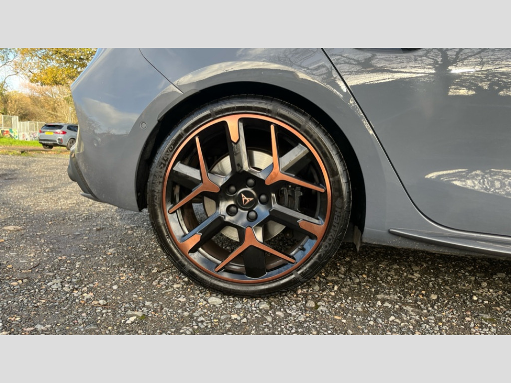 Cupra Leon 2.0 TSI 300 VZ3 5dr DSG Adaptive cruise control with follow-to-stop and speed limiter, CUPRA drive profile selection with (Comfort/Sport/Individual), throttle response and gearshift mode, Digital cockpit, Dynamic road sign display, E-call, Four x USB Type C ports (2 in front and 2 in rear), Front and rear parking sensors, Front assist with forward collision warning braking reaction to vehicles, pedestrians and cyclists, Full link smartphone integration with Mirror Link, wireless Apple CarPlay and wired Google Android Auto, Intelligent park assist, Lane change assist with emergency assist, Lockable tailgate, Rear view camera, RPM, trip computer, outside temp gauge, instrument light brightness, low fuel warning light, lights on reminder, gearshift indicator, Service interval indicator, Side and exit assist, Start/stop system with regenerative braking, Wireless phone charger, Auxiliary input socket, Immersive by Sennheiser TM - 10 speakers, 1 central speaker, 1 subwoofer, Auto dimming rear view mirror, Body colour door handles, Body coloured bumpers, Cupra sports bumpers, Dark tinted rear windows, Electric front/rear windows, Electrically adjustable, heated and folding door mirrors, High beam assist, LED front fog lamps with cornering function, LED rear fog lamp, Matrix LED Headlights with variable light distribution, Matrix Beam and Dynamic headlight range control, Rain sensing wipers, Rear side wing doors, Rear wash/wipe, Separate daytime running light with automatic headlight control and coming home feature, Third brake light, Welcome light with logo projector in door mirrors, 12v power supply in centre console, 3 seat bench in 2nd row, 5 headrests, 60/40 split rear bench seat with armrest, Ambient lighting (glovebox, footwell, ambient lighting multicoloured), Black headlining, Cupra sports pedals, CUPRA Supersports, heated steering wheel with satellite buttons, Electrically adjustable driver seat and lumbar support with memory function + manually adjustable passenger seat, Folding boot cover, Front and rear reading lights X 4, Front centre armrest, Heated front seats, Height/reach adjust steering wheel, Illuminated interior front door sills, Interior wraparound lighting, ISOFIX points in outer rear seats with top tether anchorage points, Single front passenger seat, Sunvisors with illuminated mirror, Textile cloth upholstery, Three zone climate control, Dynamic and comfort pack - Leon Cupra, Media system plus with 12.9" display + navigation pack - Leon Cupra, 3 point seatbelts on all rear seats, ABS, Akebono performance brake calipers, Brake control system - ESC and brake booster, Child proof door locks, Driver and front passenger airbags with front passenger airbag de-activation, front side and curtain airbags, Electronic parking brake, Hill hold control, Pre-crash front and rear seat belt tensioner, window closure and hazard lights, Rear disc brakes, Seat belt reminder for front and rear seats, Tiredness recognition system, Tyre pressure monitoring system, Anti theft alarm system with interior monitoring in cab, backup horn and towing protection, KESSY Advanced - Keyless start, keyless entry, Locking wheel bolts, Chrome and copper interior detailing, 19" Hailstorm forged machined R black and copper alloy wheel with 91Y tyres, Breakdown kit, Tool kit