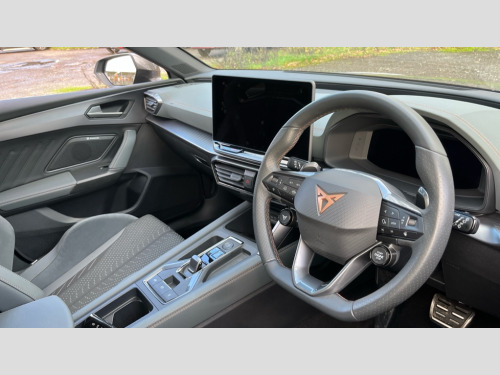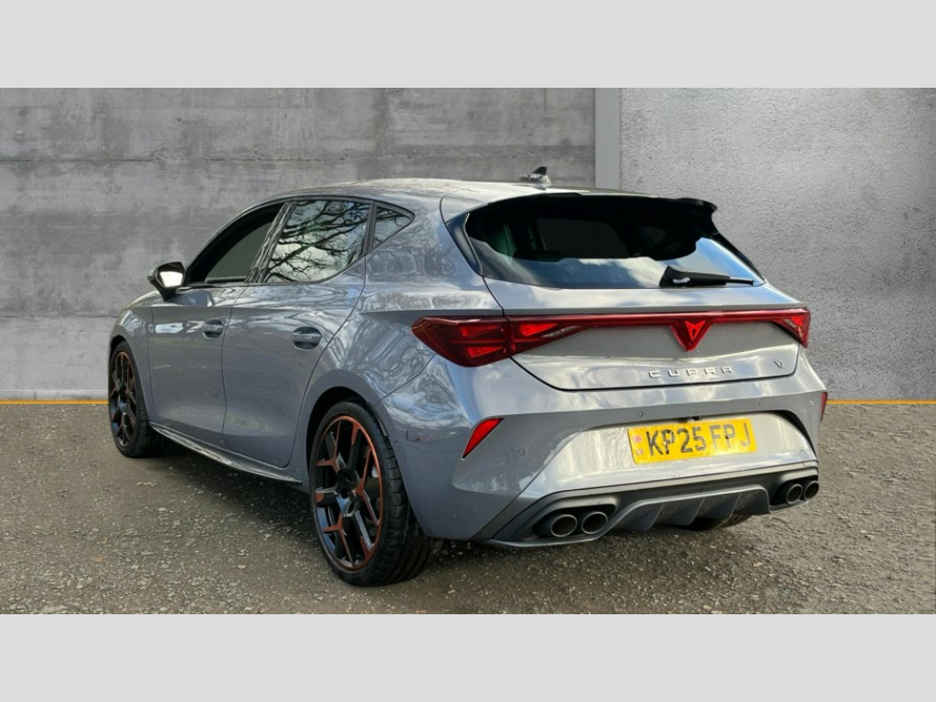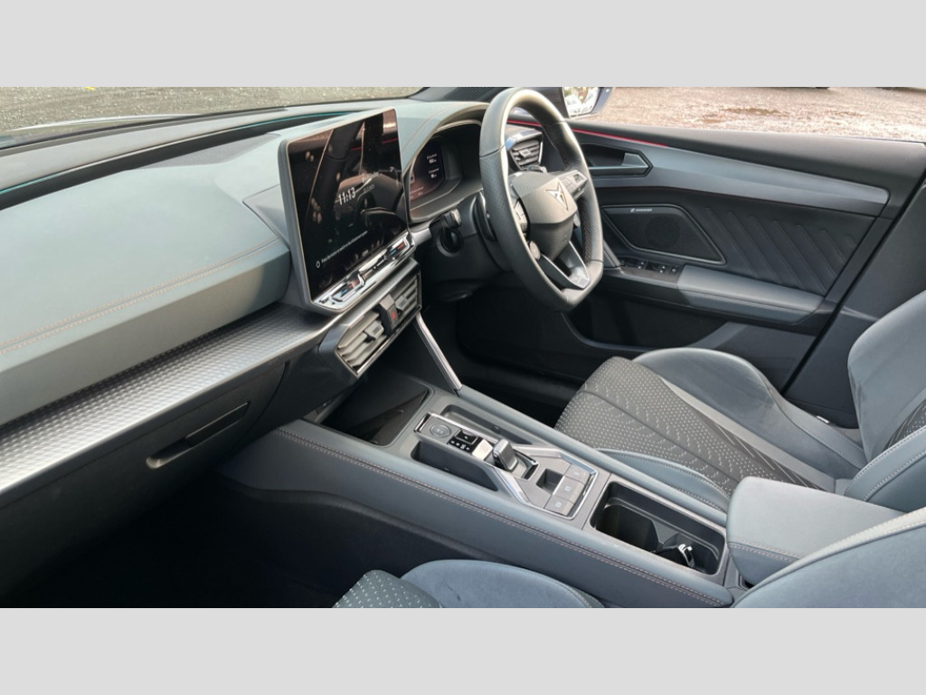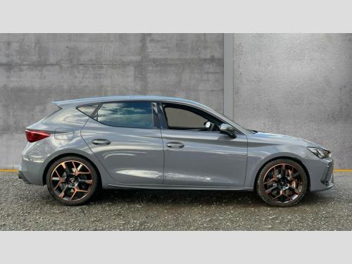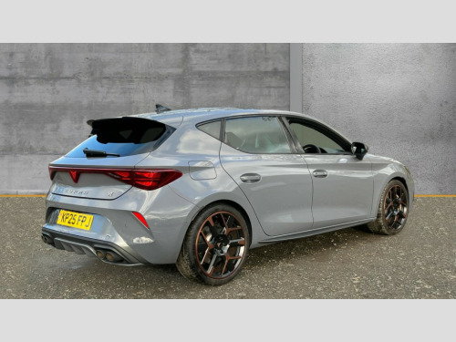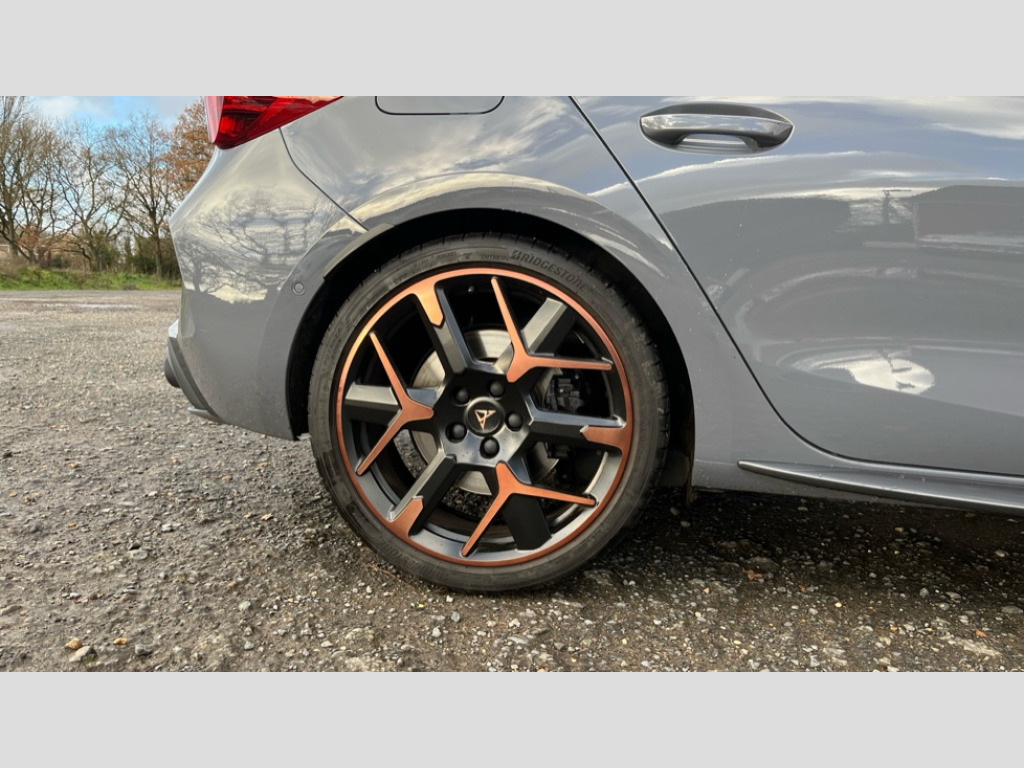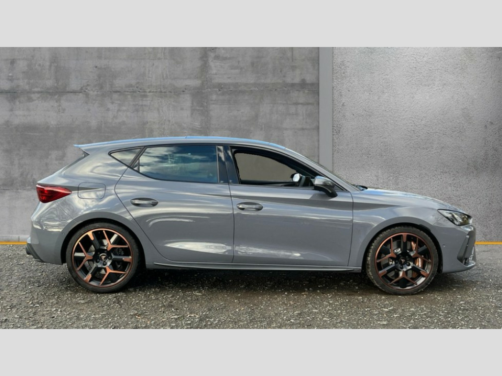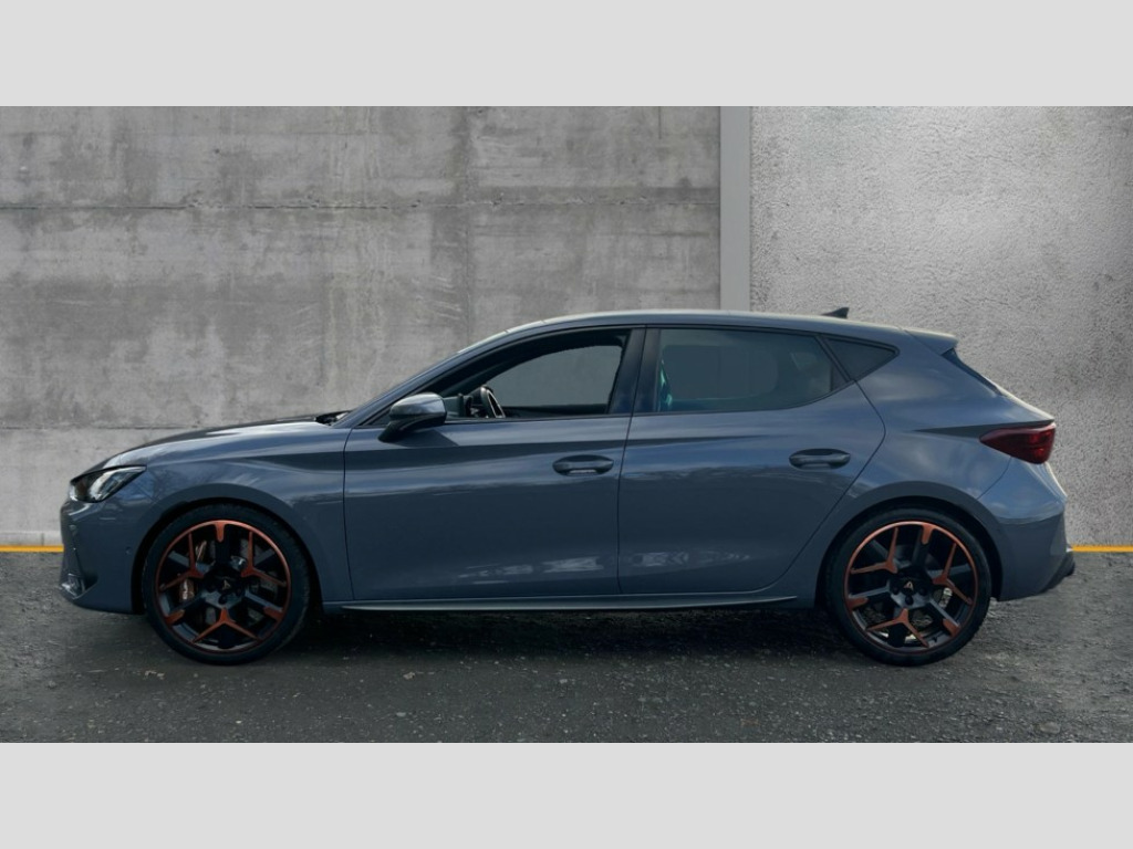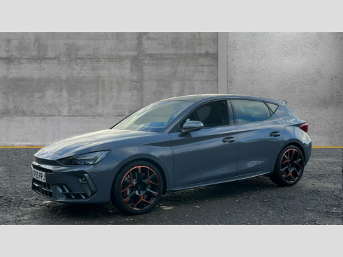 Cupra Leon 2.0 TSI 300 VZ3 5dr DSG Adaptive cruise control with follow-to-stop and speed limiter, CUPRA drive profile selection with (Comfort/Sport/Individual), throttle response and gearshift mode, Digital cockpit, Dynamic road sign display, E-call, Four x USB Type C ports (2 in front and 2 in rear), Front and rear parking sensors, Front assist with forward collision warning braking reaction to vehicles, pedestrians and cyclists, Full link smartphone integration with Mirror Link, wireless Apple CarPlay and wired Google Android Auto, Intelligent park assist, Lane change assist with emergency assist, Lockable tailgate, Rear view camera, RPM, trip computer, outside temp gauge, instrument light brightness, low fuel warning light, lights on reminder, gearshift indicator, Service interval indicator, Side and exit assist, Start/stop system with regenerative braking, Wireless phone charger, Auxiliary input socket, Immersive by Sennheiser TM - 10 speakers, 1 central speaker, 1 subwoofer, Auto dimming rear view mirror, Body colour door handles, Body coloured bumpers, Cupra sports bumpers, Dark tinted rear windows, Electric front/rear windows, Electrically adjustable, heated and folding door mirrors, High beam assist, LED front fog lamps with cornering function, LED rear fog lamp, Matrix LED Headlights with variable light distribution, Matrix Beam and Dynamic headlight range control, Rain sensing wipers, Rear side wing doors, Rear wash/wipe, Separate daytime running light with automatic headlight control and coming home feature, Third brake light, Welcome light with logo projector in door mirrors, 12v power supply in centre console, 3 seat bench in 2nd row, 5 headrests, 60/40 split rear bench seat with armrest, Ambient lighting (glovebox, footwell, ambient lighting multicoloured), Black headlining, Cupra sports pedals, CUPRA Supersports, heated steering wheel with satellite buttons, Electrically adjustable driver seat and lumbar support with memory function + manually adjustable passenger seat, Folding boot cover, Front and rear reading lights X 4, Front centre armrest, Heated front seats, Height/reach adjust steering wheel, Illuminated interior front door sills, Interior wraparound lighting, ISOFIX points in outer rear seats with top tether anchorage points, Single front passenger seat, Sunvisors with illuminated mirror, Textile cloth upholstery, Three zone climate control, Dynamic and comfort pack - Leon Cupra, Media system plus with 12.9" display + navigation pack - Leon Cupra, 3 point seatbelts on all rear seats, ABS, Akebono performance brake calipers, Brake control system - ESC and brake booster, Child proof door locks, Driver and front passenger airbags with front passenger airbag de-activation, front side and curtain airbags, Electronic parking brake, Hill hold control, Pre-crash front and rear seat belt tensioner, window closure and hazard lights, Rear disc brakes, Seat belt reminder for front and rear seats, Tiredness recognition system, Tyre pressure monitoring system, Anti theft alarm system with interior monitoring in cab, backup horn and towing protection, KESSY Advanced - Keyless start, keyless entry, Locking wheel bolts, Chrome and copper interior detailing, 19" Hailstorm forged machined R black and copper alloy wheel with 91Y tyres, Breakdown kit, Tool kit
