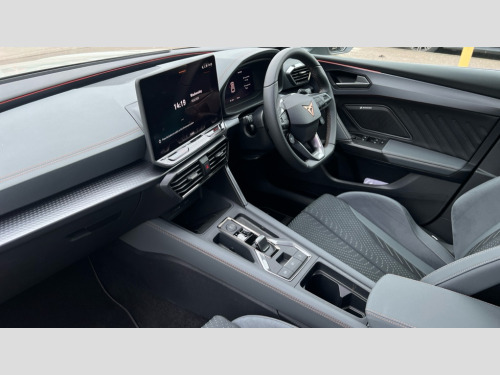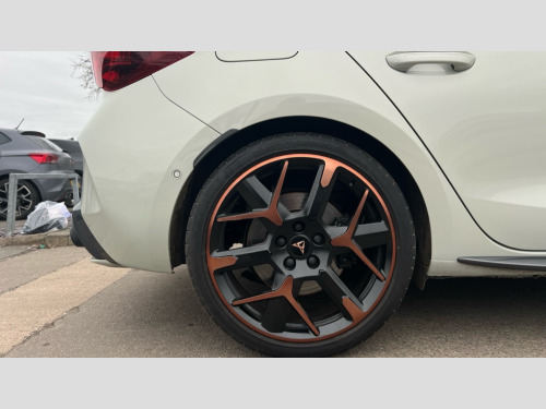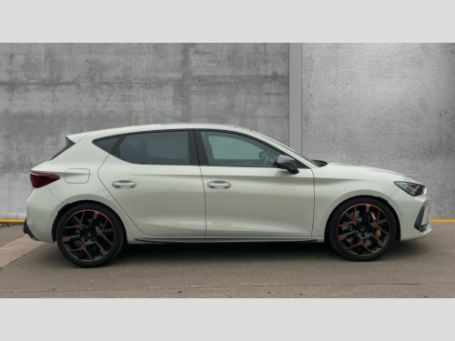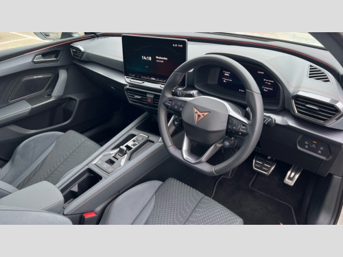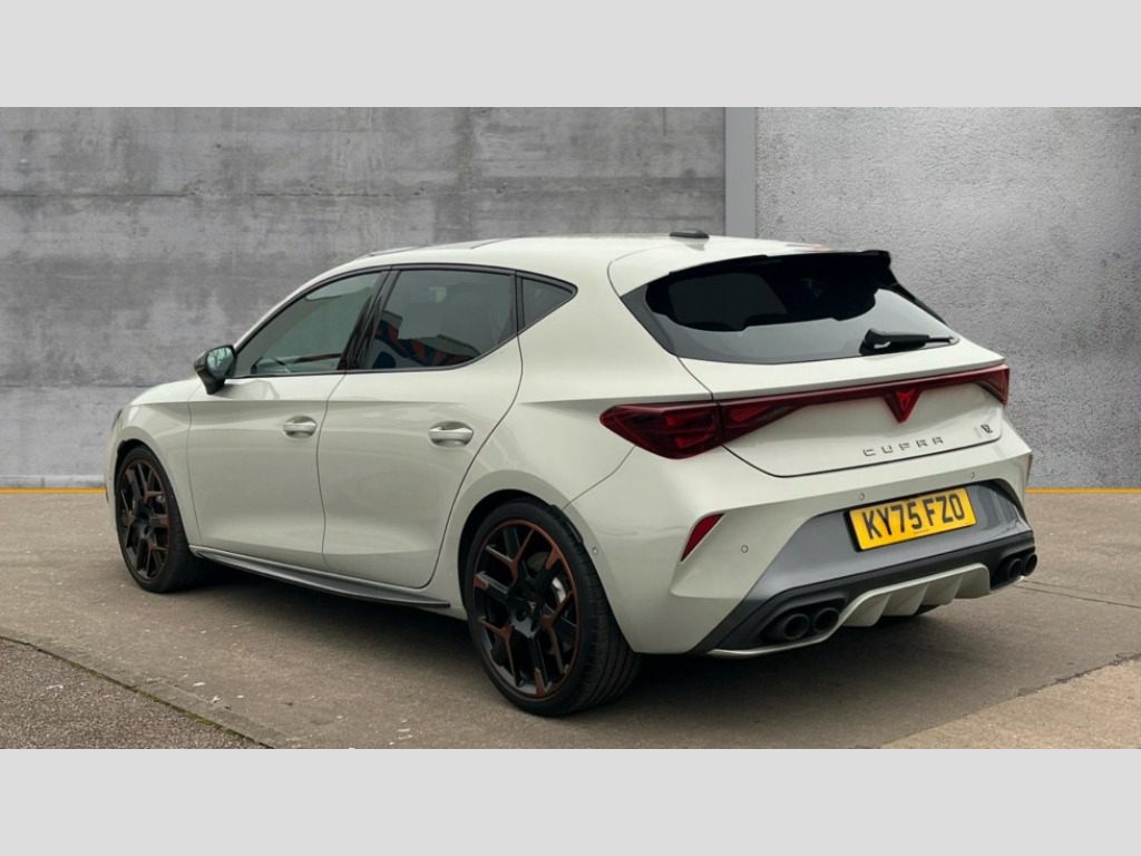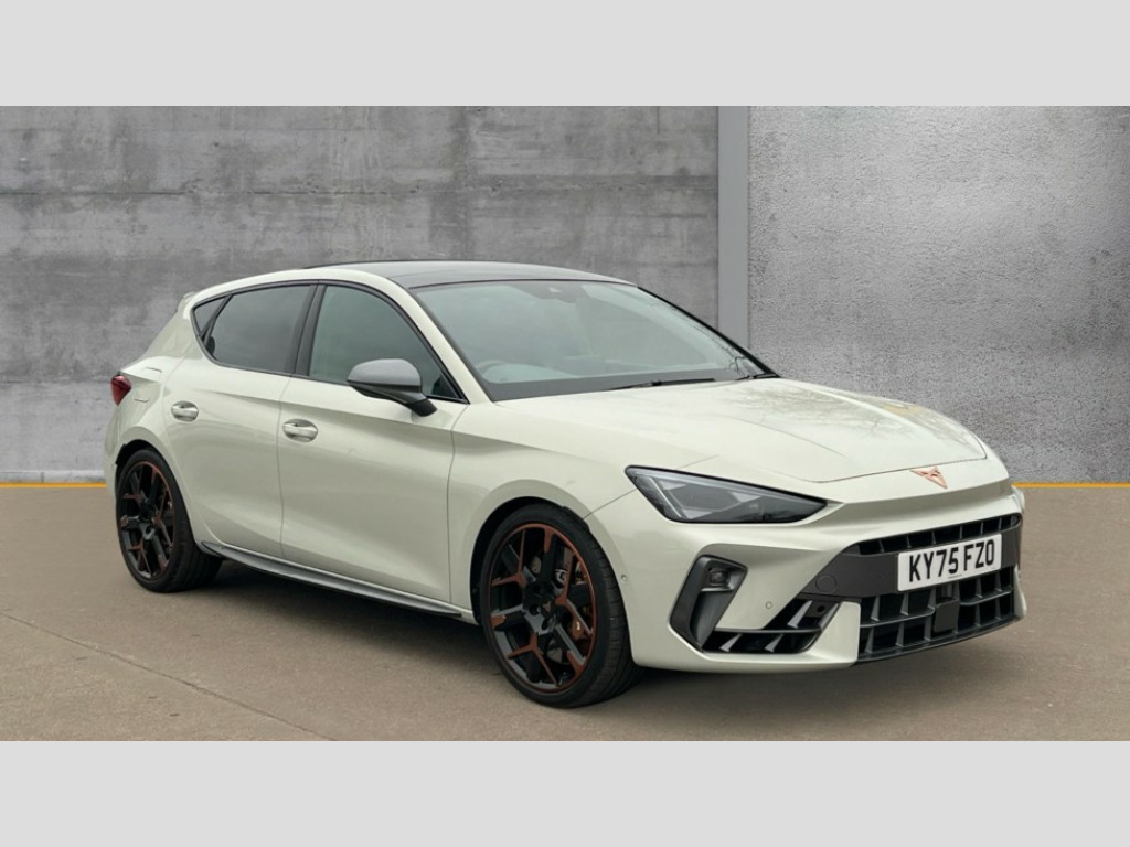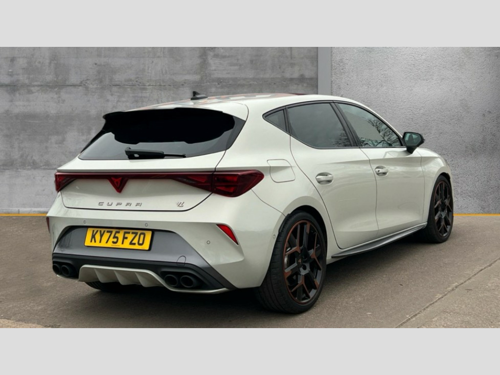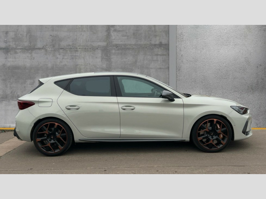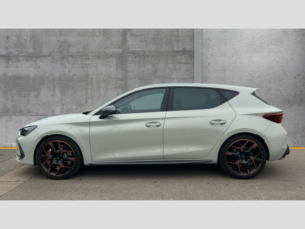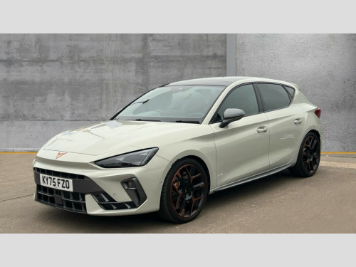 Cupra Leon 2.0 TSI 300 VZ3 5dr DSG Adaptive cruise control with follow-to-stop and speed limiter, CUPRA mode drive profile selection with throttle response and gearshift mode, Digital cockpit, Driver alert system with driver monitoring, Dynamic road sign display, E-call, Front and rear parking sensors, Front assist with forward collision warning braking reaction to vehicles, pedestrians and cyclists, Front cross traffic assist, Full link smartphone integration with Mirror Link, wireless Apple CarPlay and wired Google Android Auto, Intelligent park assist, Lane change assist with emergency assist, Lockable tailgate, Rear view camera, RPM, trip computer, outside temp gauge, instrument light brightness, low fuel warning light, lights on reminder, gearshift indicator, Service interval indicator, Side and exit assist, Start/stop system with regenerative braking, Wireless phone charger, Auxiliary input socket, Immersive by Sennheiser TM - 10 speakers, 1 central speaker, 1 subwoofer, Auto dimming rear view mirror, Black roof spoiler, Body colour door handles, Body coloured bumpers, Cupra matrix LED ultra headlight with variable light distribution, high definition LED w/signature w/ceremony, Cupra side skirts painted in obsidian black, Cupra sports bumpers, Dark tinted rear windows, Electric front/rear windows, Electrically adjustable, heated and folding door mirrors, High beam assist, High-resolution matrix beam plus digital projection, LED front fog lamps with cornering function, LED rear fog lamp, Rain sensing wipers, Rear diffuser with twin oval exhaust pipe on each side, Rear side wing doors, Rear wash/wipe, Separate daytime running light with automatic headlight control and coming home feature, Third brake light, Welcome light with logo projector in door mirrors, 12v power supply in centre console, 3 seat bench in 2nd row, 5 headrests, 60/40 split rear bench seat with armrest, Ambient lighting (glovebox, footwell, ambient lighting multicoloured), Black headlining, Cupra sports pedals, CUPRA Supersports, heated steering wheel with satellite buttons, Electrically adjustable driver seat and lumbar support with memory function + manually adjustable passenger seat, Folding boot cover, Four x USB Type C ports (2 in front and 2 in rear), Front and rear reading lights X 4, Front centre armrest, Heated front seats, Height/reach adjust steering wheel, Illuminated interior front door sills, Interior wraparound lighting, ISOFIX points in outer rear seats with top tether anchorage points, Single front passenger seat, Sunvisors with illuminated mirror, Textile cloth upholstery, Three zone climate control, Dynamic and comfort pack - Leon Cupra, Media system plus with 12.9" display + navigation pack - Leon Cupra, 3 point seatbelts on all rear seats, ABS, Akebono performance brake calipers, Brake control system - ESC and brake booster, Child proof door locks, Disc brakes in front, Driver and front passenger airbags with front passenger airbag de-activation, front side and curtain airbags, Electronic parking brake, Hill hold control, Knee airbags, Pre-crash front and rear seat belt tensioner, window closure and hazard lights, Rear disc brakes, Seat belt reminder for front and rear seats, Tiredness recognition system, Tyre pressure monitoring system, Anti theft alarm system with interior monitoring in cab, backup horn and towing protection, KESSY Advanced - Keyless start, keyless entry, Locking wheel bolts, Dark chrome interior detailing, 19" Hailstorm forged machined R black and copper alloy wheel with 91Y tyres, Breakdown kit, Tool kit