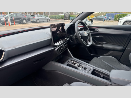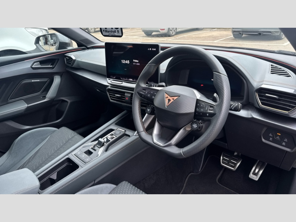 Cupra Leon 2.0 TSI 333 VZ3 5dr DSG 4Drive Adaptive cruise control with follow-to-stop and speed limiter, CUPRA drive profile selection with (Comfort/Sport/Individual), throttle response and gearshift mode, Digital cockpit, Dynamic road sign display, E-call, Four x USB Type C ports (2 in front and 2 in rear), Front and rear parking sensors, Front assist with forward collision warning braking reaction to vehicles, pedestrians and cyclists, Full link smartphone integration with Mirror Link, wireless Apple CarPlay and wired Google Android Auto, Intelligent park assist, Lane change assist with emergency assist, Lockable tailgate, Rear view camera, RPM, trip computer, outside temp gauge, instrument light brightness, low fuel warning light, lights on reminder, gearshift indicator, Service interval indicator, Side and exit assist, Start/stop system with regenerative braking, Virtual pedal with electric tailgate, Wireless phone charger, Auxiliary input socket, Immersive by Sennheiser TM - 10 speakers, 1 central speaker, 1 subwoofer, Auto dimming rear view mirror, Body colour door handles, Body coloured bumpers, Cupra sports bumpers, Dark tinted rear windows, Electric front/rear windows, Electrically adjustable, heated and folding door mirrors, Gloss black roof rails, High beam assist, LED front fog lamps with cornering function, LED rear fog lamp, Matrix LED Headlights with variable light distribution, Matrix Beam and Dynamic headlight range control, Rain sensing wipers, Rear side wing doors, Rear wash/wipe, Separate daytime running light with automatic headlight control and coming home feature, Third brake light, Welcome light with logo projector in door mirrors, 12v power supply in centre console, 3 seat bench in 2nd row, 5 headrests, 60/40 split rear bench seat with armrest, Ambient lighting (glovebox, footwell, ambient lighting multicoloured), Black headlining, Cupra sports pedals, CUPRA Supersports, heated steering wheel with satellite buttons, Electrically adjustable driver seat and lumbar support with memory function + manually adjustable passenger seat, Front and rear reading lights X 4, Front centre armrest, Heated front seats, Height/reach adjust steering wheel, Illuminated interior front door sills, Interior wraparound lighting, ISOFIX points in outer rear seats with top tether anchorage points, Single front passenger seat, Sliding boot cover, Sunvisors with illuminated mirror, Textile cloth upholstery, Three zone climate control, Dynamic and comfort pack - Leon Cupra, Media system plus with 12.9" display + navigation pack - Leon Cupra, 3 point seatbelts on all rear seats, ABS, Akebono performance brake calipers, Brake control system - ESC and brake booster, Child proof door locks, Driver and front passenger airbags with front passenger airbag de-activation, front side and curtain airbags, Electronic parking brake, Hill hold control, Pre-crash front and rear seat belt tensioner, window closure and hazard lights, Rear disc brakes, Seat belt reminder for front and rear seats, Tiredness recognition system, Tyre pressure monitoring system, Anti theft alarm system with interior monitoring in cab, backup horn and towing protection, KESSY Advanced - Keyless start, keyless entry, Locking wheel bolts, Chrome and copper interior detailing, 19" Hailstorm forged machined R black and copper alloy wheel with 91Y tyres, Breakdown kit, Tool kit