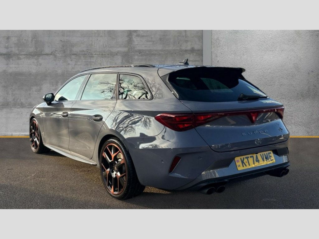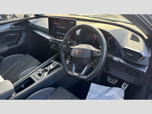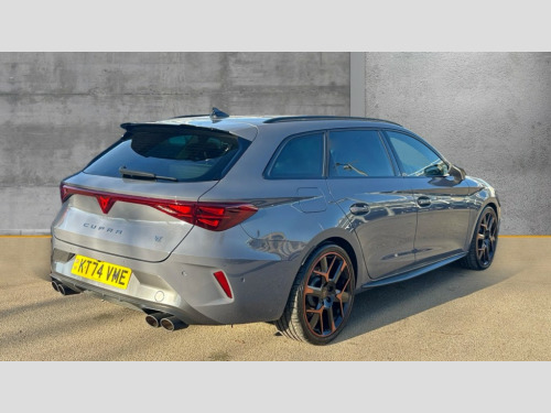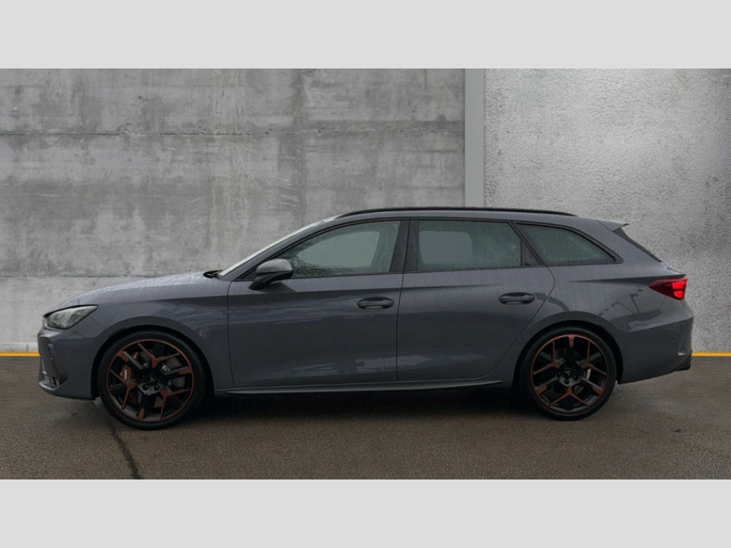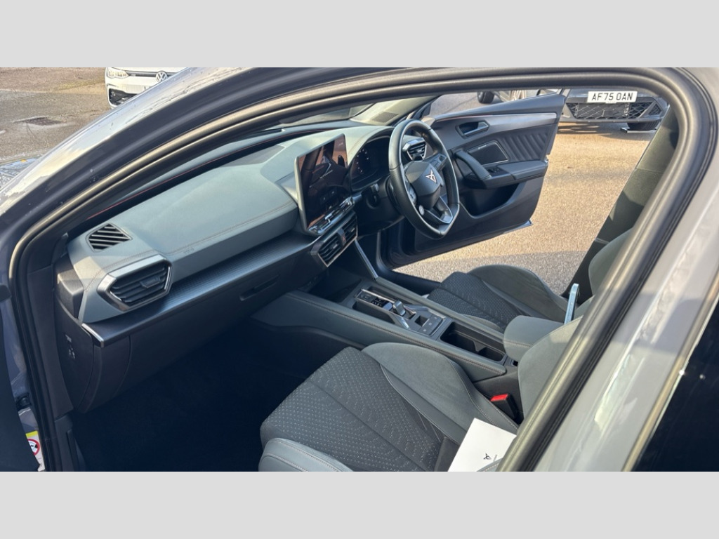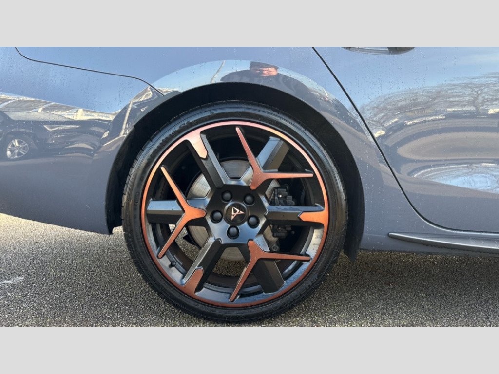 Cupra Leon 2.0 TSI 333 VZ3 5dr DSG 4Drive Adaptive cruise control with follow-to-stop and speed limiter, CUPRA drive profile selection with (Comfort/Sport/Individual), throttle response and gearshift mode, Digital cockpit, Dynamic road sign display, E-call, Four x USB Type C ports (2 in front and 2 in rear), Front and rear parking sensors, Front assist with forward collision warning braking reaction to vehicles, pedestrians and cyclists, Full link smartphone integration with Mirror Link, wireless Apple CarPlay and wired Google Android Auto, Intelligent park assist, Lane change assist with emergency assist, Lockable tailgate, Rear view camera, RPM, trip computer, outside temp gauge, instrument light brightness, low fuel warning light, lights on reminder, gearshift indicator, Service interval indicator, Side and exit assist, Start/stop system with regenerative braking, Virtual pedal with electric tailgate, Wireless phone charger, Auxiliary input socket, Immersive by Sennheiser TM - 10 speakers, 1 central speaker, 1 subwoofer, Auto dimming rear view mirror, Body colour door handles, Body coloured bumpers, Cupra sports bumpers, Dark tinted rear windows, Electric front/rear windows, Electrically adjustable, heated and folding door mirrors, Gloss black roof rails, High beam assist, LED front fog lamps with cornering function, LED rear fog lamp, Matrix LED Headlights with variable light distribution, Matrix Beam and Dynamic headlight range control, Rain sensing wipers, Rear side wing doors, Rear wash/wipe, Separate daytime running light with automatic headlight control and coming home feature, Third brake light, Welcome light with logo projector in door mirrors, 12v power supply in centre console, 3 seat bench in 2nd row, 5 headrests, 60/40 split rear bench seat with armrest, Ambient lighting (glovebox, footwell, ambient lighting multicoloured), Black headlining, Cupra sports pedals, CUPRA Supersports, heated steering wheel with satellite buttons, Electrically adjustable driver seat and lumbar support with memory function + manually adjustable passenger seat, Front and rear reading lights X 4, Front centre armrest, Heated front seats, Height/reach adjust steering wheel, Illuminated interior front door sills, Interior wraparound lighting, ISOFIX points in outer rear seats with top tether anchorage points, Single front passenger seat, Sliding boot cover, Sunvisors with illuminated mirror, Textile cloth upholstery, Three zone climate control, Dynamic and comfort pack - Leon Cupra, Media system plus with 12.9" display + navigation pack - Leon Cupra, 3 point seatbelts on all rear seats, ABS, Akebono performance brake calipers, Brake control system - ESC and brake booster, Child proof door locks, Driver and front passenger airbags with front passenger airbag de-activation, front side and curtain airbags, Electronic parking brake, Hill hold control, Pre-crash front and rear seat belt tensioner, window closure and hazard lights, Rear disc brakes, Seat belt reminder for front and rear seats, Tiredness recognition system, Tyre pressure monitoring system, Anti theft alarm system with interior monitoring in cab, backup horn and towing protection, KESSY Advanced - Keyless start, keyless entry, Locking wheel bolts, Chrome and copper interior detailing, 19" Hailstorm forged machined R black and copper alloy wheel with 91Y tyres, Breakdown kit, Tool kit