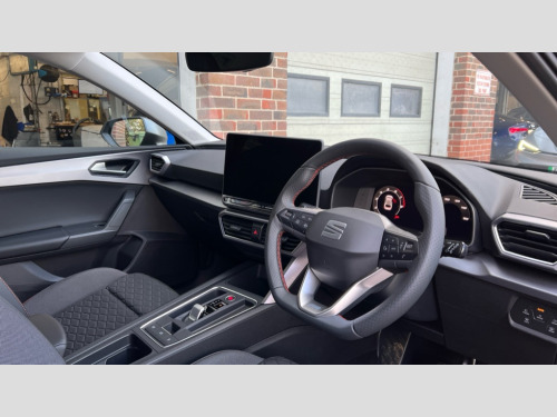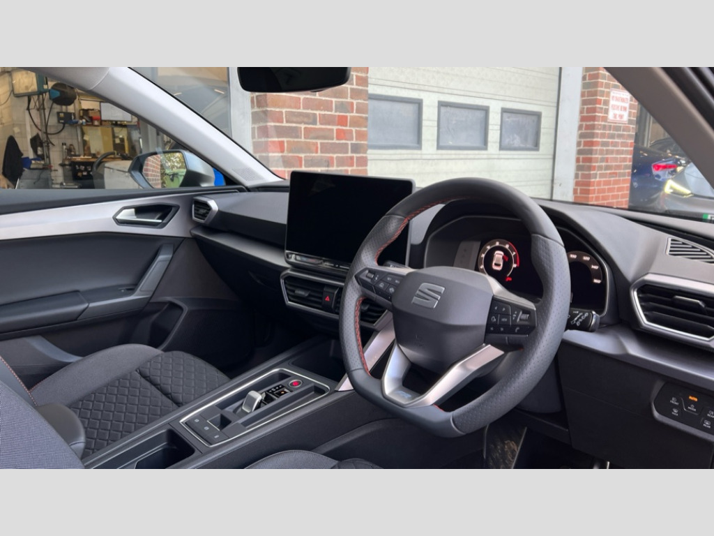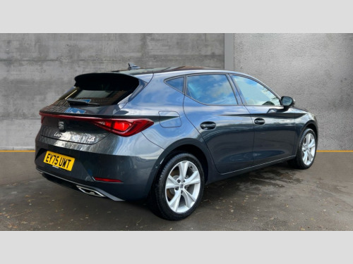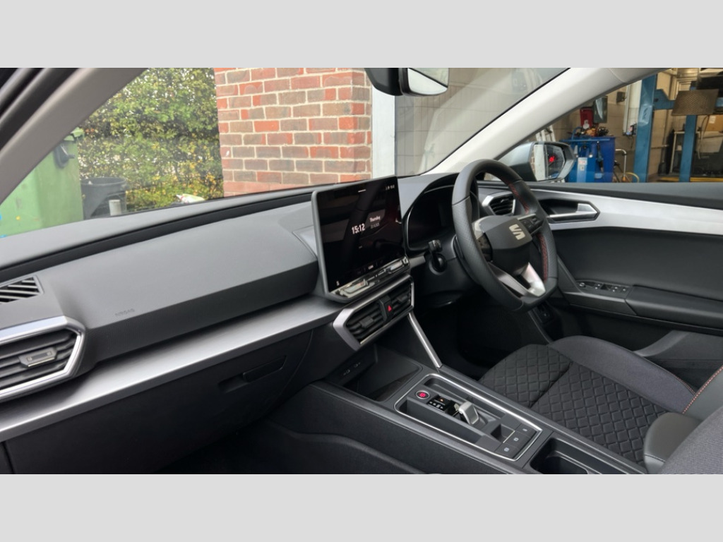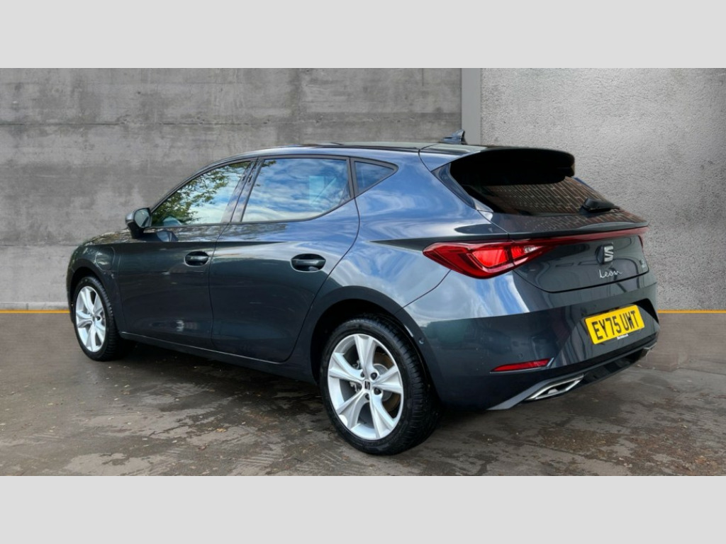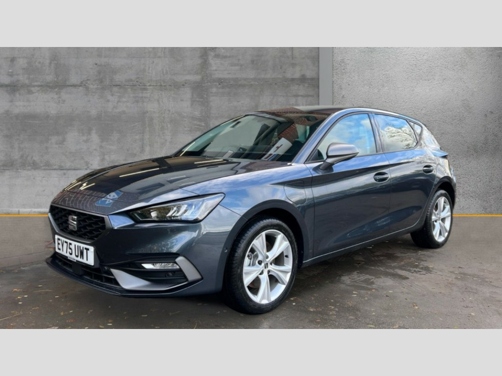 Seat Leon 1.5 e-Hybrid FR 5dr DSG [DAP] Digital cockpit with multifunction display, Driver attention alert with drowsiness warning, E-call, Front assist with forward collision warning braking reaction to vehicles, pedestrians and cyclists, Full link smartphone integration with Mirror Link, wireless Apple CarPlay and wired Google Android Auto, Intelligent speed assist, Lane assist, Lockable tailgate, Park assist (inc front/rear parking sensors), Power assisted speed sensitive electro-mechanical steering, Rear view camera, RPM, trip computer, outside temp gauge, instrument light brightness, low fuel warning light, lights on reminder, gearshift indicator, SEAT drive profile with 4 modes (Eco/Normal/Sport/Individual), throttle response and gearshift mode, Service interval indicator, Start/stop system with regenerative braking, 10 amp mode 2 charging cable, 16 amp mode 3 charging cable, XDS electronic differential lock and dynamic traction support, 2 front and 2 rear USB-C ports, Auxiliary input socket, Auto dimming rear view mirror, Body colour door handles, Body coloured bumpers, Cosmo grey exterior mirrors with integrated LED indicators, Dark tinted rear windows, Dynamic headlight range control, Dynamic turn signal lights, Electric front/rear windows, Electrically adjustable, heated and folding door mirrors, FR sports bumper, Illuminated front door sill, LED front fog lamps, LED headlights and LED infinite rear tail lights, LED rear fog lamp with rear coast to coast light, Rear side wing doors, Rear wash/wipe, Separate daytime running light with automatic headlight control and coming home feature, Third brake light, Welcome light silhouette from exterior mirrors, Windshield wiper intermittent control with light/rain sensor, 12v power point in centre console, 3 seat bench in 2nd row, 60/40 split rear bench seat with armrest, Ambient lighting with glovebox, footwell and single monocolour, Driver/passenger manual seat height adjustment, Dust/pollen filter, Folding boot cover, Front and rear height adjustable headrests, Front and rear reading lights X 4, Front centre armrest, Front seatback storage pockets, Grey headlining, Height/reach adjust steering wheel, ISOFIX points in outer rear seats with top tether anchorage points, Luggage tie-down hooks, Lumbar adjustment for front seats, Single front passenger seat, Sunvisors with covered illuminated mirror, Three zone climate control, Two tone cloth upholstery, Media system plus with navigation - Leon, 3 point seatbelts on all rear seats, ABS, Brake control system - ESC and brake booster, Child proof door locks, Driver and front passenger airbags with front passenger airbag de-activation, front side and curtain airbags, Electronic parking brake, Extended safety system - seat belt tensioner, window closure and hazard lights, Hill hold control, Rear disc brakes, Seat belt reminder for front and rear seats, Tyre pressure monitoring system, Anti theft alarm system with interior monitoring in cab, backup horn and towing protection, KESSY Go (Keyless start), Locking wheel bolts, Wireless phone charging, Chrome interior detailing, 17" Dynamic Bi-spoke alloy wheels with 91W tyres, Emergency tyre repair kit, Tool kit without jack
