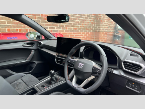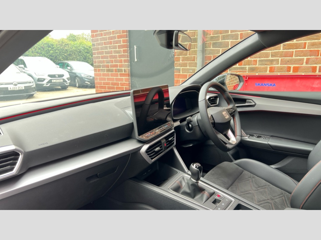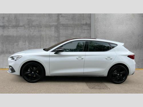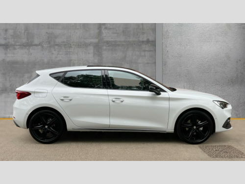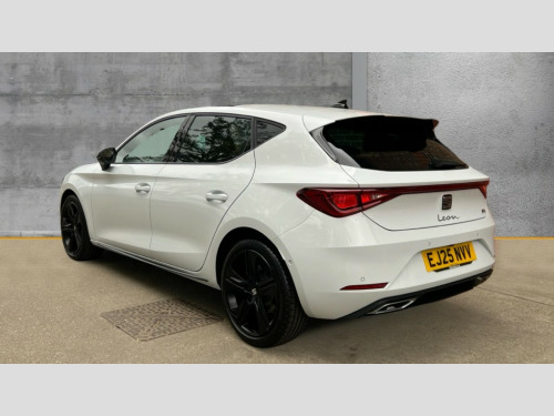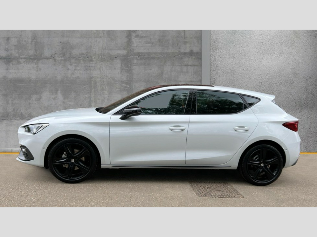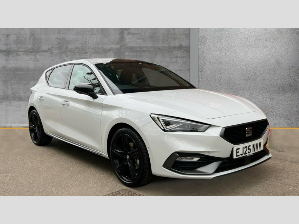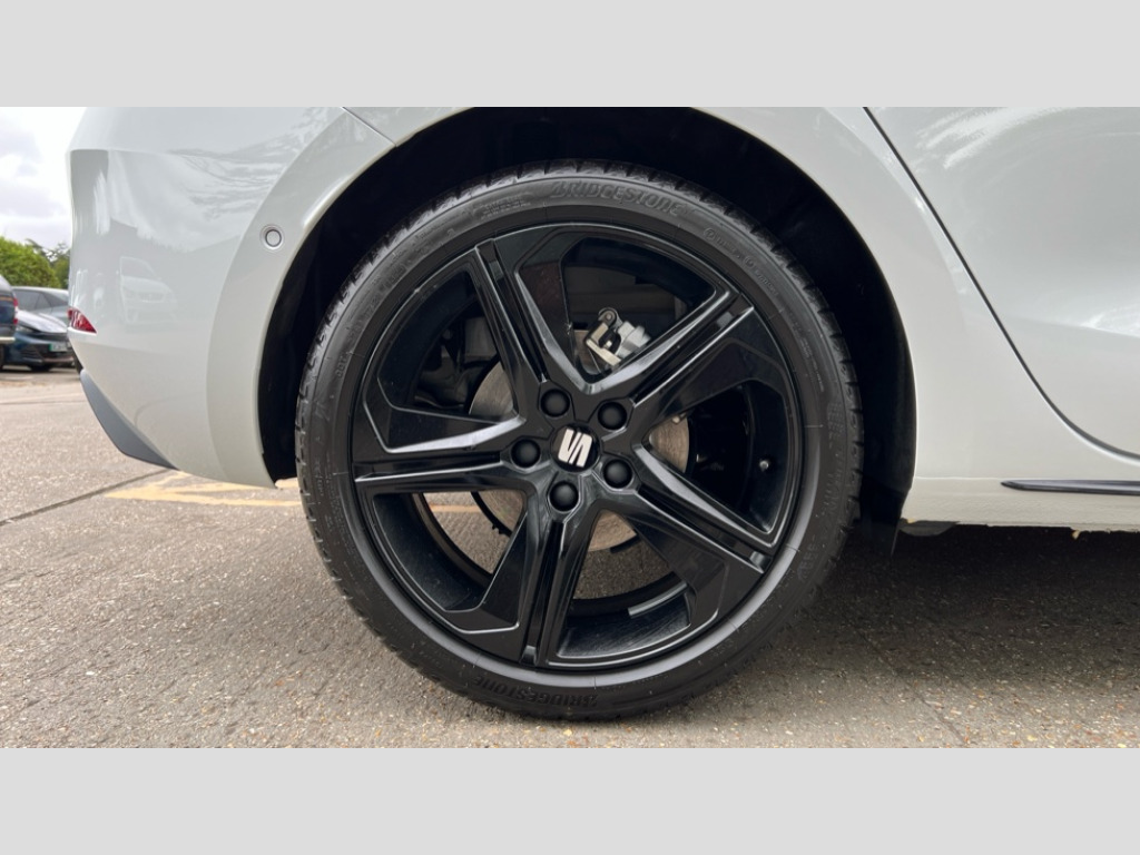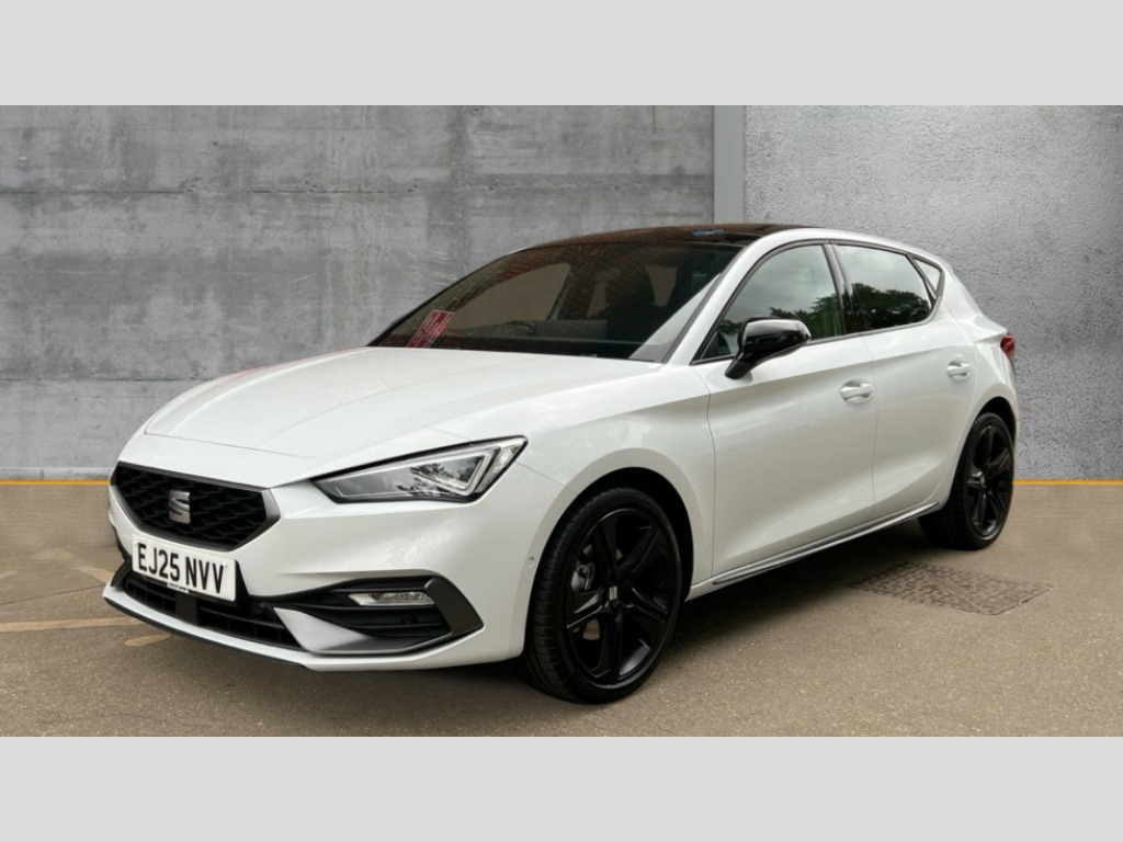 Seat Leon 1.5 TSI 150 FR Black Edition 5dr [DAP] Digital cockpit with multifunction display, Driver attention alert with drowsiness warning, E-call, Front assist with forward collision warning braking reaction to vehicles, pedestrians and cyclists, Full link smartphone integration with Mirror Link, wireless Apple CarPlay and wired Google Android Auto, Intelligent speed assist, Lane assist, Lockable tailgate, Park assist (inc front/rear parking sensors), Power assisted speed sensitive electro-mechanical steering, Rear view camera, RPM, trip computer, outside temp gauge, instrument light brightness, low fuel warning light, lights on reminder, gearshift indicator, SEAT drive profile with 4 modes (Eco/Normal/Sport/Individual), throttle response, Service interval indicator, Start/stop system with regenerative braking, Sports suspension, XDS electronic differential lock and dynamic traction support, 2 front and 2 rear USB-C ports, Auxiliary input socket, Auto dimming rear view mirror, Black door mirror housings, Black roof spoiler, Black side skirts, Body colour door handles, Body coloured bumpers, Dark tinted rear windows, Door mirror LED indicator lights, Dynamic headlight range control, Electric adjustable/heated/folding door mirrors with memory, Electric front/rear windows, FR sports bumper, Illuminated front door sill, LED front fog lamps, LED rear fog lamp with rear coast to coast light, Matrix LED headlights and beams with variable light distribution, LED rear light and dynamic turn signals, Panoramic sunroof, Rear side wing doors, Rear wash/wipe, Separate daytime running light with automatic headlight control and coming home feature, Third brake light, Welcome light silhouette from exterior mirrors, Windshield wiper intermittent control with light/rain sensor, 12v power point in centre console, 3 seat bench in 2nd row, 60/40 split rear bench seat with armrest, Ambient lighting with glovebox, footwell and single monocolour, Black headlining, Dust/pollen filter, Electric driver lumbar support + passenger manual lumbar support, Folding boot cover, Front and rear height adjustable headrests, Front and rear reading lights X 4, Front centre armrest, Front seatback storage pockets, Heated front seats, Heated leather steering wheel with leather gearstick, Height/reach adjust steering wheel, Interior wraparound lighting (FR), ISOFIX points in outer rear seats with top tether anchorage points, Luggage tie-down hooks, Microsuede cloth upholstery, Power driver seat with memory and manual height adjustable passenger seat, Single front passenger seat, Sunvisors with covered illuminated mirror, Three zone climate control, Media system plus with navigation - Leon, 3 point seatbelts on all rear seats, ABS, Brake control system - ESC and brake booster, Child proof door locks, Driver and front passenger airbags with front passenger airbag de-activation, front side and curtain airbags, Electronic parking brake, Extended safety system - seat belt tensioner, window closure and hazard lights, Hill hold control, Rear disc brakes, Seat belt reminder for front and rear seats, Tyre pressure monitoring system, Anti theft alarm system with interior monitoring in cab, backup horn and towing protection, KESSY Advanced - Keyless start, keyless entry, Locking wheel bolts, Wireless phone charging, Chrome interior detailing, 18" Black alloy wheels, Tool kit without jack