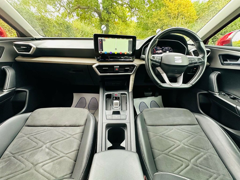 *ULEZ COMPLIANT* HPI CLEAR - FULL SEAT SERVICE HISTORY + JUST SERVICED - IN FANTASTIC CONDITION THROUGHOUT - TWO KEYS - APPLE CAR PLAY - SATELLITE NAVIGATION SYSTEM - DAB RADIO - BLUETOOTH PHONE + AUDIO - GLOSS BLACK ALLOY WHEELS - REVERSING CAMERA - KEYLESS START - LANE ASSIST - WIRELESS PHONE CHARGER - BLACK LEATHER/CLOTH SEATS - HEATED SEATS + STEERING WHEEL - 12 MONTHS AA BREAKDOWN COVER + 3 MONTHS COMPREHENSIVE WARRANTY *FINANCE AVAILABLE* 29/09/2026(NO ADVISORIES), £195-A-YEAR ROAD TAX, MULTI-FUNCTION STEERING CONTROLS, PADDLESHIFT, AUTOMATIC HEADLIGHTS, HEATED WINDOWS, AIR CONDITIONING, CLIMATE CONTROL, USB PORT, ISOFIX REAR POINTS, CRUISE CONTROL, TRIP COMPUTER, CLOTH SEATS, ELECTRIC HEATED + FOLDING MIRRORS, ELECTRIC WINDOWS, PRIVACY GLASS, ROOF RAILS, AUTOMATIC HANDBRAKE, A GENUINE EXAMPLE MAINTAINED REGARDLESS OF COST - ONE FORMER KEEPER + TWO KEYS - ALL ORIGINAL MANUALS IN FOLDER - CALL NOW TO BOOK AN APPOINTMENT!! Wireless Device Charger,Tyre Pressure Monitoring System,Tool Kit,Tiredness Recognition System,Three-Zone Climate Control,Sunvisors with Illuminated Mirrors,Sliding Boot Cover,Seven Speakers,Separate Daytime Running Light with Automatic Headlight Control and Automatic Coming Home Feature,Seatbelt Reminder - Front and Rear,SEAT Connect App,Dark Tinted Rear Windows,Front Centre Armrest,Front Assist,Four USB Type C Ports,Extended Safety System,Emergency Tyre Repair Kit,Electro-Mechanical Power Steering - Speed-Sensitive,Electrically Adjustable Folding and Heated Door Mirrors with Memory,Electric Parking Brake,Driver and Front Passenger Airbags with Front Passenger Airbag De-Activation - Front Side - Curtain Airbag,Digital Cockpit,Front LED Fog Lights with Cornering Function,Cruise Control with Speed Limiter,Chrome Interior Detailing,Brake Control System - ESC and Brake Booster,Auto Dimming Rear View Mirror,Anti-Theft Alarm System - Interior Monitoring - Backup Horn and Towing Protection,Anti-Lock Brakes - ABS,Ambient Lighting,17in Alloy Wheels,12v Socket in Loadspace,KESSY Advanced - Keyless Start - Keyless Entry with SAFELOCK,Roof Rails - Chrome,Rear View Camera,Rear Fog Light,Rear Bench Seats with 60-40 Split and Armrest,Rain Sensing Wipers,Park Assist including Front and Rear Parking Sensors,Media System Plus with Navigation,Lockable Tailgate,Lane Keeping System,LED Headlights with Dynamic Turn Signals,12V Power Supply in Centre Console,Interior Lighting,Illuminated Front Door Sill,ISOFIX Points in Outer Rear Seats with Top Tether Anchorage Points,Heated Leather Flat Bottomed - Perforated Steering Wheel,Heated Front Seats,Full Link Smartphone Integration - Mirror Link - Wireless Apple CarPlay - Wired Google Android Auto,Front and Rear Reading Lights - Four,Front and Rear Electric Windows,Front Seat Back Storage Pockets,Emocion Red,Microsuede - Soul Black