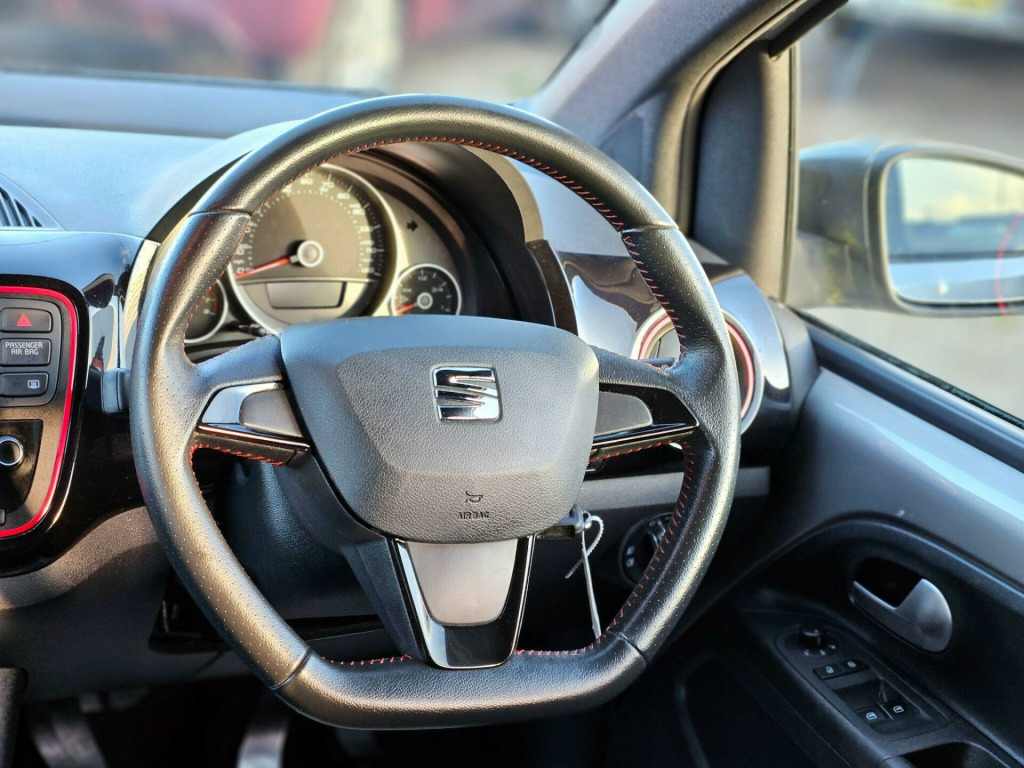 Full service history 3 months warranty engine and gearbox Mot expiry 15/10/2026Air Conditioning Alloy wheels Privacy Glass 2 owners 2 keys Discover this 2018 SEAT Mii FR Line, a stylish and economical choice for city driving. This particular model boasts a 1.0 litre petrol engine and meets Euro 6 emissions standards, making it an environmentally conscious option. Inside, you'll find comfort with its air conditioning system and enjoy your favourite music through the impressive Beats Audio branded sound system. Stay connected on the go with the convenient Bluetooth phone connection.This SEAT Mii FR Line is designed to be affordable to run. Its low insurance group rating means lower costs for drivers, and its low CO2 emissions further contribute to its cost effectiveness. These factors indicate that this vehicle offers a more economical ownership experience compared to many other cars in its class. volt power supply in centre console, 16in alloy wheels - design machined atom, air conditioning, aluminium front door sill trims with fr-line logo, anti-lock braking system - abs, atom grey door mirrors, beats audio, black dashboard panel, black greenhouse - roof lining, bluetooth phone connection, body coloured bumpers, body-coloured door handles, colour screen radio with sd card slot - usb and aux-in port, dark tinted rear windows, daytime running lights - halogen, digital clock, driver and front passenger airbags, driver and passenger sunvisor with mirror on passenger side, dust and pollen filter, electric front windows, electro-mechanical power steering - speed-sensitive, electronic engine immobiliser, electronic stability control - esc, emergency tyre repair kit, enclosed glovebox, exterior door graphics, fm-am radio, fr-line key cover and floor mats, front courtesy light, front passenger airbag deactivation, front seats with integrated headrests, front and rear seatbelt reminder, handbrake lever - plastic, head-thorax front side airbags, heated rear windscreen, height adjustable drivers seat, height-adjustable steering wheel, hill hold control, isofix points in outer rear seats with top tether anchorage points, leather steering wheel and gear knob, lights left on warning buzzer, locking wheel bolts, low fuel warning light, parcel shelf, rpm counter, rear fog light, remote central locking, single-bulb halogen front headlights, smartphone integration with drive mii app, split folding rear seats - 60-40, sports suspension, three button folding key, two height-adjustable rear headrests, tyre pressure monitoring system, usb media cable, visible vin in windscreen