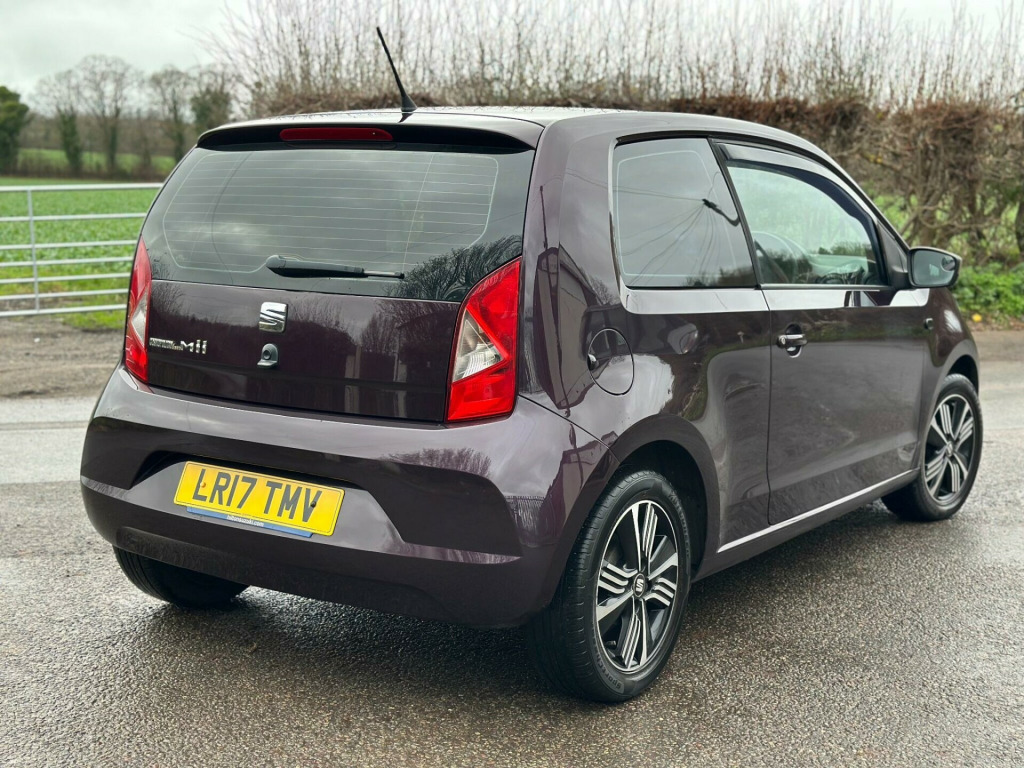 Service HistoryThis 2017 SEAT Mii by Cosmopolitan is a remarkably low mileage example, having covered just 39,000 miles. This stylish city car boasts a 1.0 litre petrol engine and meets Euro 6 emissions standards. Inside, you'll find convenient features such as Bluetooth phone connectivity and air conditioning, making every journey more comfortable and connected.The Mii by Cosmopolitan stands out with its exceptional fuel economy, achieving an impressive 64 miles per gallon, which indicates it is more economical than many other vehicles in its class. Furthermore, its low insurance group and low CO2 emissions highlight its cost effectiveness and environmental consideration, making it an attractive choice for budget conscious and eco aware drivers alike.. Apple Car Play, Rear Camera, Bluetooth Phone Connection, 15in Alloy Wheels - Machined Black, Air Conditioning, Remote Central Locking, 2 Keys, Electric Front Windows, Electrically Adjustable and Heated Door Mirrors, Smartphone Integration with Drive Mii App, Colour Screen Radio with SD Card Slot, MP3 Compatible CD Player, USB Port, Hill Hold Control, LED Daytime Running Lights, Electronic Engine Immobiliser, Anti-Lock Braking System - ABS, TCS - Traction Control System, Electronic Stability Control - ESC, Bismuth Coloured Door Mirrors, Body Coloured Bumpers, Body-Coloured Door Handles, Contrast Coloured Roof - Black, ISOFIX Points in Outer Rear Seats with Top Tether Anchorage Points, 12 Volt Power Supply in Centre Console, Cosmo Loves Mii Floor Mats and Key Covers, Dashboard Insert - Violetto, Driver and Front Passenger Airbags, Front Passenger Airbag Deactivation, Driver and Passenger Sunvisor with Mirror on Passenger Side, Easy Entry Front Seats, Electro-Mechanical Power Steering - Speed-Sensitive, Emergency Tyre Repair Kit, Enclosed Glovebox, Front Seats with Integrated Headrests, Front and Rear Seatbelt Reminder, Head-Thorax Front Side Airbags, Heated Rear Windscreen, Height Adjustable Drivers Seat, Height-Adjustable Steering Wheel, Leather Steering Wheel and Gear Knob, Lights Left On Warning Buzzer, RPM Counter, Rear Fog Light, Single-Bulb Halogen Front Headlights, Split Folding Rear Seats - 60-40, Three Button Folding Key, Two Height-Adjustable Rear Headrests, Tyre Pressure Monitoring System, HPI Clear, Dark Tinted Rear Windows, Mii by Cosmo Style Pack, Simil Leather-Alcantara - Violetto-Black with Bismuth Stitching.