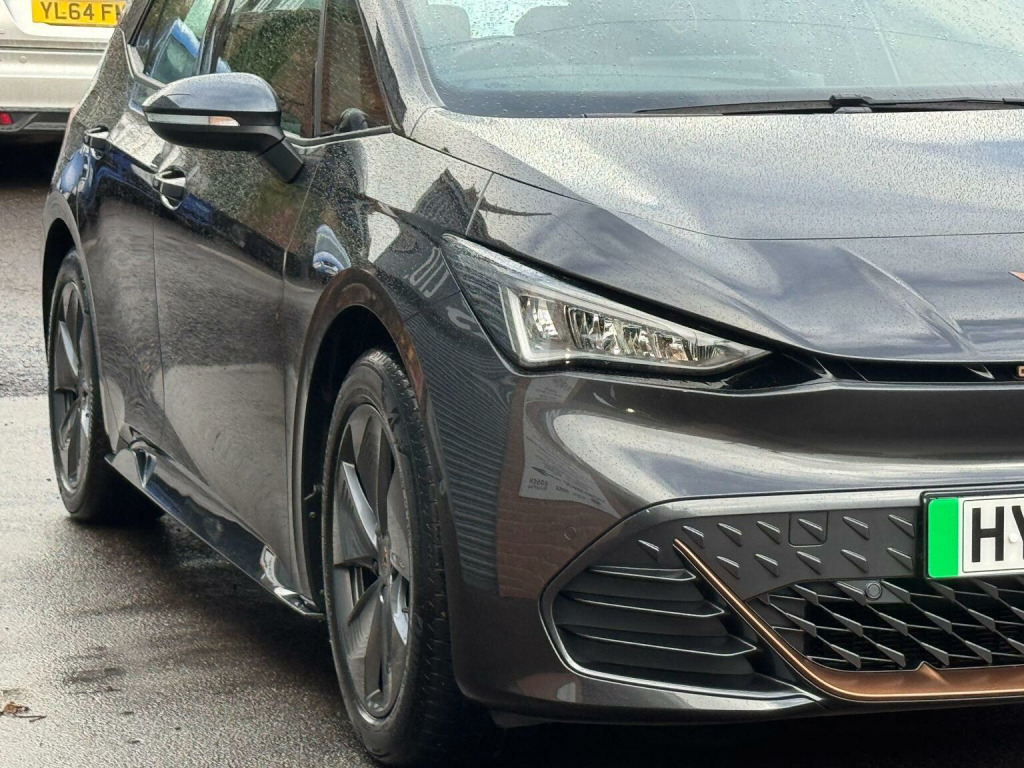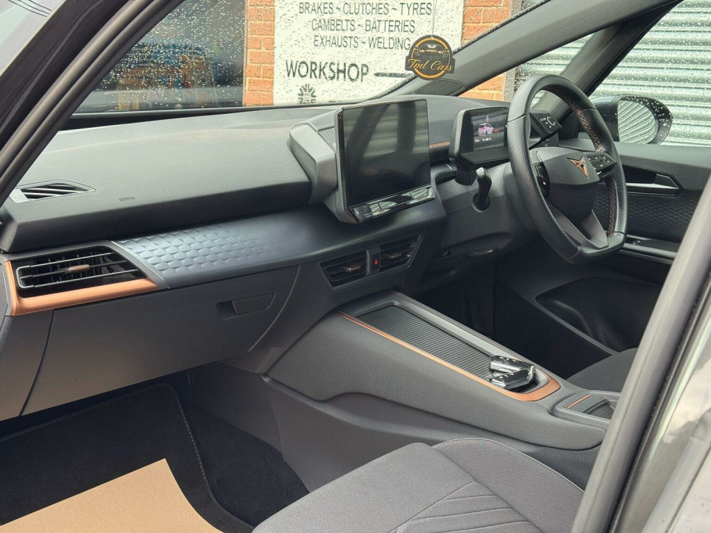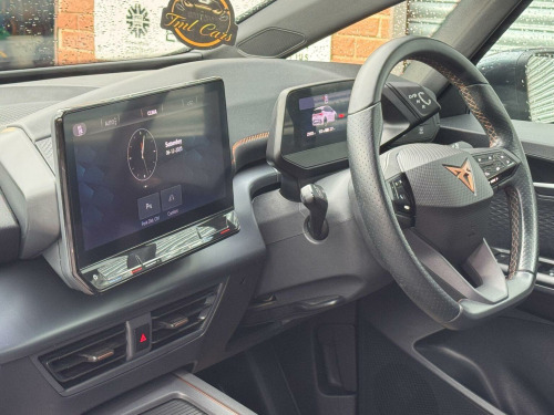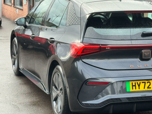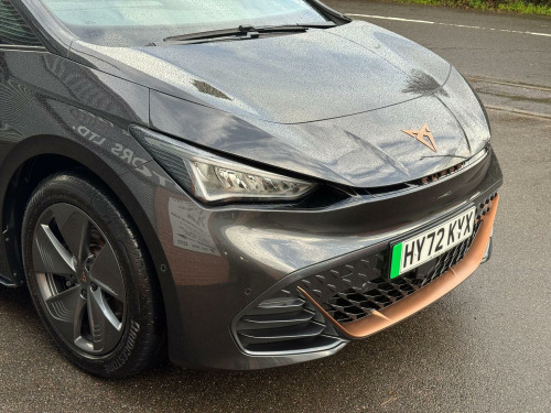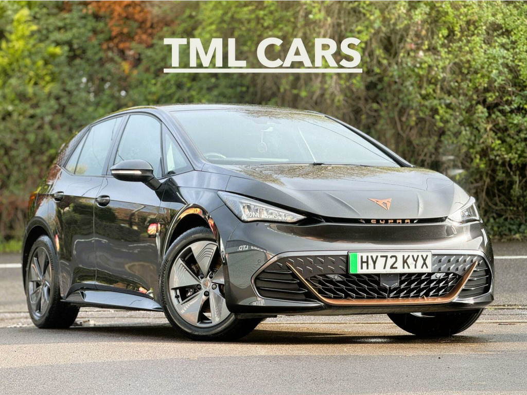 My names Tom and Im the owner of TML Cars, Im pleased to offer to market this 2022 CUPRA Born V1 presenting a superb opportunity, having had only one owner from new and boasting a clear vehicle history check. As a fully electric model it offers an impressive battery total capacity of 62 kWh, providing a maximum range of 265 miles when new. This particular example is equipped with full LED headlights featuring a welcome home and adverse weather function, alongside a keyless go central locking system for effortless access. For convenience, it includes Bluetooth connectivity and a Park Assist system with front and rear sensors. The driver will appreciate the heated, leather wrapped, multifunction steering wheel, adding comfort to every journey. The CUPRA Born V1 stands out with its dynamic performance, achieving 0-62mph in just 7.3 seconds, demonstrating its responsive acceleration. This electric hatchback also offers substantial practicality with its large boot space, making it ideal for everyday use and longer trips. Charging is efficient, with a full charge at home on a 7kW charger taking approximately 9 hours and 30 minutes, while rapid public charging can take the battery from empty to 80% in as little as 37 minutes. These attributes highlight how this CUPRA Born V1 offers a compelling blend of performance, practicality, and advanced technology.