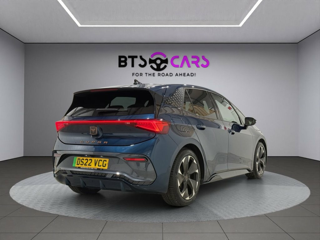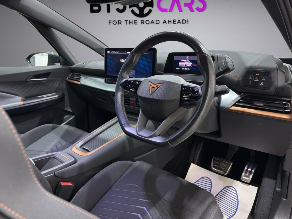 Privacy: Tinted side windows, Tech (L) Pack with KESSY includingSafelock, "Below Zero": seat heaters in front,heated steering wheel and headlampwasher system with heated washer fluid, Tool kits for 19" and 20" wheels, 19" TYPHOON alloy wheels, AR-HUD: Augmented Reality head-up display + heat-reflecting windshield 19in Alloy Wheels - Machined Typhoon - G, Tech - L, Aurora Blue, 11 kW AC Charging Capacity, 120kW DC Charging Capacity, 19in Alloy Wheels - Machined Typhoon, 3-Point Seatbelts, 5 Infotainment Speakers, 5.3in Digital Cockpit with 12in Central , Aluminium Pedals, Anti-Theft Alarm System - Interior Monit, Augmented Reality Head-Up Display, Auto Dimming Rear View Mirror, Bluetooth, CUPRA Connect, CUPRA Emblem on Steering Wheel, Charging Cable - Mode 3 - 16amp, Climatronic Dual-Zone Air Conditioning, DAB and AM/FM Radio, Dark Tinted Rear Windows, Door Mirrors Electrically Adjustable - F, Driver Alert System, Driver and Front Passenger Airbags with , Drivers and Passenger Seats - Manual Hei, Driv
