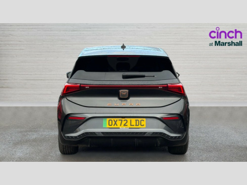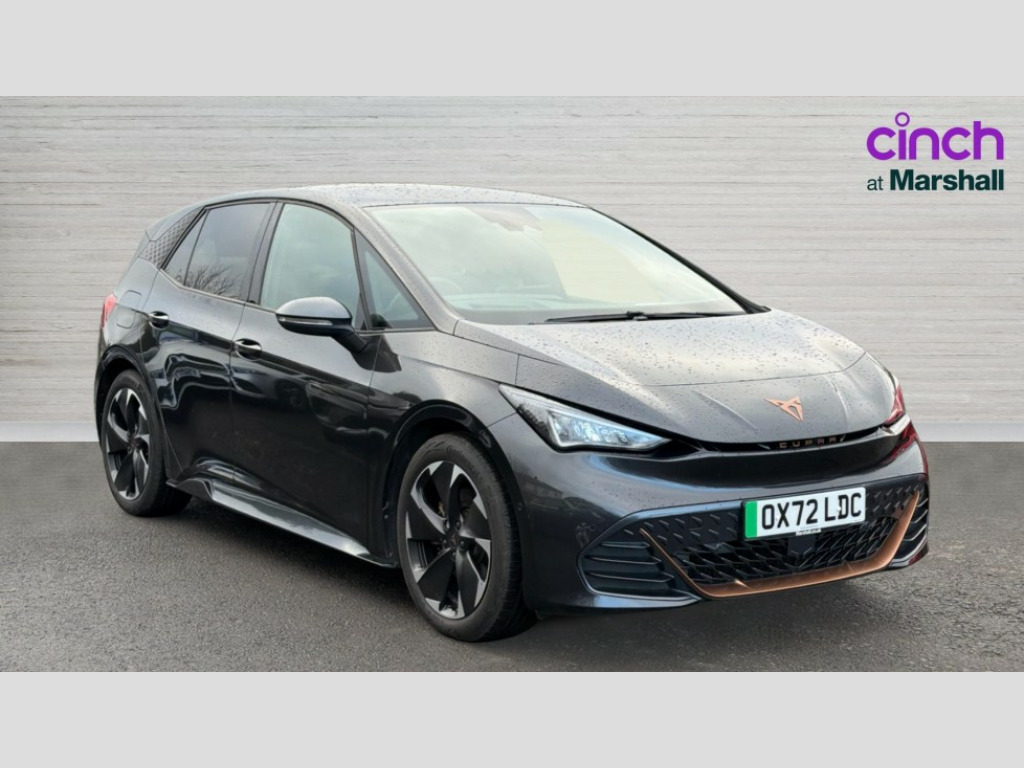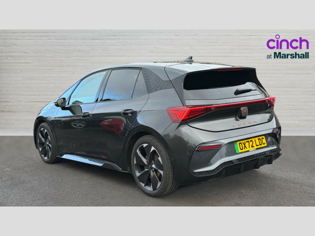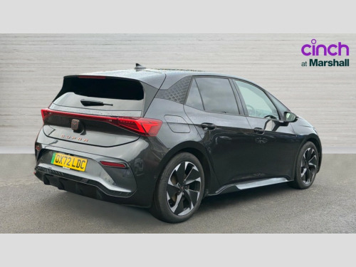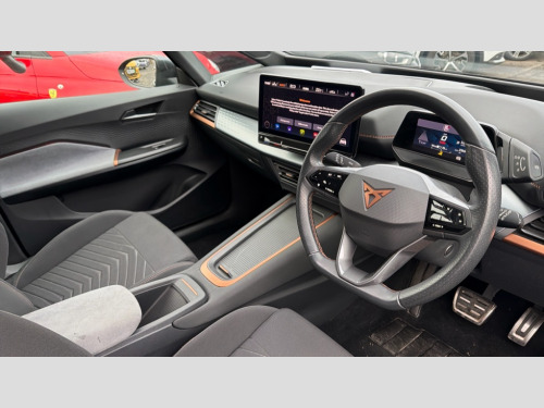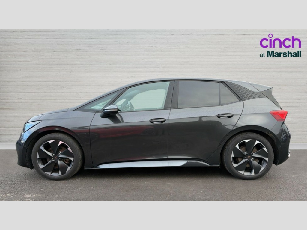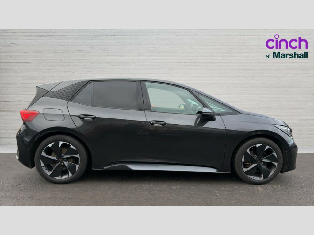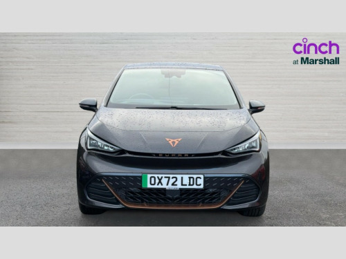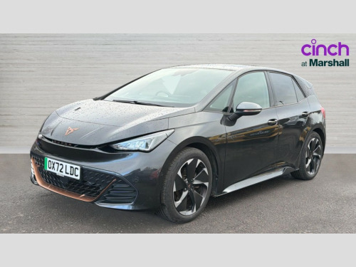 Cupra Born 150kW V2 58kWh 5dr Auto 5.3" digital cockpit with 12" central display infotainment system, Augmented reality head up display, Bluetooth without wireless charger, Driving profile selection - Range, Comfort, Performance, Individual, Dynamic steering, e-call service, Emergency steering support with turn assist, Forward collision warning with automatic braking, Front/rear park distance control, Lane assist, PAS, Tailgate, Voice assistant, Wireless full link smartphone integration, 120kW DC charging capacity, 7.4 kW onboard charger, Shock absorption in front, Sports rear shock absorption, 2x USB sockets in front, 2x USB sockets in rear, charge only, DAB (Digital Audio Broadcasting) and AM/FM radio, Acoustic windshield, Auto dimming rear view mirror, Dark tinted rear windows, Daytime running lights, Electric adjustable/heated/folding door mirrors, Full LED headlights, Grey exterior mirrors, Heat insulated glass, Heated washer nozzles, LED 3rd brake light, LED rear lights, Rear side wing doors, Rear wiper, Transport protection film, Variable intermittent wiper, Welcome home function and adverse weather function, Windshield wiper with light/rain sensor, 3 seat bench in 2nd row, Aluminium pedals, CUPRA emblem on steering wheel, Dual zone climate control, Electric auxiliary air heater, Heated front seats, Heated leather wrapped multi function steering wheel, Integrated front head restraints, ISOFIX points in outer rear seats with top tether anchorage points, Manual height adjustable front seats, Multi-colour ambient interior lighting, Rear headrests, SEAQUAL Yarn cloth upholstery, Single front passenger seat, Sunvisors with illuminated mirror, Unsplit rear seat bench, split folding backrest, without centre armrest, Pilot M pack - Born, 3 point seatbelts on all rear seats, Driver and front passenger airbags with front passenger airbag deactivation, side airbag in front with curtain airbag and front interaction airbag, Extended safety system with proactive passenger protection system, Manual child lock in rear doors, Tiredness recognition system, driver alert system, Tyre pressure monitoring system, Visual and acoustic seat belt reminder, Anti theft alarm system with interior monitoring in cab, backup horn and towing protection, Anti theft wheel bolts, Keyless go central locking system, 19" Typhoon alloy wheels, Tool kit, Tyre repair kit