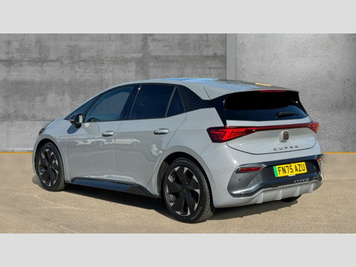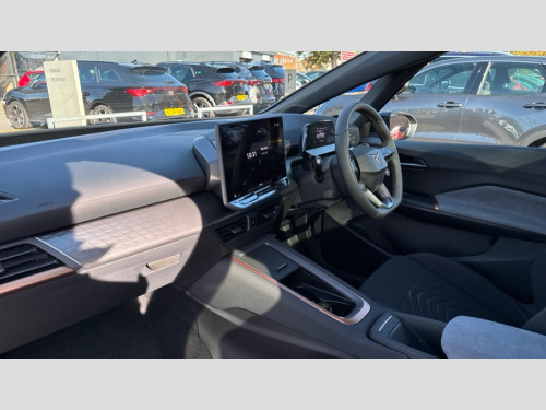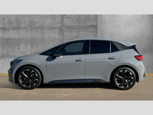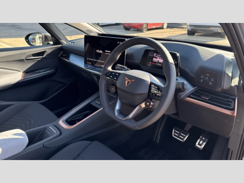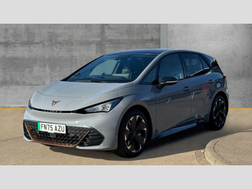 Cupra Born 170kW e-Boost Exclusive Edition 59kWh 5dr Auto 5.3" digital cockpit with 12.9" central display infotainment system, Augmented reality head up display, Bluetooth, Dynamic steering, e-call service, Emergency steering support with turn assist, Forward collision warning with automatic braking, Lane assist, Right hand drive vehicle, Tailgate, Voice assistant, Wireless full link smartphone integration, 11 kW Onboard charger, 165kW DC charging capacity, Charging cable mode 3, type 2/3 32 A, Gear ratio 12976, Shock absorption in front, Sports rear shock absorption, 2x USB sockets in front, 2x USB sockets in rear, charge only, DAB (Digital Audio Broadcasting) and AM/FM radio, Sennheiser premium audio, Acoustic windshield, Auto dimming rear view mirror, Dark tinted rear windows, Electric adjustable/heated/folding door mirrors, Full LED headlights, Grey exterior mirrors, Heat insulated glass, LED 3rd brake light, LED daytime running lights, LED rear lights, Rear side wing doors, Rear wiper, Skyline fixed panoramic sunroof, Transport protection film, Variable intermittent wiper, Welcome home function and adverse weather function, Windshield wiper with light/rain sensor, 3 seat bench in 2nd row, Aluminium pedals, CUPRA emblem on steering wheel, Dual zone climatronic air conditioning, Electric auxiliary air heater, Heated front seats, Heated leather wrapped multi function steering wheel with satellite buttons, Integrated front head restraints, ISOFIX points in outer rear seats with top tether anchorage points, Manual height adjustable front seats, Rear headrests, SEAQUAL Yarn cloth upholstery, Single front passenger seat, Sunvisors with illuminated mirror, Unsplit rear seat bench, split folding backrest, without centre armrest, Pilot L pack with remote park assist - Born, Safety and NCAP pack - Born, Tech M pack without Car 2X function - Born, 3 point seatbelts on all rear seats, Attention and drowsiness assist, Driver and front passenger airbags with front passenger airbag deactivation, side airbag in front with curtain airbag and front interaction airbag, Extended safety system with proactive passenger protection system, Tyre pressure monitoring system, Visual and acoustic seat belt reminder, Anti theft alarm system with interior monitoring in cab, backup horn and towing protection, Anti theft wheel bolts, Keyless go central locking system, Manual child locks, Preparation for alcohol interlock, Warranty - 5 years/90,000 miles, Tool kit, Tyre repair kit