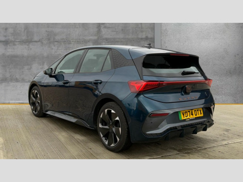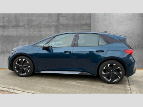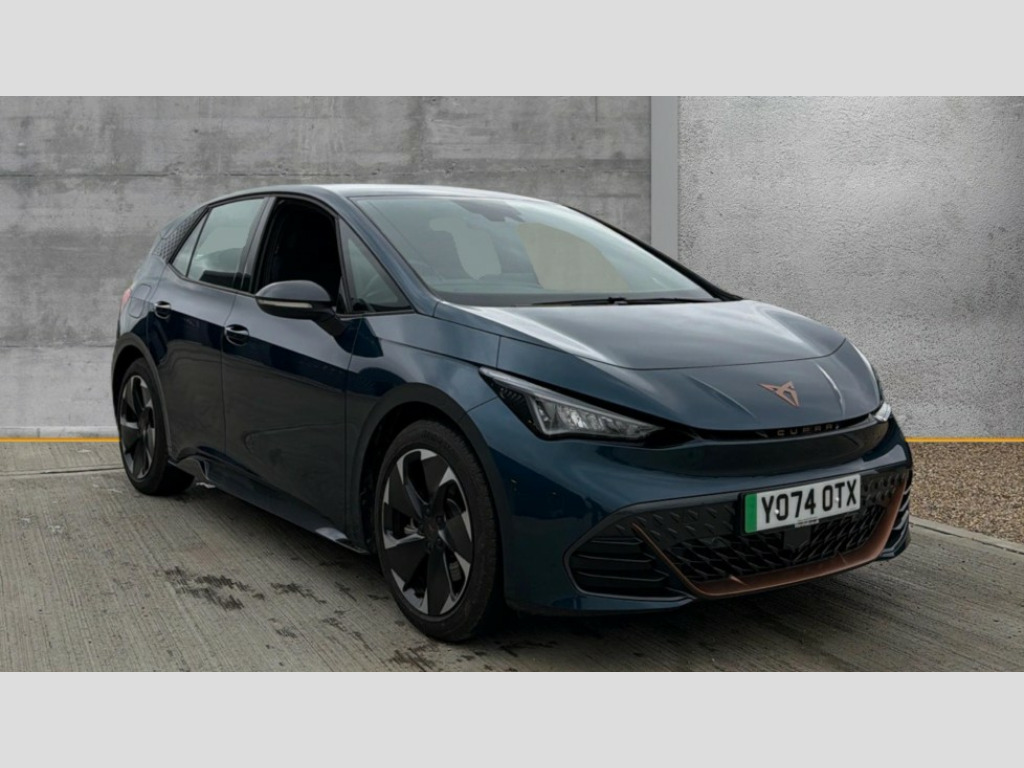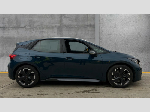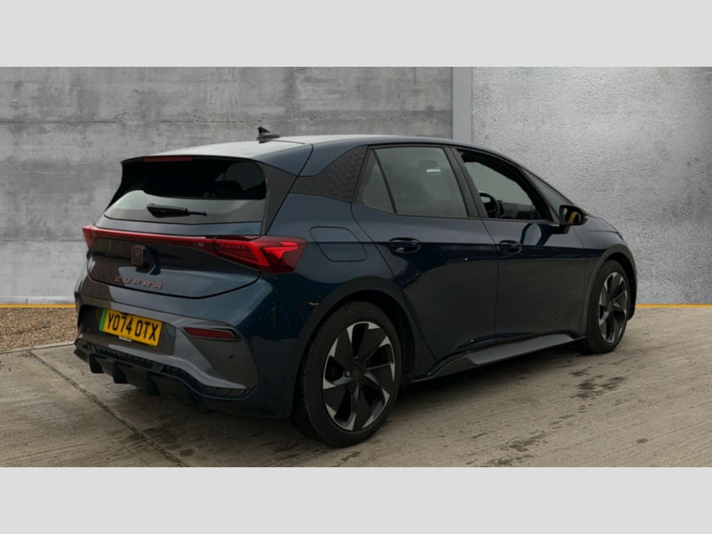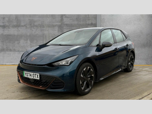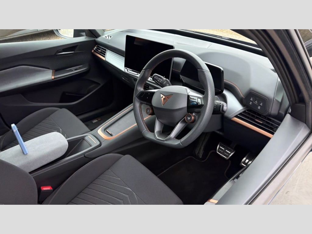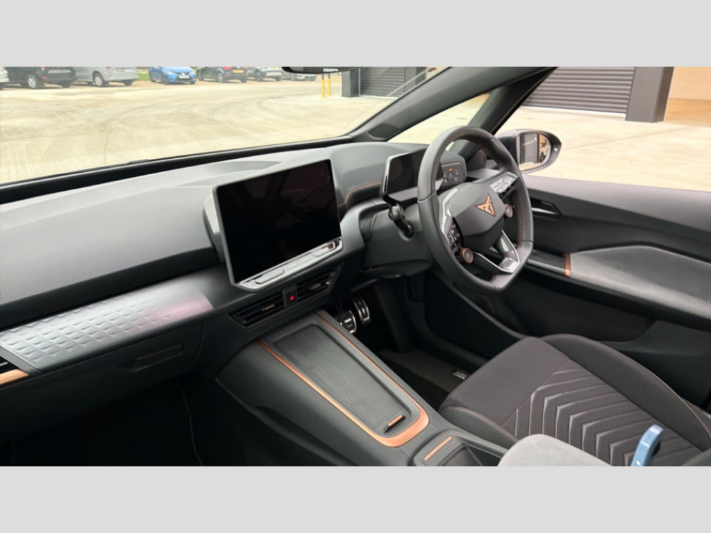 Cupra Born 170kW e-Boost V1 59kWh 5dr Auto 5.3" digital cockpit with 12.9" central display infotainment system, Bluetooth, Dynamic steering, e-call service, Emergency steering support with turn assist, Forward collision warning with automatic braking, Lane assist, Right hand drive vehicle, Tailgate, Voice assistant, Wireless full link smartphone integration, 11 kW Onboard charger, 165kW DC charging capacity, Charging cable mode 3, type 2/3 32 A, Gear ratio 12976, Shock absorption in front, Sports rear shock absorption, 2x USB sockets in front, 2x USB sockets in rear, charge only, DAB (Digital Audio Broadcasting) and AM/FM radio, Acoustic windshield, Auto dimming rear view mirror, Electric adjustable/heated/folding door mirrors, Full LED headlights, Grey exterior mirrors, Heat insulated glass, LED 3rd brake light, LED daytime running lights, LED rear lights, Rear side wing doors, Rear wiper, Transport protection film, Variable intermittent wiper, Welcome home function and adverse weather function, Windshield wiper with light/rain sensor, 3 seat bench in 2nd row, Aluminium pedals, CUPRA emblem on steering wheel, Dual zone climatronic air conditioning, Electric auxiliary air heater, Heated leather wrapped multi function steering wheel with satellite buttons, Integrated front head restraints, ISOFIX points in outer rear seats with top tether anchorage points, Manual height adjustable front seats, Rear headrests, SEAQUAL Yarn cloth upholstery, Single front passenger seat, Sunvisors with illuminated mirror, Unsplit rear seat bench, split folding backrest, without centre armrest, 3 point seatbelts on all rear seats, Attention and drowsiness assist, Driver and front passenger airbags with front passenger airbag deactivation, side airbag in front with curtain airbag and front interaction airbag, Extended safety system with proactive passenger protection system, Tyre pressure monitoring system, Visual and acoustic seat belt reminder, Anti theft alarm system with interior monitoring in cab, backup horn and towing protection, Anti theft wheel bolts, Keyless go central locking system, Manual child locks, Preparation for alcohol interlock, Warranty - 5 years/90,000 miles, Tool kit, Tyre repair kit