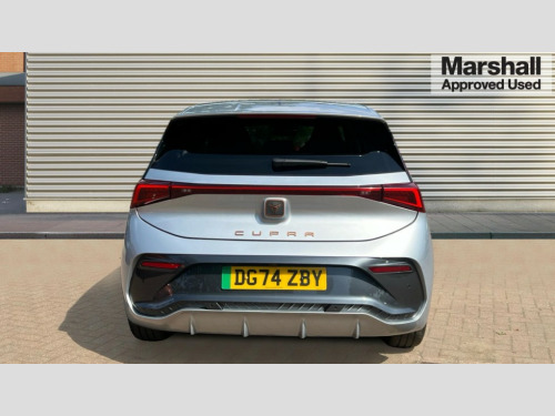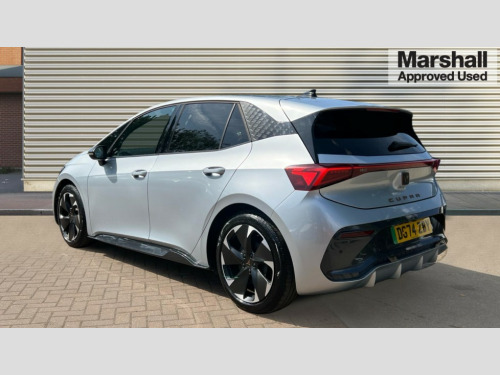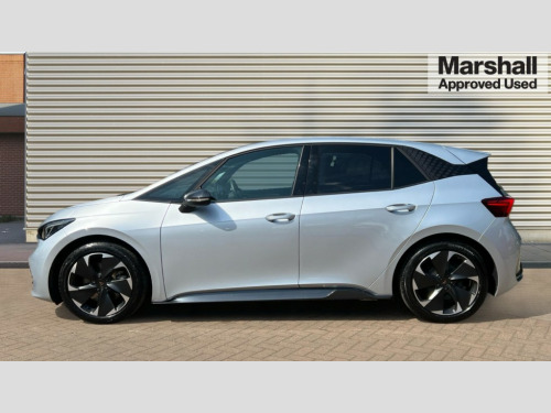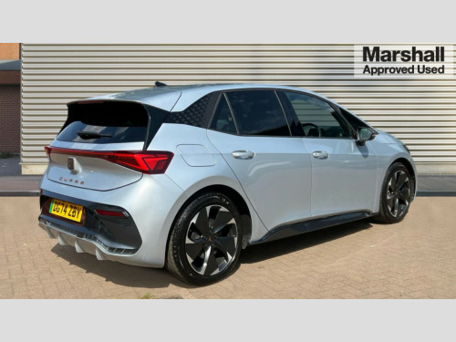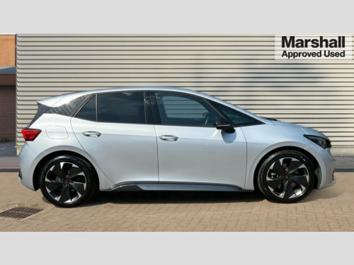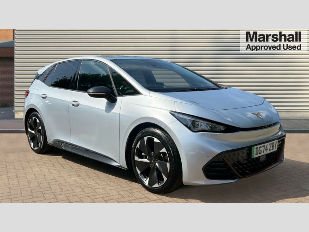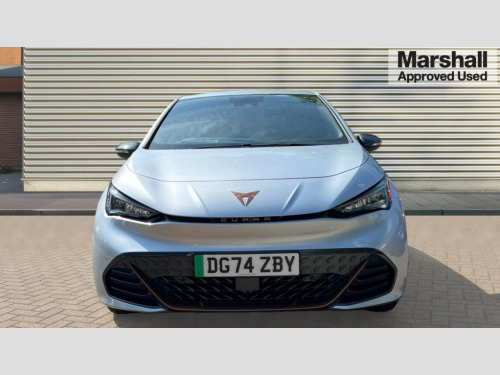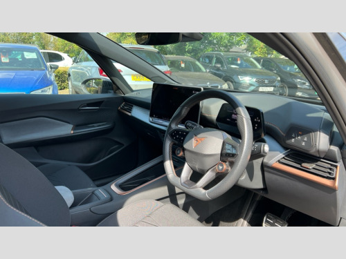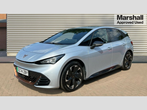 Cupra Born 170kW e-Boost V2 59kWh 5dr Auto 5.3" digital cockpit with 12.9" central display infotainment system, Augmented reality head up display, Bluetooth, Driving profile selection - Range, Comfort, Performance, CUPRA Individual, Dynamic steering, e-call service, Emergency steering support with turn assist, Forward collision warning with automatic braking, Lane assist, Right hand drive vehicle, Tailgate, Voice assistant, Wireless full link smartphone integration, 11 kW Onboard charger, 120kW DC charging capacity, Charging cable mode 3, type 2/3 32 A, Shock absorption in front, Sports rear shock absorption, 2x USB sockets in front, 2x USB sockets in rear, charge only, DAB (Digital Audio Broadcasting) and AM/FM radio, Acoustic windshield, Auto dimming rear view mirror, Dark tinted rear windows, Electric adjustable/heated/folding door mirrors, Full LED headlights, Grey exterior mirrors, Heat insulated glass, LED 3rd brake light, LED daytime running lights, LED rear lights, Rear side wing doors, Rear wiper, Transport protection film, Variable intermittent wiper, Welcome home function and adverse weather function, Windshield wiper with light/rain sensor, 3 seat bench in 2nd row, Aluminium pedals, CUPRA emblem on steering wheel, Dual zone climatronic air conditioning, Electric auxiliary air heater, Heated front seats, Heated leather wrapped multi function steering wheel with satellite buttons, Integrated front head restraints, ISOFIX points in outer rear seats with top tether anchorage points, Manual height adjustable front seats, Rear headrests, SEAQUAL Yarn cloth upholstery, Single front passenger seat, Sunvisors with illuminated mirror, Unsplit rear seat bench, split folding backrest, without centre armrest, 3 point seatbelts on all rear seats, Attention and drowsiness assist, Driver and front passenger airbags with front passenger airbag deactivation, side airbag in front with curtain airbag and front interaction airbag, Extended safety system with proactive passenger protection system, Tyre pressure monitoring system, Visual and acoustic seat belt reminder, Anti theft alarm system with interior monitoring in cab, backup horn and towing protection, Anti theft wheel bolts, Keyless go central locking system, Manual child locks, Preparation for alcohol interlock, Warranty - 5 years/90,000 miles, Tool kit, Tyre repair kit