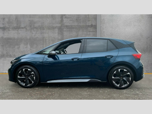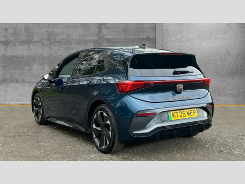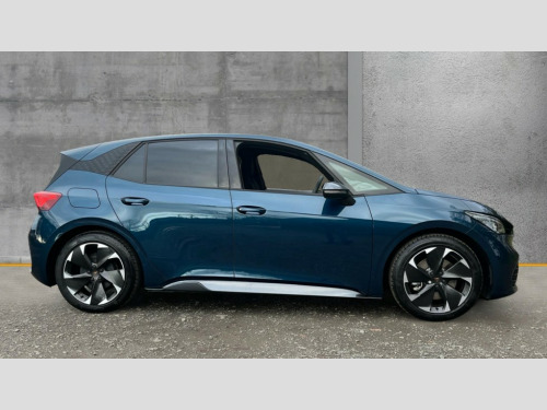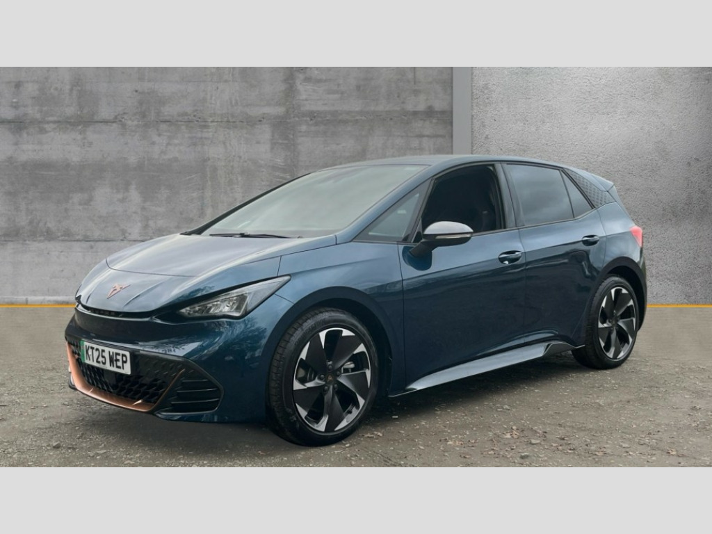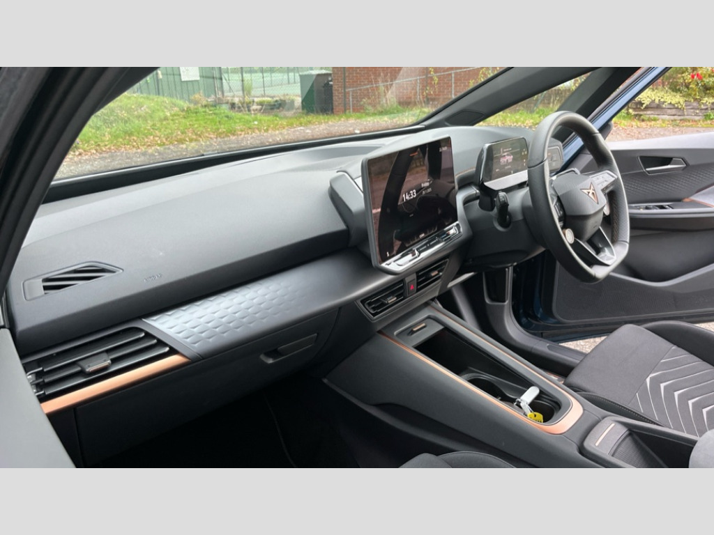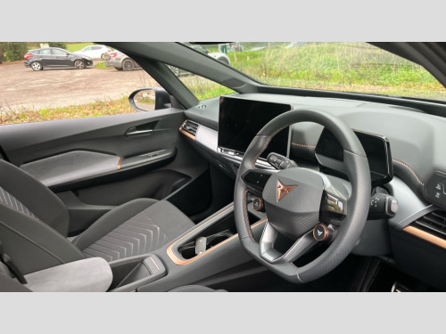 Cupra Born 170kW e-Boost V2 59kWh 5dr Auto 5.3" digital cockpit with 12.9" central display infotainment system, Augmented reality head up display, Bluetooth, Dynamic steering, e-call service, Emergency steering support with turn assist, Forward collision warning with automatic braking, Lane assist, Right hand drive vehicle, Tailgate, Voice assistant, Wireless full link smartphone integration, 11 kW Onboard charger, 165kW DC charging capacity, Charging cable mode 3, type 2/3 32 A, Gear ratio 12976, Shock absorption in front, Sports rear shock absorption, 2x USB sockets in front, 2x USB sockets in rear, charge only, DAB (Digital Audio Broadcasting) and AM/FM radio, Acoustic windshield, Auto dimming rear view mirror, Dark tinted rear windows, Electric adjustable/heated/folding door mirrors, Full LED headlights, Grey exterior mirrors, Heat insulated glass, LED 3rd brake light, LED daytime running lights, LED rear lights, Rear side wing doors, Rear wiper, Transport protection film, Variable intermittent wiper, Welcome home function and adverse weather function, Windshield wiper with light/rain sensor, 3 seat bench in 2nd row, Aluminium pedals, CUPRA emblem on steering wheel, Dual zone climatronic air conditioning, Electric auxiliary air heater, Heated front seats, Heated leather wrapped multi function steering wheel with satellite buttons, Integrated front head restraints, ISOFIX points in outer rear seats with top tether anchorage points, Manual height adjustable front seats, Rear headrests, SEAQUAL Yarn cloth upholstery, Single front passenger seat, Sunvisors with illuminated mirror, Unsplit rear seat bench, split folding backrest, without centre armrest, Safety and NCAP pack - Born, 3 point seatbelts on all rear seats, Attention and drowsiness assist, Driver and front passenger airbags with front passenger airbag deactivation, side airbag in front with curtain airbag and front interaction airbag, Extended safety system with proactive passenger protection system, Tyre pressure monitoring system, Visual and acoustic seat belt reminder, Anti theft alarm system with interior monitoring in cab, backup horn and towing protection, Anti theft wheel bolts, Keyless go central locking system, Manual child locks, Preparation for alcohol interlock, Warranty - 5 years/90,000 miles, Tool kit, Tyre repair kit