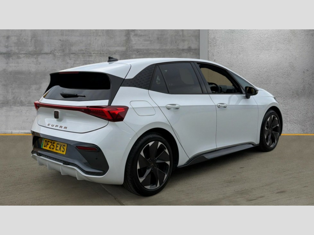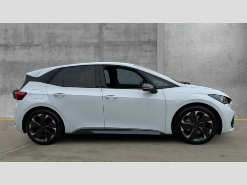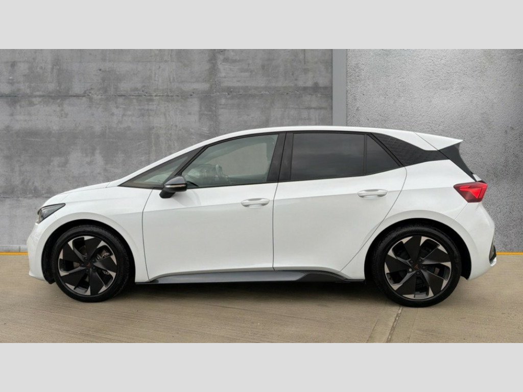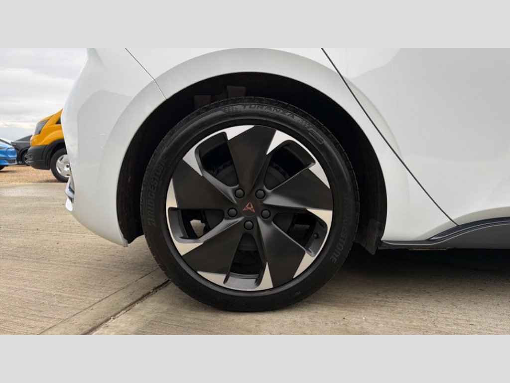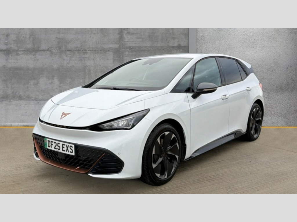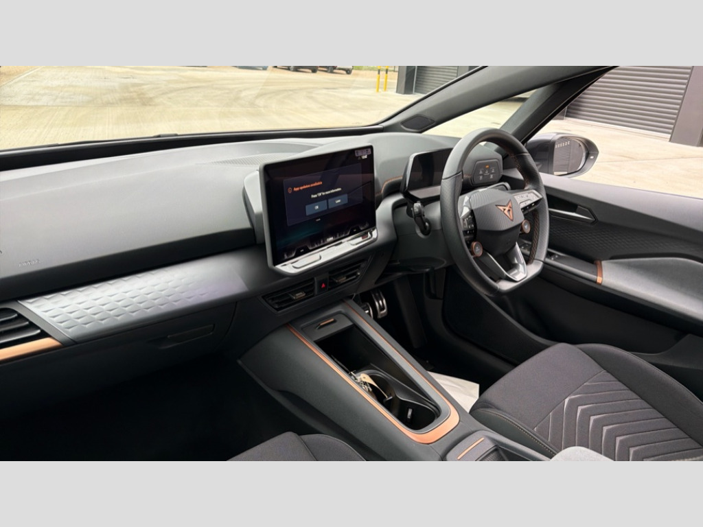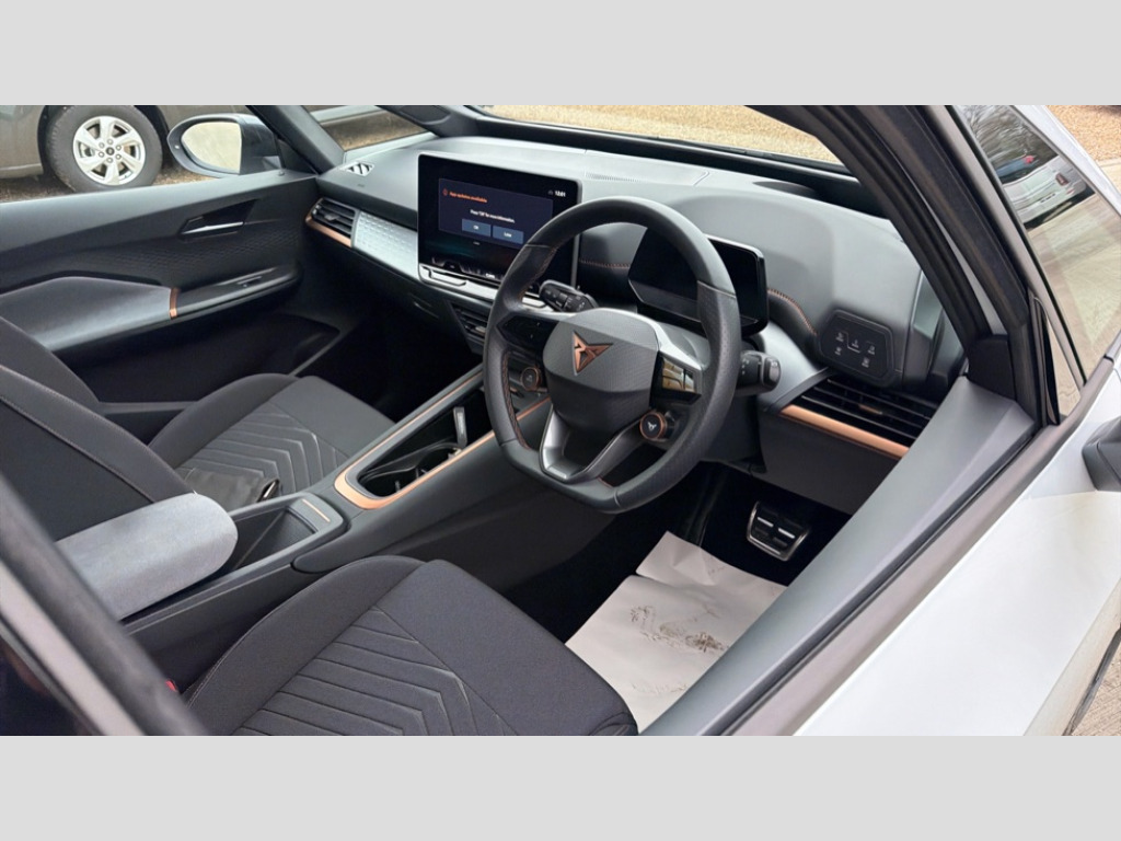 Cupra Born 170kW e-Boost V2 59kWh 5dr Auto 5.3" digital cockpit with 12.9" central display infotainment system, Augmented reality head up display, Bluetooth, Dynamic steering, e-call service, Emergency steering support with turn assist, Forward collision warning with automatic braking, Lane assist, Right hand drive vehicle, Tailgate, Voice assistant, Wireless full link smartphone integration, 11 kW Onboard charger, 165kW DC charging capacity, Charging cable mode 3, type 2/3 32 A, Gear ratio 12976, Shock absorption in front, Sports rear shock absorption, 2x USB sockets in front, 2x USB sockets in rear, charge only, DAB (Digital Audio Broadcasting) and AM/FM radio, Acoustic windshield, Auto dimming rear view mirror, Dark tinted rear windows, Electric adjustable/heated/folding door mirrors, Full LED headlights, Grey exterior mirrors, Heat insulated glass, LED 3rd brake light, LED daytime running lights, LED rear lights, Rear side wing doors, Rear wiper, Transport protection film, Variable intermittent wiper, Welcome home function and adverse weather function, Windshield wiper with light/rain sensor, 3 seat bench in 2nd row, Aluminium pedals, CUPRA emblem on steering wheel, Dual zone climatronic air conditioning, Electric auxiliary air heater, Heated front seats, Heated leather wrapped multi function steering wheel with satellite buttons, Integrated front head restraints, ISOFIX points in outer rear seats with top tether anchorage points, Manual height adjustable front seats, Rear headrests, SEAQUAL Yarn cloth upholstery, Single front passenger seat, Sunvisors with illuminated mirror, Unsplit rear seat bench, split folding backrest, without centre armrest, 3 point seatbelts on all rear seats, Attention and drowsiness assist, Driver and front passenger airbags with front passenger airbag deactivation, side airbag in front with curtain airbag and front interaction airbag, Extended safety system with proactive passenger protection system, Tyre pressure monitoring system, Visual and acoustic seat belt reminder, Anti theft alarm system with interior monitoring in cab, backup horn and towing protection, Anti theft wheel bolts, Keyless go central locking system, Manual child locks, Preparation for alcohol interlock, Warranty - 5 years/90,000 miles, Tool kit, Tyre repair kit