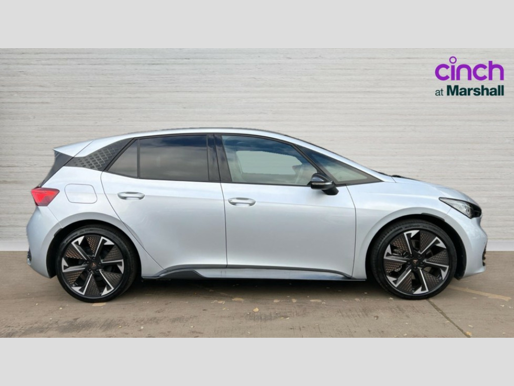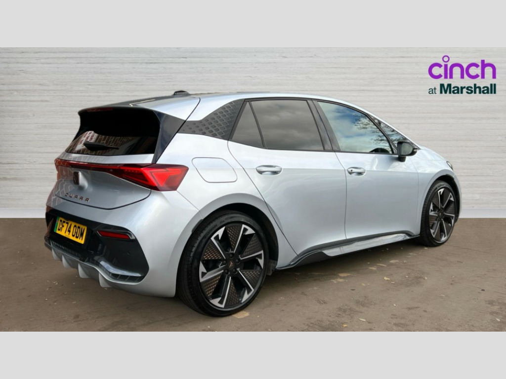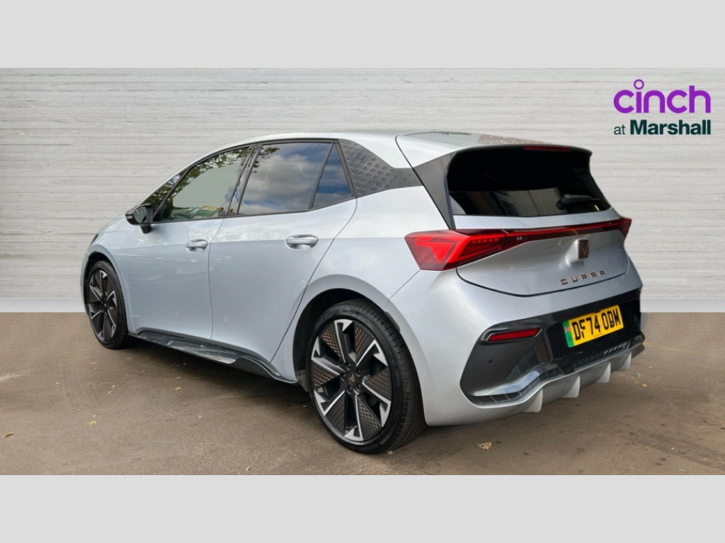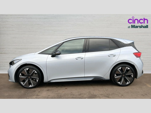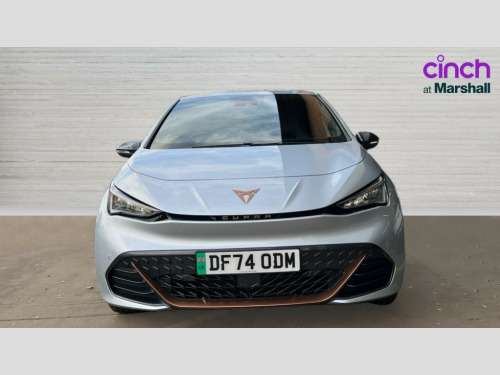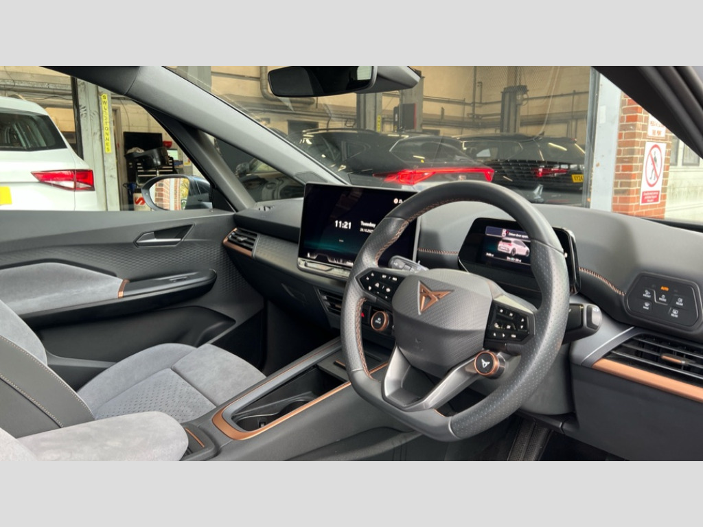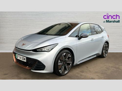 Cupra Born 170kW e-Boost V3 59kWh 5dr Auto 5.3" digital cockpit with 12.9" central display infotainment system, Augmented reality head up display, Bluetooth, Dynamic steering, e-call service, Emergency steering support with turn assist, Forward collision warning with automatic braking, Lane assist, Right hand drive vehicle, Tailgate, Voice assistant, Wireless full link smartphone integration, 11 kW Onboard charger, 165kW DC charging capacity, Charging cable mode 3, type 2/3 32 A, Gear ratio 12976, Shock absorption in front, Sports rear shock absorption, 2x USB sockets in front, 2x USB sockets in rear, charge only, DAB (Digital Audio Broadcasting) and AM/FM radio, Acoustic windshield, Auto dimming rear view mirror, Dark tinted rear windows, Electric adjustable/heated/folding door mirrors, Full LED headlights, Grey exterior mirrors, Heat insulated glass, LED 3rd brake light, LED daytime running lights, LED rear lights, Rear side wing doors, Rear wiper, Transport protection film, Variable intermittent wiper, Welcome home function and adverse weather function, Windshield wiper with light/rain sensor, 3 seat bench in 2nd row, Aluminium pedals, CUPRA emblem on steering wheel, Dual zone climatronic air conditioning, Electric auxiliary air heater, Front bucket seats with 12 way electrically adjustable, pneumatically adjustable lumbar support and massage function, Heated front seats, Heated leather wrapped multi function steering wheel with satellite buttons, Integrated front head restraints, ISOFIX points in outer rear seats with top tether anchorage points, Rear headrests, Single front passenger seat, Sunvisors with illuminated mirror, Unsplit rear seat bench, split folding backrest, with centre armrest, 3 point seatbelts on all rear seats, Attention and drowsiness assist, Driver and front passenger airbags with front passenger airbag deactivation, side airbag in front with curtain airbag and front interaction airbag, Extended safety system with proactive passenger protection system, Tyre pressure monitoring system, Visual and acoustic seat belt reminder, Anti theft alarm system with interior monitoring in cab, backup horn and towing protection, Anti theft wheel bolts, Keyless go central locking system, Manual child locks, Preparation for alcohol interlock, Warranty - 5 years/90,000 miles, Tool kit, Tyre repair kit