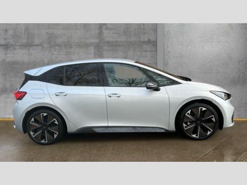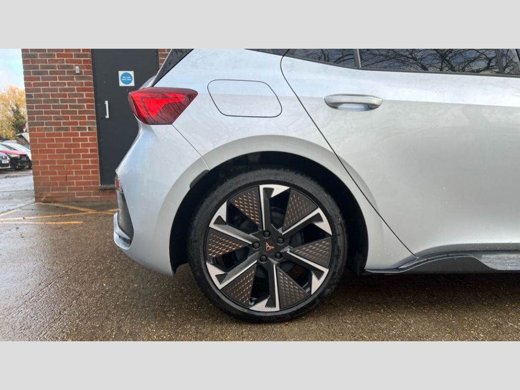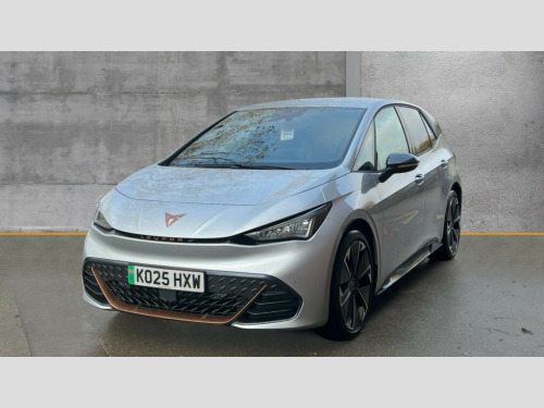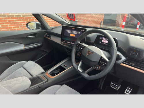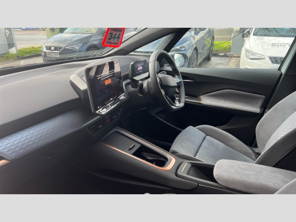 Cupra Born 170kW e-Boost V3 59kWh 5dr Auto 5.3" digital cockpit with 12.9" central display infotainment system, Augmented reality head up display, Bluetooth, Dynamic steering, e-call service, Emergency steering support with turn assist, Forward collision warning with automatic braking, Lane assist, Right hand drive vehicle, Tailgate, Voice assistant, Wireless full link smartphone integration, 11 kW Onboard charger, 165kW DC charging capacity, Charging cable mode 3, type 2/3 32 A, Gear ratio 12976, Shock absorption in front, Sports rear shock absorption, 2x USB sockets in front, 2x USB sockets in rear, charge only, DAB (Digital Audio Broadcasting) and AM/FM radio, Acoustic windshield, Auto dimming rear view mirror, Dark tinted rear windows, Electric adjustable/heated/folding door mirrors, Full LED headlights, Grey exterior mirrors, Heat insulated glass, LED 3rd brake light, LED daytime running lights, LED rear lights, Rear side wing doors, Rear wiper, Transport protection film, Variable intermittent wiper, Welcome home function and adverse weather function, Windshield wiper with light/rain sensor, 3 seat bench in 2nd row, Aluminium pedals, CUPRA emblem on steering wheel, Dual zone climatronic air conditioning, Electric auxiliary air heater, Front bucket seats with 12 way electrically adjustable, pneumatically adjustable lumbar support and massage function, Heated front seats, Heated leather wrapped multi function steering wheel with satellite buttons, Integrated front head restraints, ISOFIX points in outer rear seats with top tether anchorage points, Rear headrests, Single front passenger seat, Sunvisors with illuminated mirror, Unsplit rear seat bench, split folding backrest, with centre armrest, Safety and NCAP pack - Born, 3 point seatbelts on all rear seats, Attention and drowsiness assist, Driver and front passenger airbags with front passenger airbag deactivation, side airbag in front with curtain airbag and front interaction airbag, Extended safety system with proactive passenger protection system, Tyre pressure monitoring system, Visual and acoustic seat belt reminder, Anti theft alarm system with interior monitoring in cab, backup horn and towing protection, Anti theft wheel bolts, Keyless go central locking system, Manual child locks, Preparation for alcohol interlock, Warranty - 5 years/90,000 miles, Tool kit, Tyre repair kit