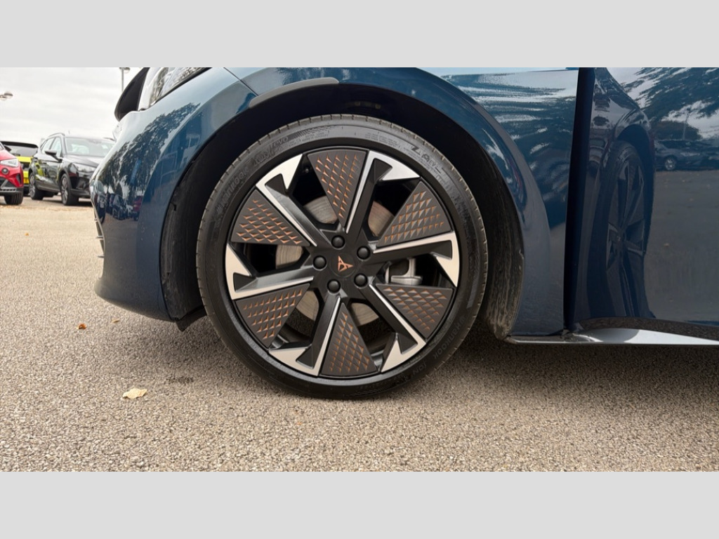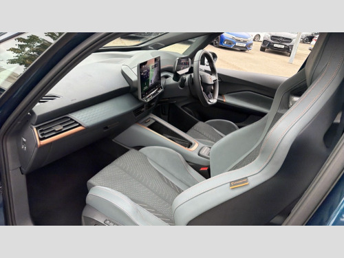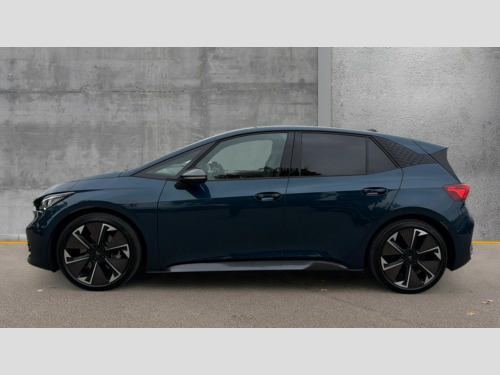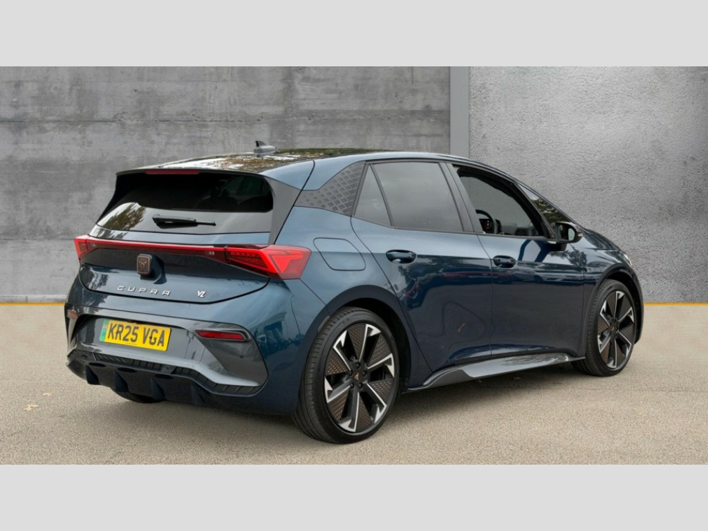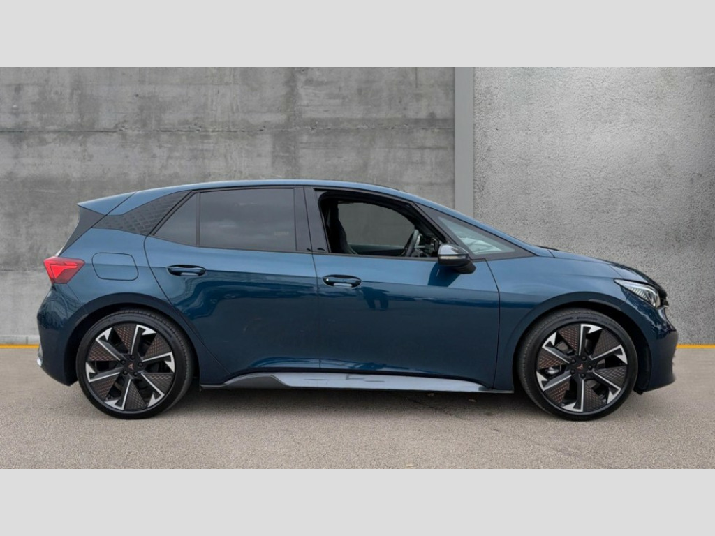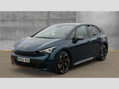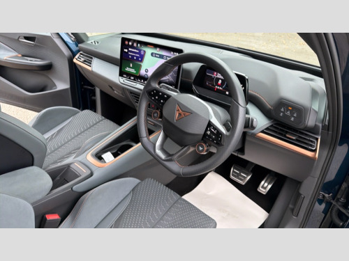 Cupra Born 240kW e-Boost VZ 79kWh 5dr Auto 5.3" digital cockpit with 12.9" central display infotainment system, Augmented reality head up display, Bluetooth, Dynamic steering, e-call service, Emergency steering support with turn assist, Forward collision warning with automatic braking, Lane assist, Right hand drive vehicle, Tailgate, Voice assistant, Wireless full link smartphone integration, 11 kW Onboard charger, 185kW DC charging capacity, Charging cable mode 3, type 2/3 32 A, Gear ratio 7915, Shock absorption in front, Sports rear shock absorption, 2x USB sockets in front, 2x USB sockets in rear, charge only, DAB (Digital Audio Broadcasting) and AM/FM radio, Sennheiser premium audio, Acoustic windshield, Auto dimming rear view mirror, Dark tinted rear windows, Electric adjustable/heated/folding door mirrors, Exterior VZ lettering, Full LED headlights, Grey exterior mirrors, Heat insulated glass, LED 3rd brake light, LED daytime running lights, LED rear lights, Rear side wing doors, Rear wiper, Transport protection film, Variable intermittent wiper, Welcome home function and adverse weather function, Windshield wiper with light/rain sensor, 3 seat bench in 2nd row, Aluminium pedals, CUP Bucket seats with power seat adjustment, lumbar support and memory feature, CUPRA emblem on steering wheel, Dual zone climatronic air conditioning, Electric auxiliary air heater, Heated front seats, Heated leather wrapped multi function steering wheel with satellite buttons, Integrated front head restraints, Interior smart light, ISOFIX points in outer rear seats with top tether anchorage points, Microsuede upholstery, Rear headrests, Single front passenger seat, Sunvisors with illuminated mirror, Tool kit with tirefit, Unsplit rear seat bench, split folding backrest, with centre armrest, Dynamic pack - Born, Tech M pack - Born, 3 point seatbelts on all rear seats, Attention and drowsiness assist, Driver and front passenger airbags with front passenger airbag deactivation, side airbag in front with curtain airbag and front interaction airbag, Extended safety system with proactive passenger protection system, Tyre pressure monitoring system, Visual and acoustic seat belt reminder, Anti theft alarm system with interior monitoring in cab, backup horn and towing protection, Anti theft wheel bolts, Keyless go central locking system, Manual child locks, Preparation for alcohol interlock, Warranty - 5 years/90,000 miles, Tyre repair kit