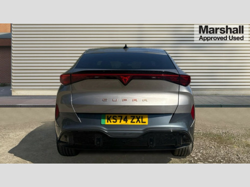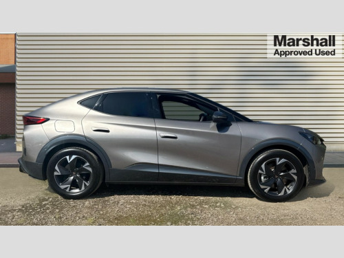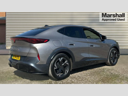 Cupra Tavascan 210kW V1 77kWh 5dr Auto 5.3" Digital Cockpit with 15" central display infotainment system, Bluetooth, Car 2X function, Drive Profile Selection (Range, Comfort, Performance, CUPRA, Individual), Dynamic road sign display, Dynamic steering, Electric tailgate with virtual pedal, Emergency assist, Emergency call service, Emergency steering support with turn assist, Exit warning and assist, Forward collision warning, Intelligent park assist, Intelligent voice control, Lane assist, Level 2 autonomous driving, Level 2 autonomous parking, Navigation system with media and CUPRA Connect with online services, PAS, Predictive adaptive cruise control with speed limiter, Rear traffic alert, Rear view camera, Remote park assist, Side assist, Traffic jam assist, Traffic sign recognition, Trained park assist, Travel assist, Wireless charger, Wireless full link smartphone integration, 11 kW AC onboard charger, 135kW DC charging capacity, 6m Type 2 Mode 3 Charging Cable - 32 Amp/22kW, Gear ratio 7915, Shock absorption in front, Sports rear shock absorption, 7 infotainment speakers, AM/FM and DAB radio, Two front and two rear USB sockets, Auto dimming interior rear view mirror, Dark tinted windows, Electric adjustable/heated/folding door mirrors, Front and rear electric windows, Front and rear illuminated CUPRA logos, Front light assist, Heated rear window, Illuminated door handles, LED daytime running lights, LED third brake light, Rain and light sensors, Rear 3D lights with ceremony, Rear side wing doors, Rear wiper, Signature three eye triangular LED headlights, Tow hook preparation, Transport protection film, Welcome light with logo projector in door mirrors, 3 seat bench in 2nd row, 3 zone Climatronic air conditioning, Aluminium pedals, Ambient lighting "Pure", Centre console with armrest, Cloth upholstery, Driver/passenger manual seat height adjustment, Front + rear carpet mats, Front and rear head restraints, Front bucket seats, Heated leather wrapped multi function steering wheel with satellite buttons, ISOFIX points in outer rear seats with top tether anchorage points, Single front passenger seat, Sun visors with illuminated vanity mirrors, 3 point seatbelts in front with pretensioner/lap belt pretensioner and height adjustment, ABS, Active bonnet, Attention and drowsiness assist, Child locks on rear doors, Driver and front passenger airbags with front passenger airbag deactivation, side airbag in front with curtain airbag and front interaction airbag, ESC (Electronic Stability Control), Extended safety system (proactive passenger protection system, basic, front and rear), Pre crash system, Rollover assist, Tyre pressure monitoring system, Visual and acoustic seat belt reminder, Anti theft alarm system with interior monitoring, backup horn and towing protection, Keyless entry and go, 19" Vulcano silver machined alloy wheels with 235/55 R19 tyres, Anti-theft wheel bolts protection, Self sealing tyres, Tool kit