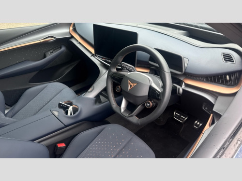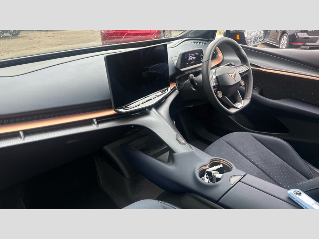 Cupra Tavascan 250kW VZ1 77kWh AWD 5dr Auto 5.3" Digital Cockpit with 15" central display infotainment system, Augmented reality head up display, Bluetooth, Car 2X function, Drive Profile Selection (Range, Comfort, Performance, CUPRA, Individual), Dynamic road sign display, Dynamic steering, Electric tailgate with virtual pedal, Emergency assist, Emergency call service, Emergency steering support with turn assist, Exit warning and assist, Forward collision warning, Intelligent park assist, Intelligent voice control, Lane assist, Level 2 autonomous driving, Level 2 autonomous parking, Navigation system with media and CUPRA Connect with online services, PAS, Predictive adaptive cruise control with speed limiter, Rear traffic alert, Rear view camera, Remote park assist, Side assist, Top view camera, Traffic jam assist, Traffic sign recognition, Trained park assist, Travel assist, Wireless charger, Wireless full link smartphone integration, 11 kW AC onboard charger, 135kW DC charging capacity, 6m Type 2 Mode 3 Charging Cable - 32 Amp/22kW, Dynamic chassis control Sport, Gear ratio 11,347 and 7,915, Shock absorption in front, Sports rear shock absorption, AM/FM and DAB radio, Sennheiser premium audio (12 speakers), Two front and two rear USB sockets, Auto dimming interior rear view mirror, Dark tinted windows, Electric adjustable/heated/folding door mirrors, Front and rear electric windows, Front and rear illuminated CUPRA logos, Front light assist, Heated rear window, Illuminated door handles, LED daytime running lights, LED third brake light, Matrix LED headlights with Matrix Beam and signature, Panoramic sunroof, Rain and light sensors, Rear 3D lights with ceremony, Rear side wing doors, Rear wiper, Tow hook preparation, Transport protection film, Welcome light with logo projector in door mirrors, 12 way electrical adjustment and memory function for driver and front passenger, 3 seat bench in 2nd row, 3 zone Climatronic air conditioning, Aluminium pedals, Ambient lighting "Immersive", Centre console with armrest, Double floor in boot, Front + rear carpet mats, Front and rear head restraints, Front bucket seats, Heated front seats, Heated leather wrapped multi function steering wheel with satellite buttons, Illuminated door mouldings, ISOFIX points in outer rear seats with top tether anchorage points, Microfiber upholstery, Rear armrest, Single front passenger seat, Sun visors with illuminated vanity mirrors, 3 point seatbelts in front with pretensioner/lap belt pretensioner and height adjustment, ABS, Active bonnet, Attention and drowsiness assist, Child locks on rear doors, Driver and front passenger airbags with front passenger airbag deactivation, side airbag in front with curtain airbag and front interaction airbag, ESC (Electronic Stability Control), Extended safety system (proactive passenger protection system, basic, front and rear), Pre crash system, Rollover assist, Tyre pressure monitoring system, Visual and acoustic seat belt reminder, Anti theft alarm system with interior monitoring, backup horn and towing protection, Keyless entry and go, 21" Katla machined alloy wheels with copper inserts and 255/40 R21 performance tyres, Anti-theft wheel bolts protection, Self sealing tyres, Tool kit