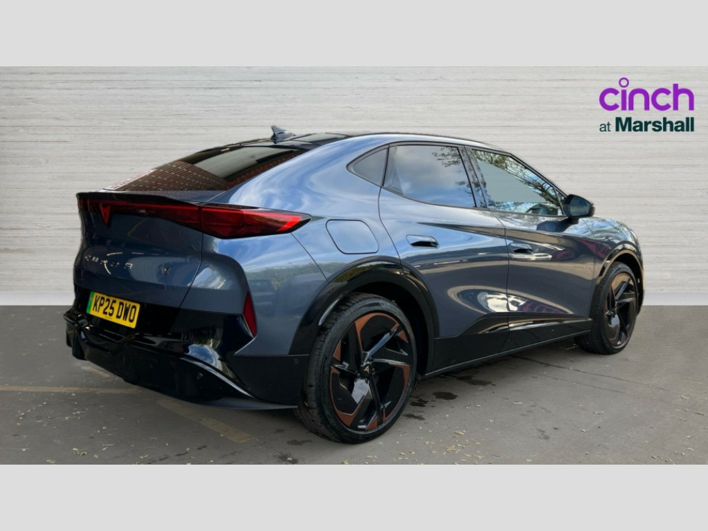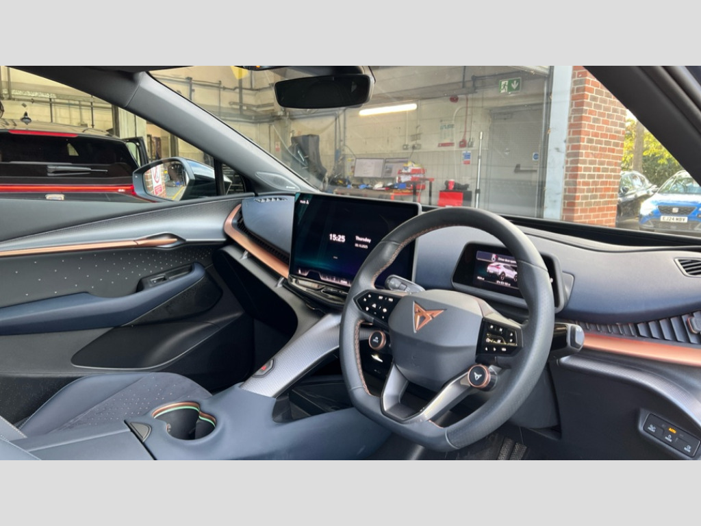 Cupra Tavascan 250kW VZ1 77kWh AWD 5dr Auto 5.3" Digital Cockpit with 15" central display infotainment system, Augmented reality head up display, Bluetooth, Car 2X function, Drive Profile Selection (Range, Comfort, Performance, CUPRA, Individual), Dynamic road sign display, Dynamic steering, Electric tailgate with virtual pedal, Emergency assist, Emergency call service, Emergency steering support with turn assist, Exit warning and assist, Forward collision warning, Intelligent park assist, Intelligent voice control, Lane assist, Level 2 autonomous driving, Level 2 autonomous parking, Navigation system with media and CUPRA Connect with online services, PAS, Predictive adaptive cruise control with speed limiter, Rear traffic alert, Rear view camera, Remote park assist, Side assist, Top view camera, Traffic jam assist, Traffic sign recognition, Trained park assist, Travel assist, Wireless charger, Wireless full link smartphone integration, 11 kW AC onboard charger, 135kW DC charging capacity, 6m Type 2 Mode 3 Charging Cable - 32 Amp/22kW, Dynamic chassis control Sport, Gear ratio 11,347 and 7,915, Shock absorption in front, Sports rear shock absorption, AM/FM and DAB radio, Sennheiser premium audio (12 speakers), Two front and two rear USB sockets, Auto dimming interior rear view mirror, Dark tinted windows, Electric adjustable/heated/folding door mirrors, Front and rear electric windows, Front and rear illuminated CUPRA logos, Front light assist, Heated rear window, Illuminated door handles, LED daytime running lights, LED third brake light, Matrix LED headlights with Matrix Beam and signature, Panoramic sunroof, Rain and light sensors, Rear 3D lights with ceremony, Rear side wing doors, Rear wiper, Tow hook preparation, Transport protection film, Welcome light with logo projector in door mirrors, 12 way electrical adjustment and memory function for driver and front passenger, 3 seat bench in 2nd row, 3 zone Climatronic air conditioning, Aluminium pedals, Ambient lighting "Immersive", Centre console with armrest, Double floor in boot, Front + rear carpet mats, Front and rear head restraints, Front bucket seats, Heated front seats, Heated leather wrapped multi function steering wheel with satellite buttons, Illuminated door mouldings, ISOFIX points in outer rear seats with top tether anchorage points, Microfiber upholstery, Rear armrest, Single front passenger seat, Sun visors with illuminated vanity mirrors, 3 point seatbelts in front with pretensioner/lap belt pretensioner and height adjustment, ABS, Active bonnet, Attention and drowsiness assist, Child locks on rear doors, Driver and front passenger airbags with front passenger airbag deactivation, side airbag in front with curtain airbag and front interaction airbag, ESC (Electronic Stability Control), Extended safety system (proactive passenger protection system, basic, front and rear), Pre crash system, Rollover assist, Tyre pressure monitoring system, Visual and acoustic seat belt reminder, Anti theft alarm system with interior monitoring, backup horn and towing protection, Keyless entry and go, 21" Katla machined alloy wheels with copper inserts and 255/40 R21 performance tyres, Anti-theft wheel bolts protection, Self sealing tyres, Tool kit
