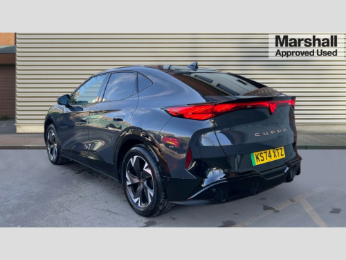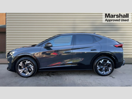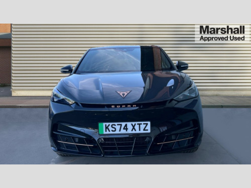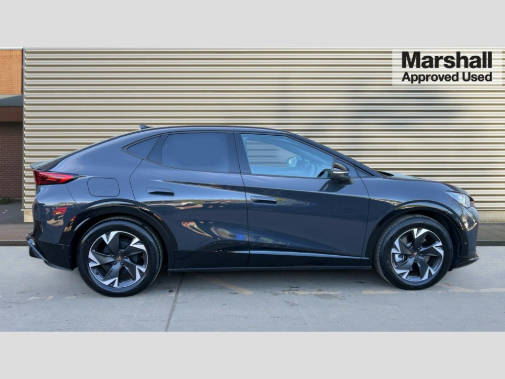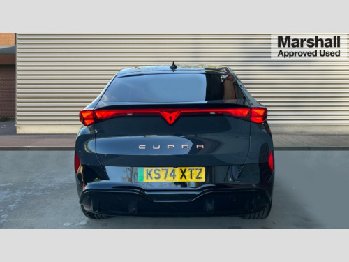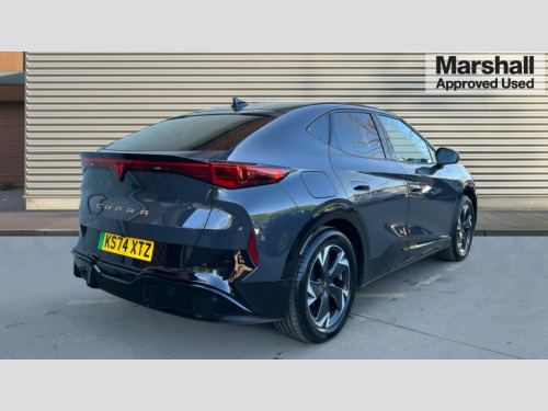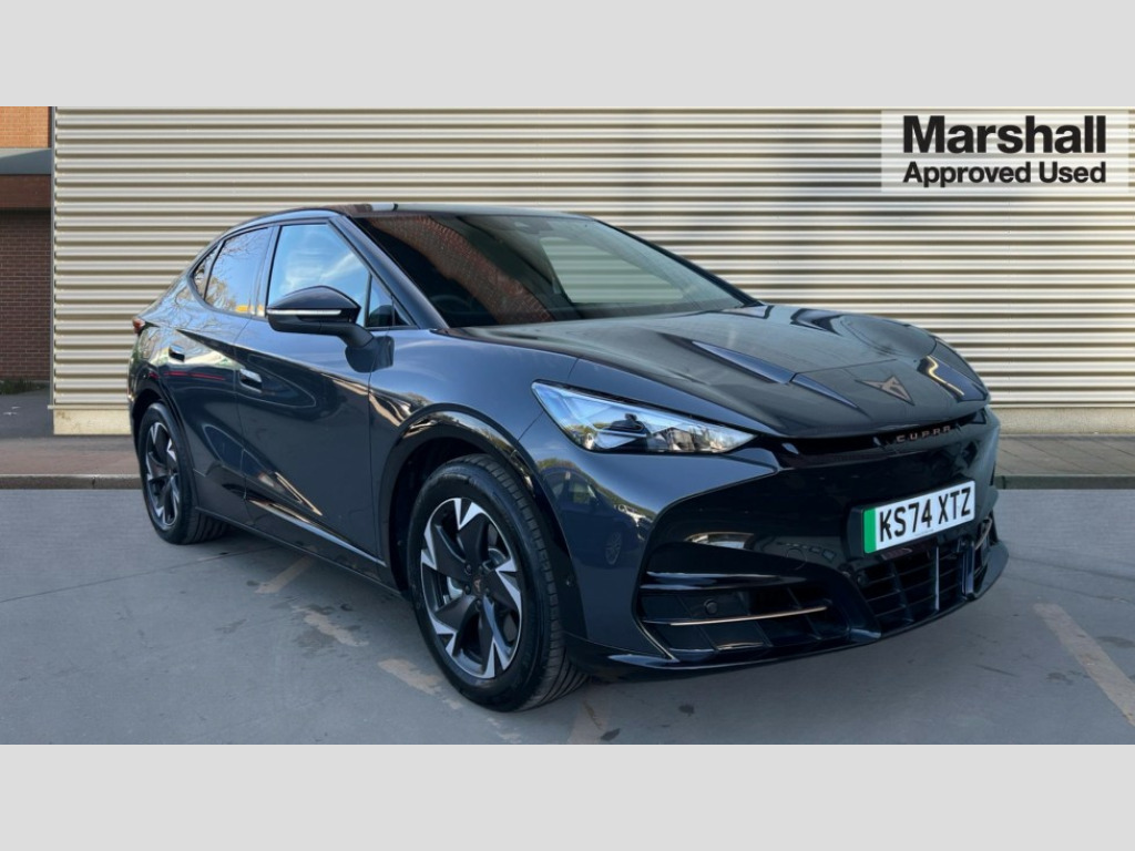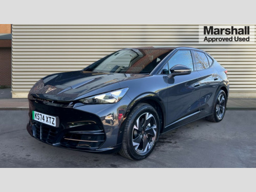 Cupra Tavascan 210kW V1 77kWh 5dr Auto 5.3" Digital Cockpit with 15" central display infotainment system, Bluetooth, Car 2X function, Drive Profile Selection (Range, Comfort, Performance, CUPRA, Individual), Dynamic road sign display, Dynamic steering, Electric tailgate with virtual pedal, Emergency assist, Emergency call service, Emergency steering support with turn assist, Exit warning and assist, Forward collision warning, Intelligent park assist, Intelligent voice control, Lane assist, Level 2 autonomous driving, Level 2 autonomous parking, Navigation system with media and CUPRA Connect with online services, PAS, Predictive adaptive cruise control with speed limiter, Rear traffic alert, Rear view camera, Remote park assist, Side assist, Traffic jam assist, Traffic sign recognition, Trained park assist, Travel assist, Wireless charger, Wireless full link smartphone integration, 11 kW AC onboard charger, 135kW DC charging capacity, 6m Type 2 Mode 3 Charging Cable - 32 Amp/22kW, Gear ratio 7915, Shock absorption in front, Sports rear shock absorption, 7 infotainment speakers, AM/FM and DAB radio, Two front and two rear USB sockets, Auto dimming interior rear view mirror, Dark tinted windows, Electric adjustable/heated/folding door mirrors, Front and rear electric windows, Front and rear illuminated CUPRA logos, Front light assist, Heated rear window, Illuminated door handles, LED daytime running lights, LED third brake light, Rain and light sensors, Rear 3D lights with ceremony, Rear side wing doors, Rear wiper, Signature three eye triangular LED headlights, Tow hook preparation, Transport protection film, Welcome light with logo projector in door mirrors, 3 seat bench in 2nd row, 3 zone Climatronic air conditioning, Aluminium pedals, Ambient lighting "Pure", Centre console with armrest, Cloth upholstery, Driver/passenger manual seat height adjustment, Front + rear carpet mats, Front and rear head restraints, Front bucket seats, Heated leather wrapped multi function steering wheel with satellite buttons, ISOFIX points in outer rear seats with top tether anchorage points, Single front passenger seat, Sun visors with illuminated vanity mirrors, 3 point seatbelts in front with pretensioner/lap belt pretensioner and height adjustment, ABS, Active bonnet, Attention and drowsiness assist, Child locks on rear doors, Driver and front passenger airbags with front passenger airbag deactivation, side airbag in front with curtain airbag and front interaction airbag, ESC (Electronic Stability Control), Extended safety system (proactive passenger protection system, basic, front and rear), Pre crash system, Rollover assist, Tyre pressure monitoring system, Visual and acoustic seat belt reminder, Anti theft alarm system with interior monitoring, backup horn and towing protection, Keyless entry and go, 19" Vulcano silver machined alloy wheels with 235/55 R19 tyres, Anti-theft wheel bolts protection, Self sealing tyres, Tool kit