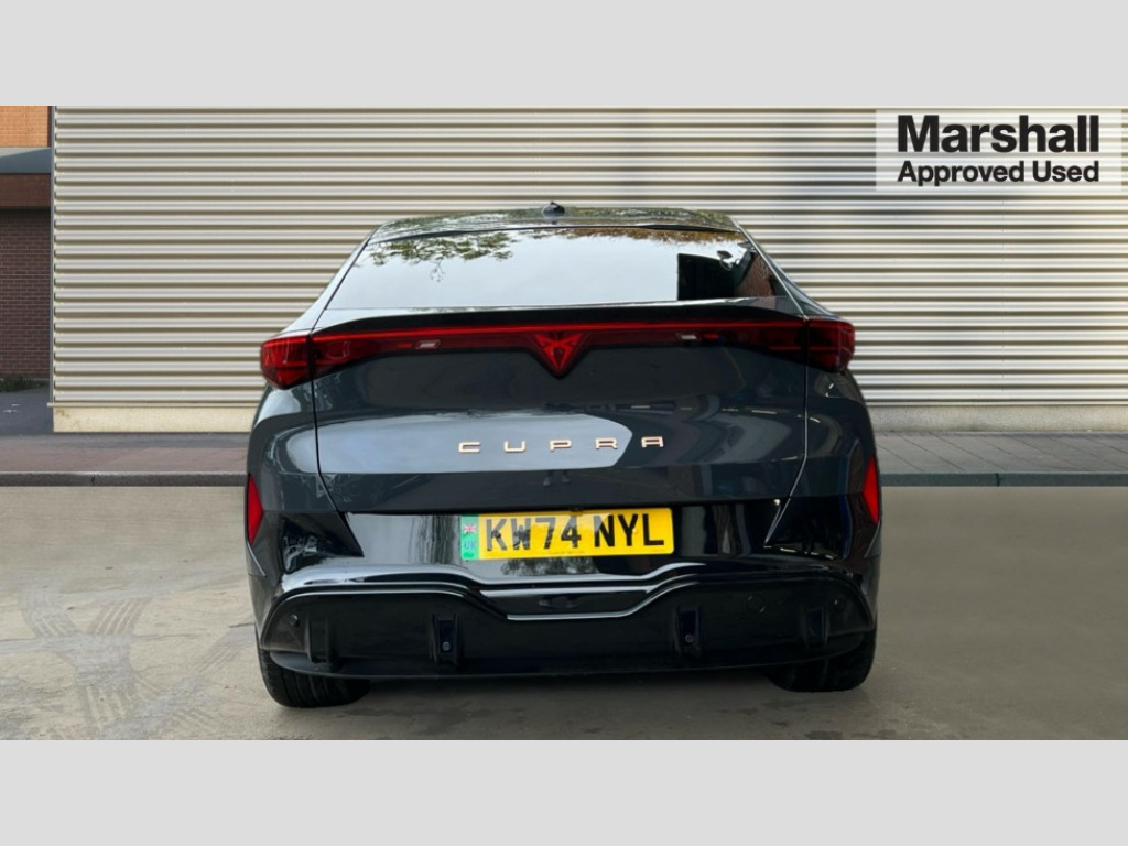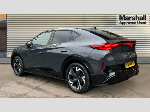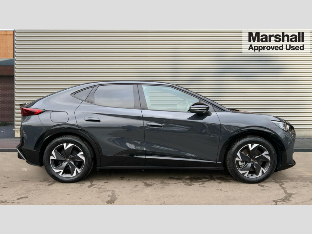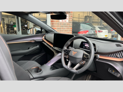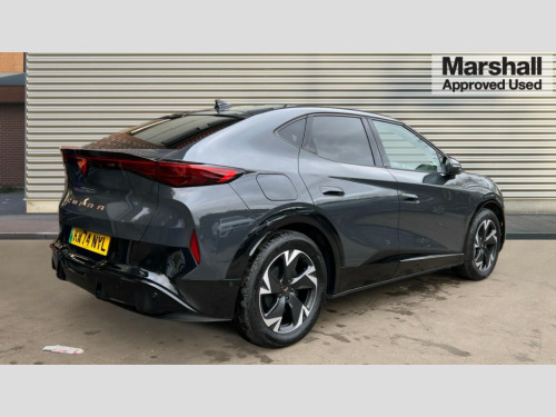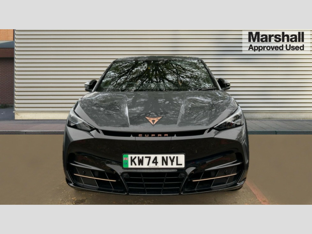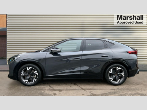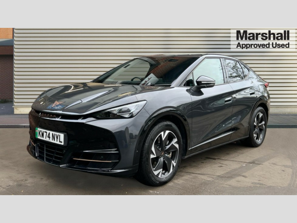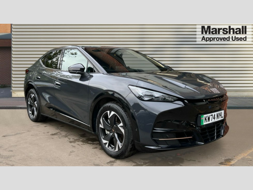 Cupra Tavascan 210kW V1 77kWh 5dr Auto 5.3" Digital Cockpit with 15" central display infotainment system, Bluetooth, Car 2X function, Drive Profile Selection (Range, Comfort, Performance, CUPRA, Individual), Dynamic road sign display, Dynamic steering, Electric tailgate with virtual pedal, Emergency assist, Emergency call service, Emergency steering support with turn assist, Exit warning and assist, Forward collision warning, Intelligent park assist, Intelligent voice control, Lane assist, Level 2 autonomous driving, Level 2 autonomous parking, Navigation system with media and CUPRA Connect with online services, PAS, Predictive adaptive cruise control with speed limiter, Rear traffic alert, Rear view camera, Remote park assist, Side assist, Traffic jam assist, Traffic sign recognition, Trained park assist, Travel assist, Wireless charger, Wireless full link smartphone integration, 11 kW AC onboard charger, 135kW DC charging capacity, 6m Type 2 Mode 3 Charging Cable - 32 Amp/22kW, Gear ratio 7915, Shock absorption in front, Sports rear shock absorption, 7 infotainment speakers, AM/FM and DAB radio, Two front and two rear USB sockets, Auto dimming interior rear view mirror, Dark tinted windows, Electric adjustable/heated/folding door mirrors, Front and rear electric windows, Front and rear illuminated CUPRA logos, Front light assist, Heated rear window, Illuminated door handles, LED daytime running lights, LED third brake light, Rain and light sensors, Rear 3D lights with ceremony, Rear side wing doors, Rear wiper, Signature three eye triangular LED headlights, Tow hook preparation, Transport protection film, Welcome light with logo projector in door mirrors, 3 seat bench in 2nd row, 3 zone Climatronic air conditioning, Aluminium pedals, Ambient lighting "Pure", Centre console with armrest, Cloth upholstery, Driver/passenger manual seat height adjustment, Front + rear carpet mats, Front and rear head restraints, Front bucket seats, Heated leather wrapped multi function steering wheel with satellite buttons, ISOFIX points in outer rear seats with top tether anchorage points, Single front passenger seat, Sun visors with illuminated vanity mirrors, 3 point seatbelts in front with pretensioner/lap belt pretensioner and height adjustment, ABS, Active bonnet, Attention and drowsiness assist, Child locks on rear doors, Driver and front passenger airbags with front passenger airbag deactivation, side airbag in front with curtain airbag and front interaction airbag, ESC (Electronic Stability Control), Extended safety system (proactive passenger protection system, basic, front and rear), Pre crash system, Rollover assist, Tyre pressure monitoring system, Visual and acoustic seat belt reminder, Anti theft alarm system with interior monitoring, backup horn and towing protection, Keyless entry and go, 19" Vulcano silver machined alloy wheels with 235/55 R19 tyres, Anti-theft wheel bolts protection, Self sealing tyres, Tool kit