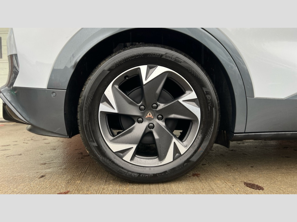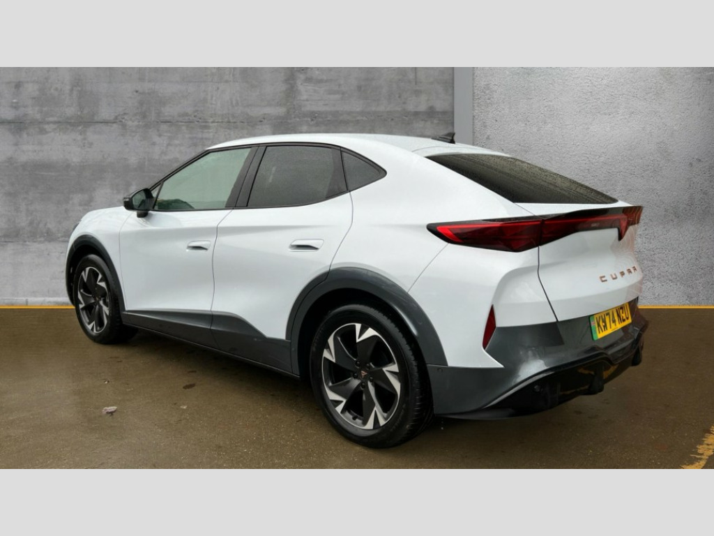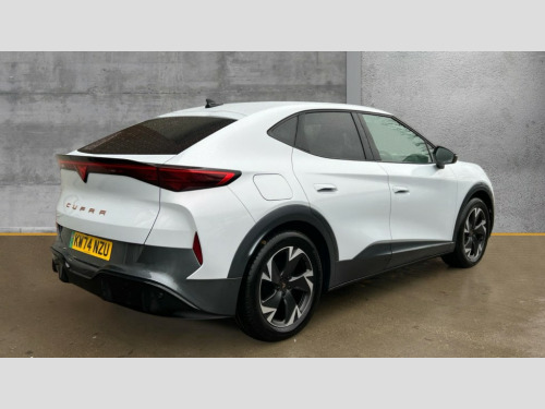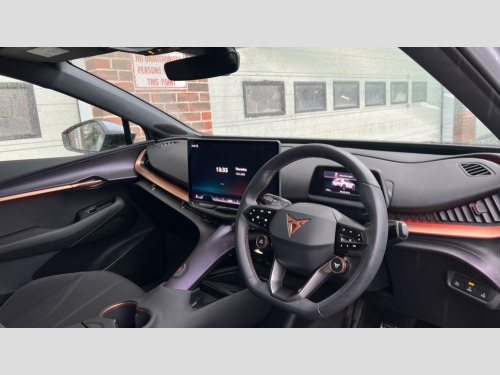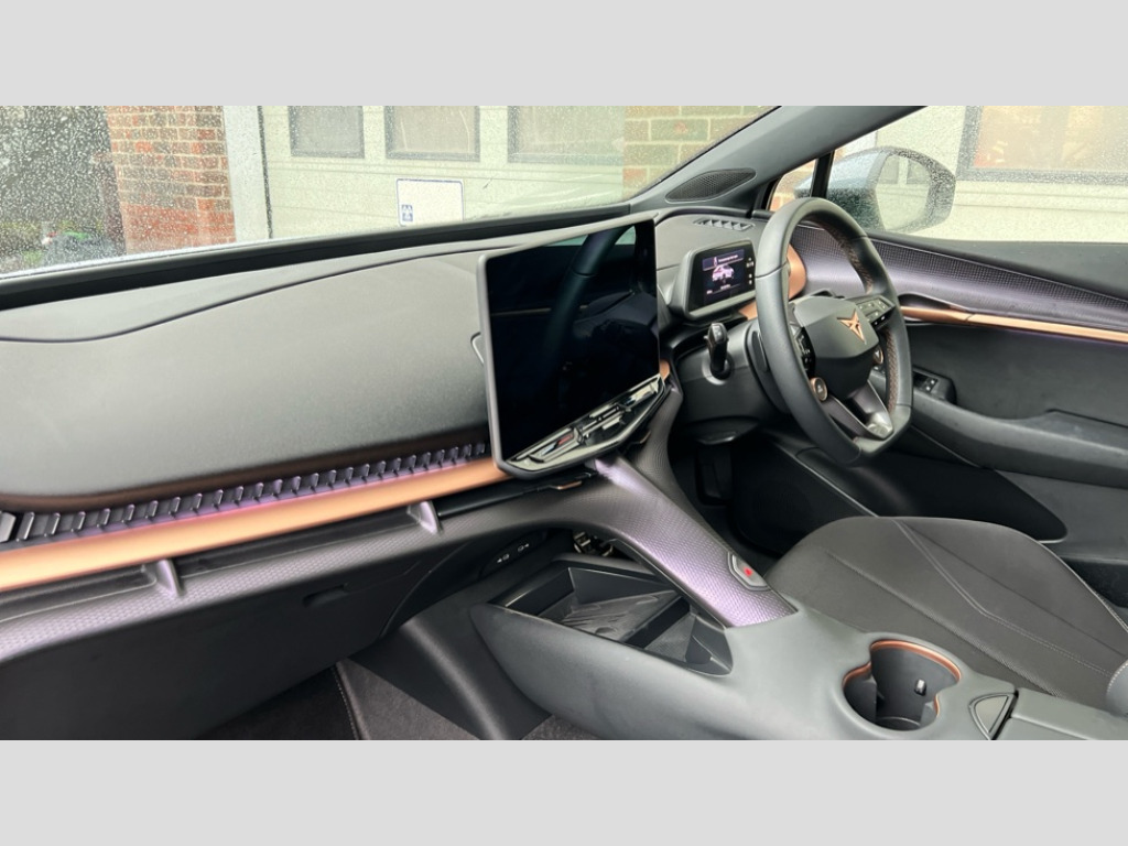 Cupra Tavascan 210kW V1 77kWh 5dr Auto 5.3" Digital Cockpit with 15" central display infotainment system, Bluetooth, Car 2X function, Drive Profile Selection (Range, Comfort, Performance, CUPRA, Individual), Dynamic road sign display, Dynamic steering, Electric tailgate with virtual pedal, Emergency assist, Emergency call service, Emergency steering support with turn assist, Exit warning and assist, Forward collision warning, Intelligent park assist, Intelligent voice control, Lane assist, Level 2 autonomous driving, Level 2 autonomous parking, Navigation system with media and CUPRA Connect with online services, PAS, Predictive adaptive cruise control with speed limiter, Rear traffic alert, Rear view camera, Remote park assist, Side assist, Traffic jam assist, Traffic sign recognition, Trained park assist, Travel assist, Wireless charger, Wireless full link smartphone integration, 11 kW AC onboard charger, 135kW DC charging capacity, 6m Type 2 Mode 3 Charging Cable - 32 Amp/22kW, Gear ratio 7915, Shock absorption in front, Sports rear shock absorption, 7 infotainment speakers, AM/FM and DAB radio, Two front and two rear USB sockets, Auto dimming interior rear view mirror, Dark tinted windows, Electric adjustable/heated/folding door mirrors, Front and rear electric windows, Front and rear illuminated CUPRA logos, Front light assist, Heated rear window, Illuminated door handles, LED daytime running lights, LED third brake light, Rain and light sensors, Rear 3D lights with ceremony, Rear side wing doors, Rear wiper, Signature three eye triangular LED headlights, Tow hook preparation, Transport protection film, Welcome light with logo projector in door mirrors, 3 seat bench in 2nd row, 3 zone Climatronic air conditioning, Aluminium pedals, Ambient lighting "Pure", Centre console with armrest, Cloth upholstery, Driver/passenger manual seat height adjustment, Front + rear carpet mats, Front and rear head restraints, Front bucket seats, Heated leather wrapped multi function steering wheel with satellite buttons, ISOFIX points in outer rear seats with top tether anchorage points, Single front passenger seat, Sun visors with illuminated vanity mirrors, 3 point seatbelts in front with pretensioner/lap belt pretensioner and height adjustment, ABS, Active bonnet, Attention and drowsiness assist, Child locks on rear doors, Driver and front passenger airbags with front passenger airbag deactivation, side airbag in front with curtain airbag and front interaction airbag, ESC (Electronic Stability Control), Extended safety system (proactive passenger protection system, basic, front and rear), Pre crash system, Rollover assist, Tyre pressure monitoring system, Visual and acoustic seat belt reminder, Anti theft alarm system with interior monitoring, backup horn and towing protection, Keyless entry and go, 19" Vulcano silver machined alloy wheels with 235/55 R19 tyres, Anti-theft wheel bolts protection, Self sealing tyres, Tool kit