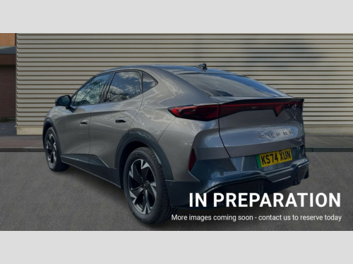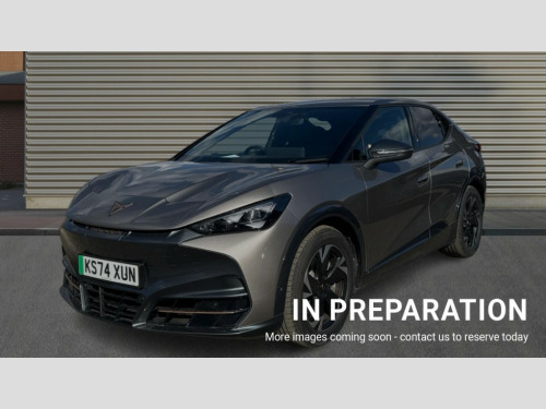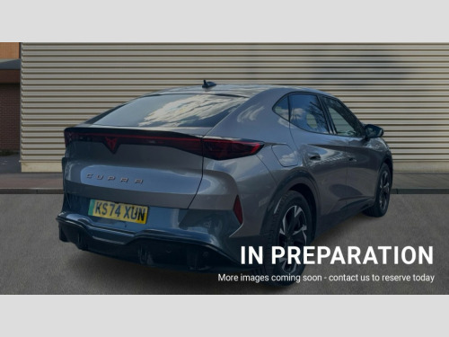 Cupra Tavascan 210kW V1 77kWh 5dr Auto 5.3" Digital Cockpit with 15" central display infotainment system, Bluetooth, Car 2X function, Drive Profile Selection (Range, Comfort, Performance, CUPRA, Individual), Dynamic road sign display, Dynamic steering, Electric tailgate with virtual pedal, Emergency assist, Emergency call service, Emergency steering support with turn assist, Exit warning and assist, Forward collision warning, Intelligent park assist, Intelligent voice control, Lane assist, Level 2 autonomous driving, Level 2 autonomous parking, Navigation system with media and CUPRA Connect with online services, PAS, Predictive adaptive cruise control with speed limiter, Rear traffic alert, Rear view camera, Remote park assist, Side assist, Traffic jam assist, Traffic sign recognition, Trained park assist, Travel assist, Wireless charger, Wireless full link smartphone integration, 11 kW AC onboard charger, 135kW DC charging capacity, 6m Type 2 Mode 3 Charging Cable - 32 Amp/22kW, Gear ratio 7915, Shock absorption in front, Sports rear shock absorption, 7 infotainment speakers, AM/FM and DAB radio, Two front and two rear USB sockets, Auto dimming interior rear view mirror, Dark tinted windows, Electric adjustable/heated/folding door mirrors, Front and rear electric windows, Front and rear illuminated CUPRA logos, Front light assist, Heated rear window, Illuminated door handles, LED daytime running lights, LED third brake light, Rain and light sensors, Rear 3D lights with ceremony, Rear side wing doors, Rear wiper, Signature three eye triangular LED headlights, Tow hook preparation, Transport protection film, Welcome light with logo projector in door mirrors, 3 seat bench in 2nd row, 3 zone Climatronic air conditioning, Aluminium pedals, Ambient lighting "Pure", Centre console with armrest, Cloth upholstery, Driver/passenger manual seat height adjustment, Front + rear carpet mats, Front and rear head restraints, Front bucket seats, Heated leather wrapped multi function steering wheel with satellite buttons, ISOFIX points in outer rear seats with top tether anchorage points, Single front passenger seat, Sun visors with illuminated vanity mirrors, 3 point seatbelts in front with pretensioner/lap belt pretensioner and height adjustment, ABS, Active bonnet, Attention and drowsiness assist, Child locks on rear doors, Driver and front passenger airbags with front passenger airbag deactivation, side airbag in front with curtain airbag and front interaction airbag, ESC (Electronic Stability Control), Extended safety system (proactive passenger protection system, basic, front and rear), Pre crash system, Rollover assist, Tyre pressure monitoring system, Visual and acoustic seat belt reminder, Anti theft alarm system with interior monitoring, backup horn and towing protection, Keyless entry and go, 19" Vulcano silver machined alloy wheels with 235/55 R19 tyres, Anti-theft wheel bolts protection, Self sealing tyres, Tool kit