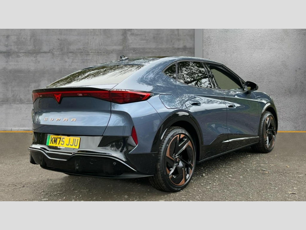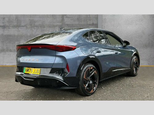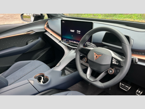 Cupra Tavascan 210kW V2 77kWh 5dr Auto 5.3" Digital Cockpit with 15" central display infotainment system, Augmented reality head up display, Bluetooth, Car 2X function, Drive Profile Selection (Range, Comfort, Performance, CUPRA, Individual), Dynamic road sign display, Dynamic steering, Electric tailgate with virtual pedal + switch in driver door, Emergency assist, Emergency call service, Emergency steering support with turn assist, Exit warning and assist, Forward collision warning, Intelligent park assist, Intelligent voice control powered by ChatGPT, Lane assist, Level 2 autonomous driving, Level 2 autonomous parking, Navigation system with media and CUPRA Connect with online services, PAS, Predictive adaptive cruise control with speed limiter, Rear traffic alert, Rear view camera, Remote park assist, Side assist, Top view camera, Traffic jam assist, Traffic sign recognition, Trained park assist, Travel assist, Wireless charger, Wireless full link smartphone integration, 11 kW AC onboard charger, 135kW DC charging capacity, 6m Type 2 Mode 3 Charging Cable - 32 Amp/22kW, Dynamic chassis control Sport, Gear ratio 7915, Shock absorption in front, Sports rear shock absorption, AM/FM and DAB radio, CUPRA interior sound, Sennheiser premium audio (12 speakers), Two front and two rear USB sockets, Auto dimming interior rear view mirror, Dark tinted windows, Electric adjustable/heated/folding door mirrors, Front and rear electric windows, Front and rear illuminated CUPRA logos, Front light assist, Heated rear window, Illuminated door handles, LED daytime running lights, LED third brake light, Matrix LED headlights with Matrix Beam and signature, Panoramic sunroof, Rain and light sensors, Rear 3D lights with ceremony, Rear side wing doors, Rear wiper, Tow hook preparation, Transport protection film, Welcome light with logo projector in door mirrors, 12 way electrical adjustment and memory function for driver and front passenger, 3 seat bench in 2nd row, 3 zone Climatronic air conditioning, Aluminium pedals, Ambient lighting "Immersive", Centre console with armrest, Double floor in boot, Front + rear carpet mats, Front and rear head restraints, Front bucket seats, Heated front seats, Heated leather wrapped multi function steering wheel with satellite buttons, Illuminated door mouldings, ISOFIX points in outer rear seats with top tether anchorage points, Microfiber upholstery, Rear armrest, Single front passenger seat, Sun visors with illuminated vanity mirrors, 3 point seatbelts in front with pretensioner/lap belt pretensioner and height adjustment, ABS, Active bonnet, Attention and drowsiness assist, Child locks on rear doors, Driver and front passenger airbags with front passenger airbag deactivation, side airbag in front with curtain airbag and front interaction airbag, ESC (Electronic Stability Control), Extended safety system (proactive passenger protection system, basic, front and rear), Pre crash system, Rollover assist, Tyre pressure monitoring system, Visual and acoustic seat belt reminder, Anti theft alarm system with interior monitoring, backup horn and towing protection, Keyless entry and go, 21" Katla machined alloy wheels with copper inserts and 255/40 R21 performance tyres, Anti-theft wheel bolts protection, Self sealing tyres, Tool kit